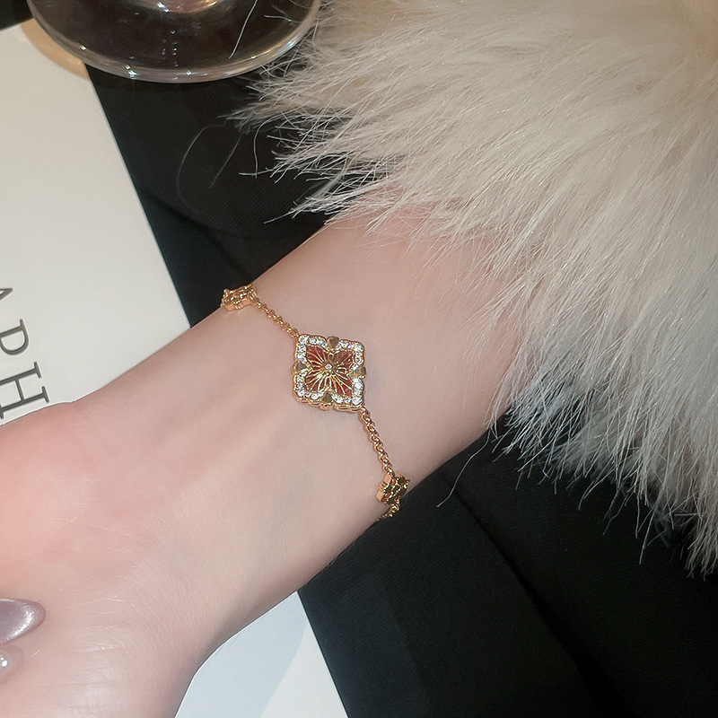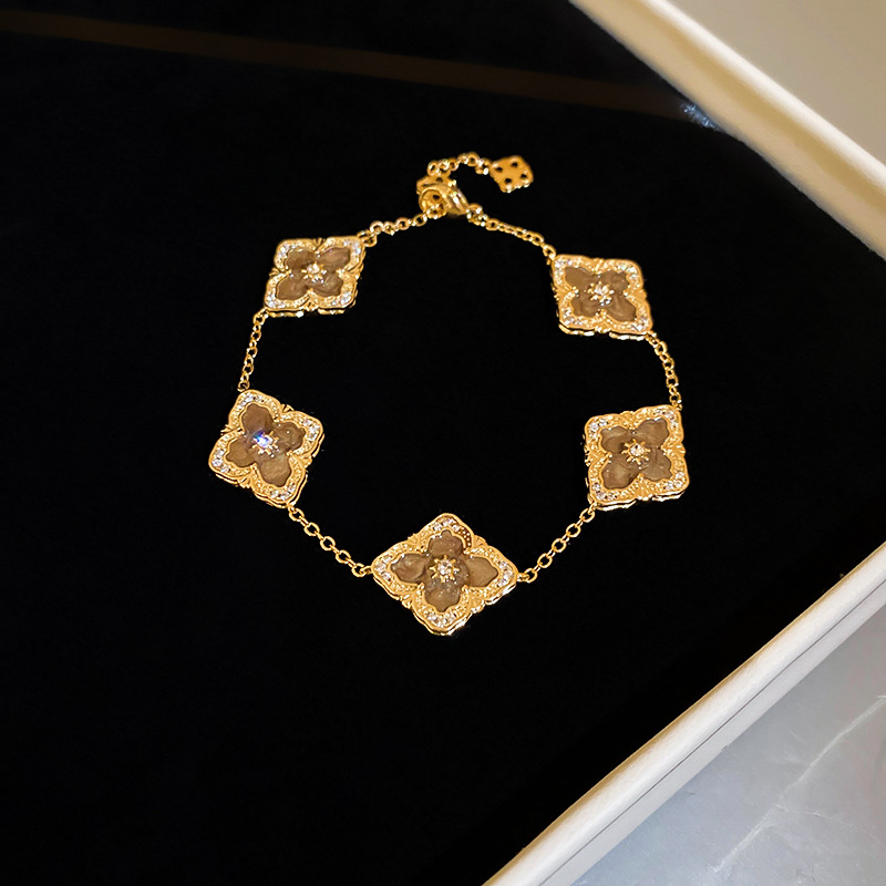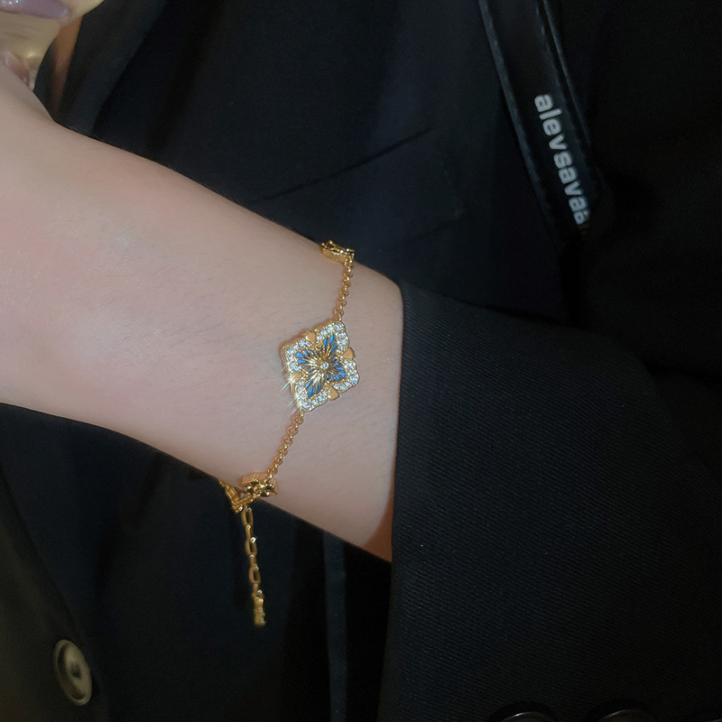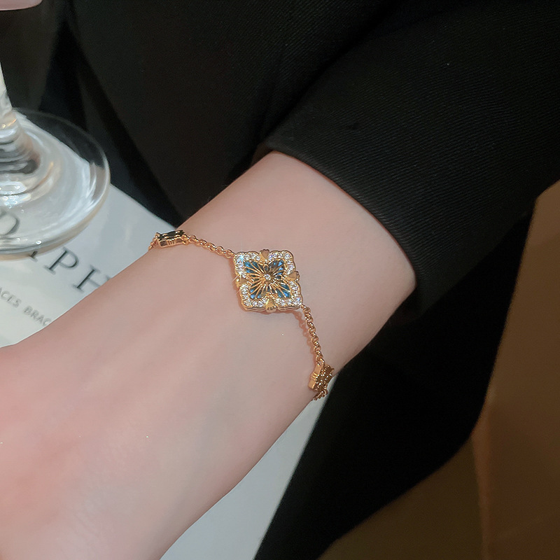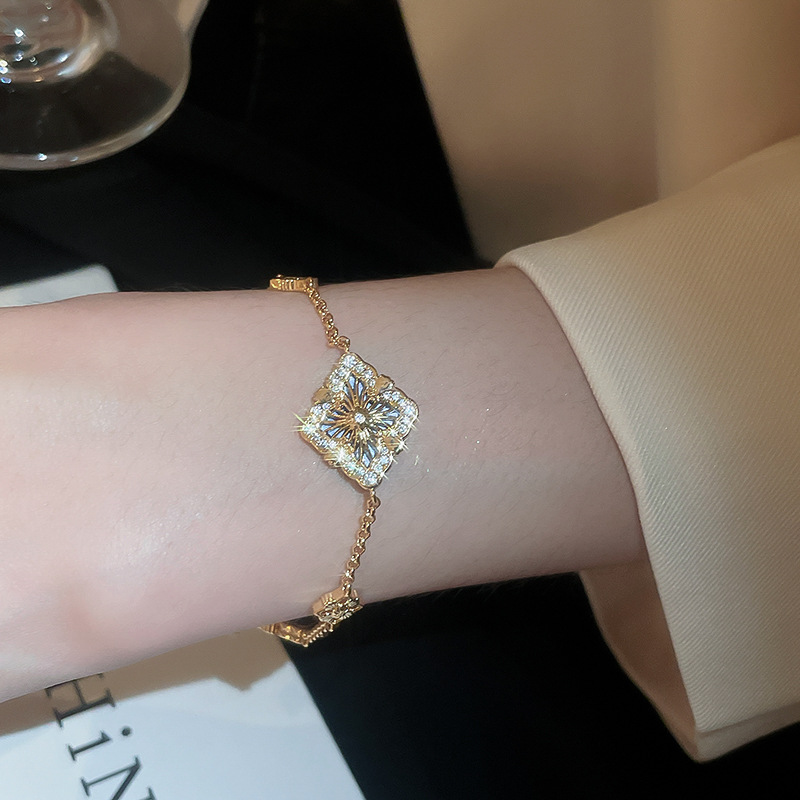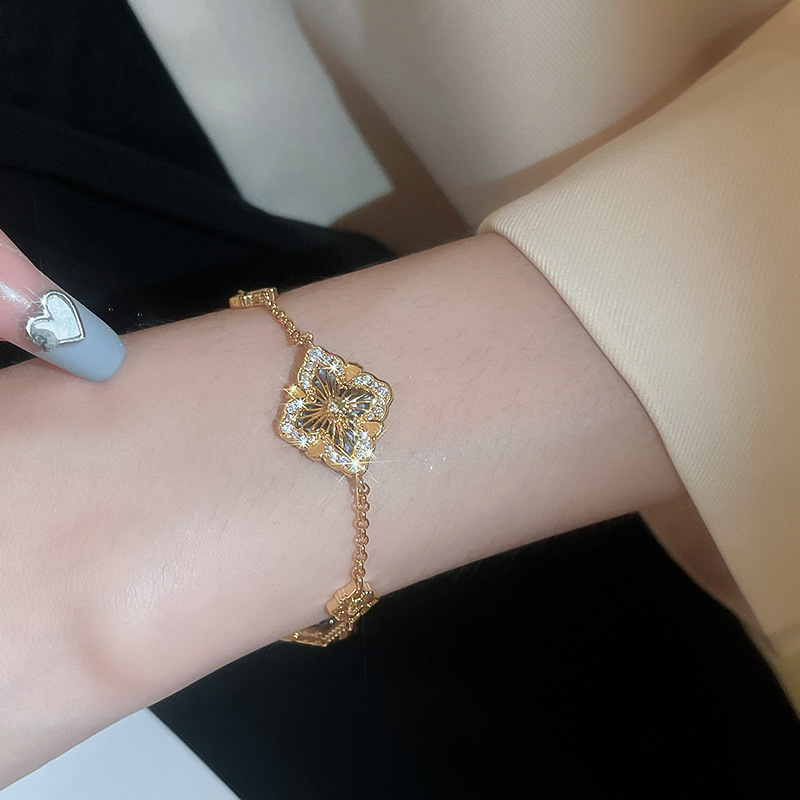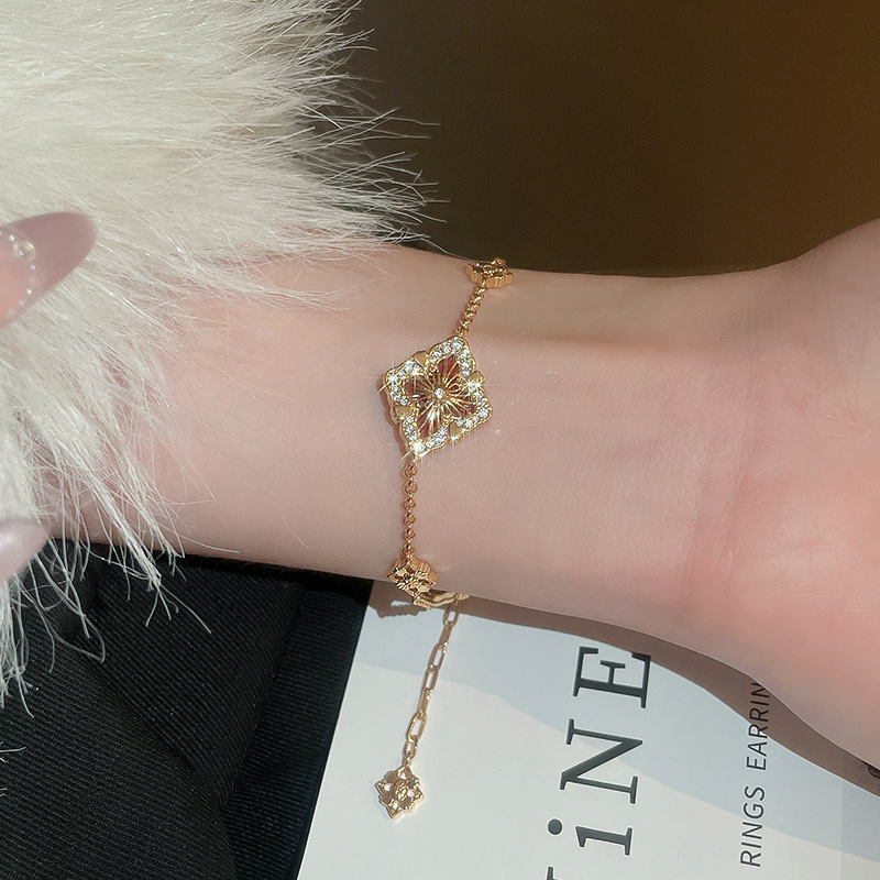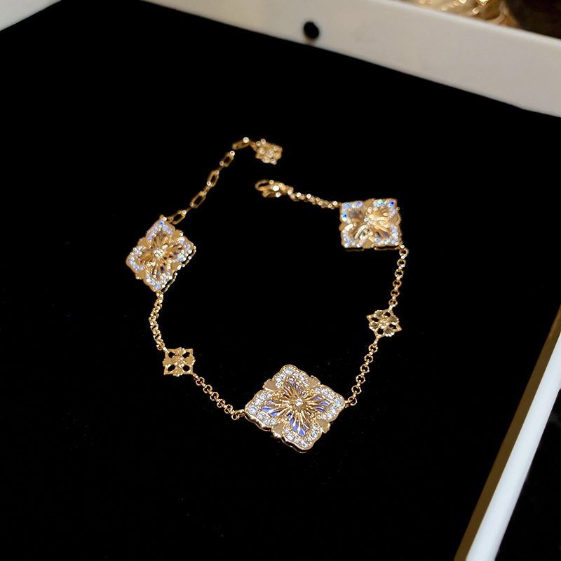 真金电镀锆石双面花朵手链轻奢时尚手环手饰宫廷风高级感气质饰品