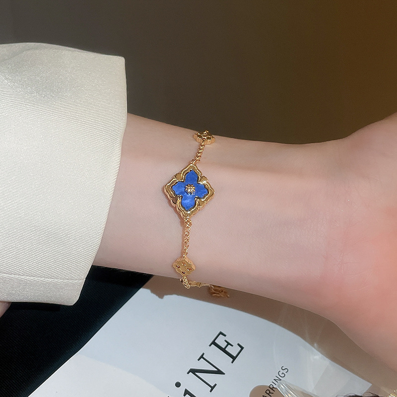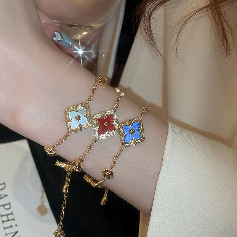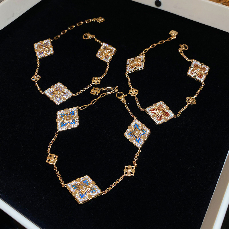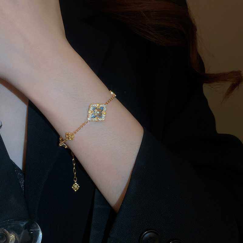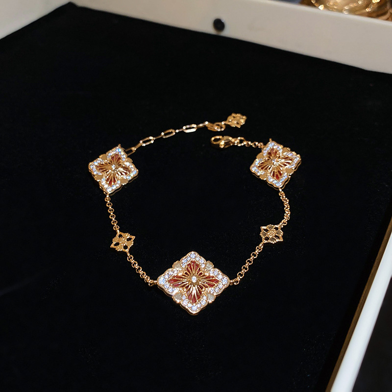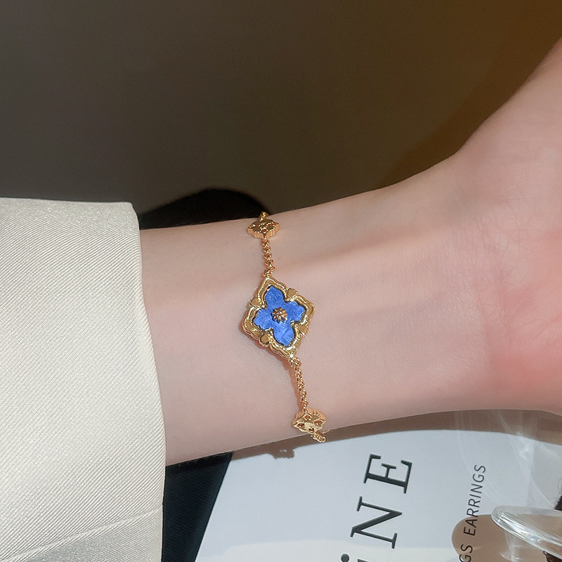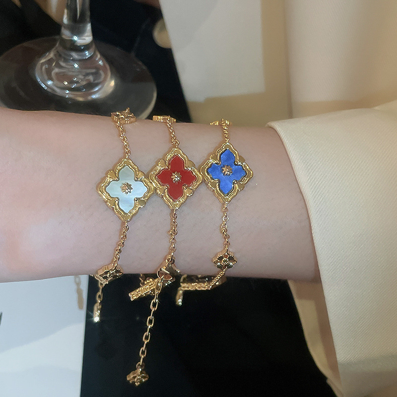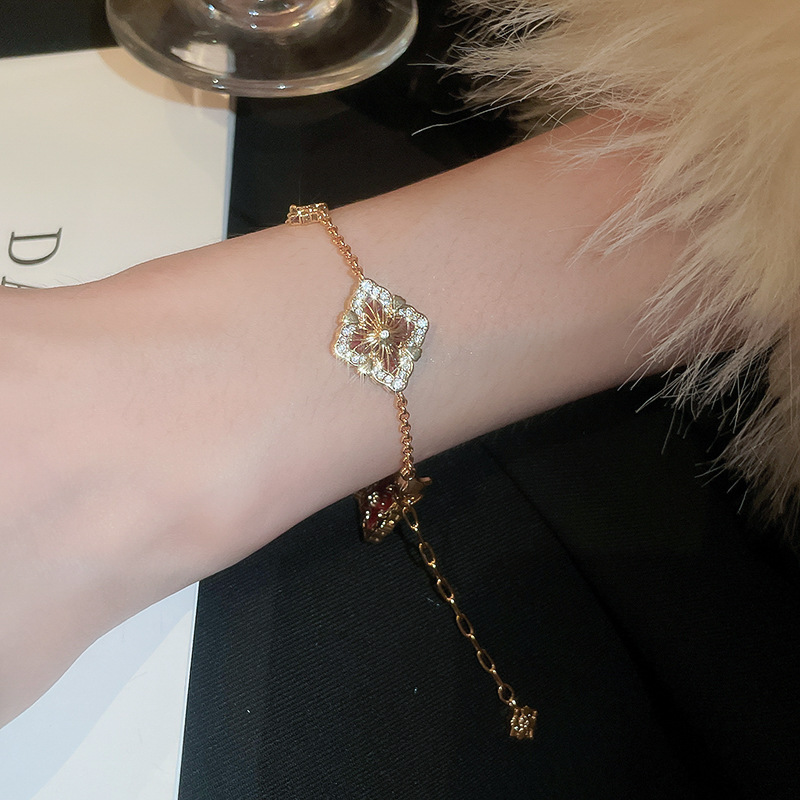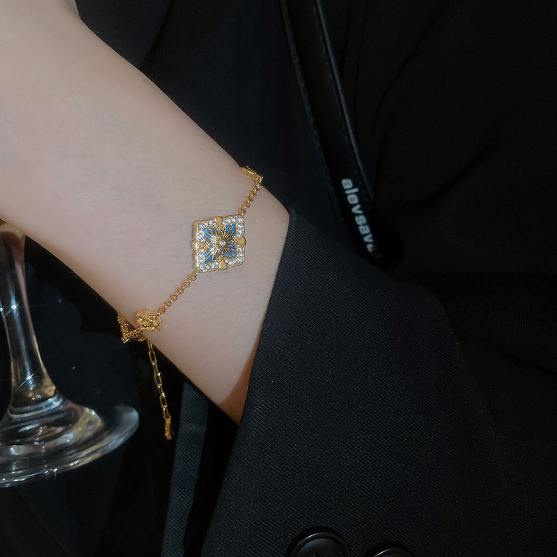 真金电镀锆石双面花朵手链轻奢时尚手环手饰宫廷风高级感气质饰品