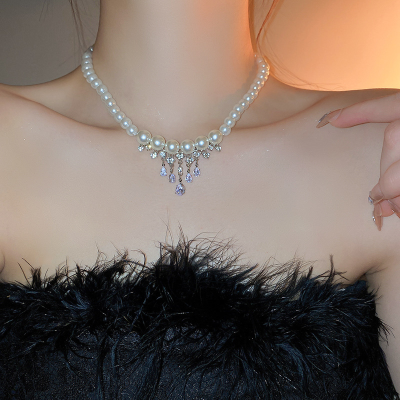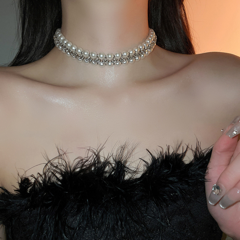法式轻奢镶钻蝴蝶珍珠款项链女小众百搭锁骨链时尚气质高级感饰品