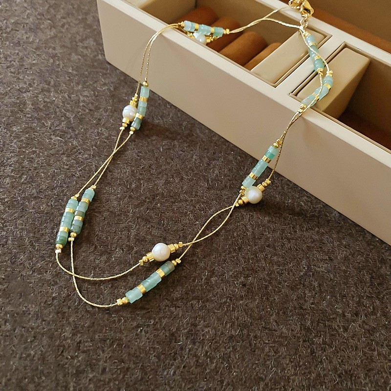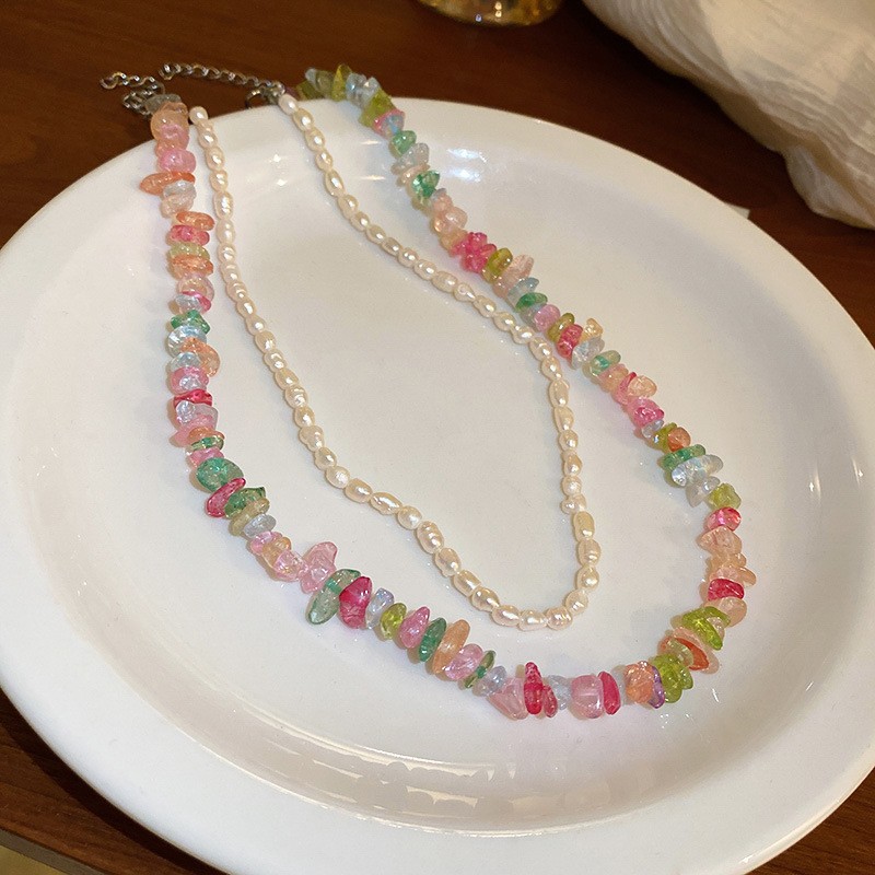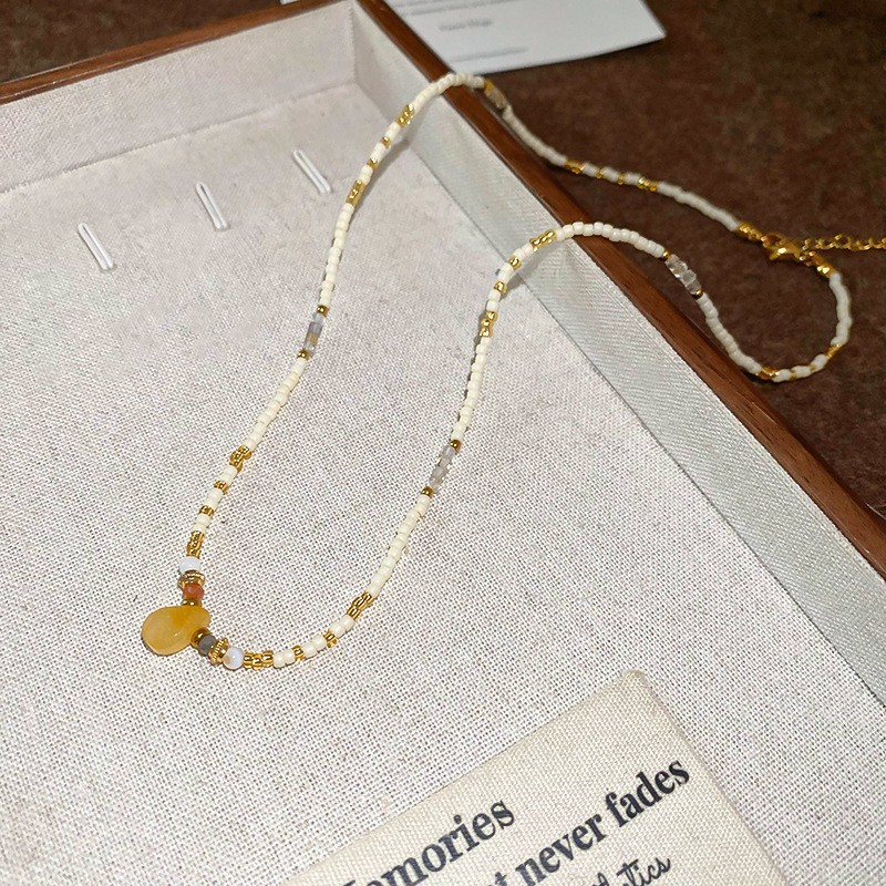 多巴胺米珠珍珠圆柱串珠项链时尚气质小众锁骨链个性百搭颈链女