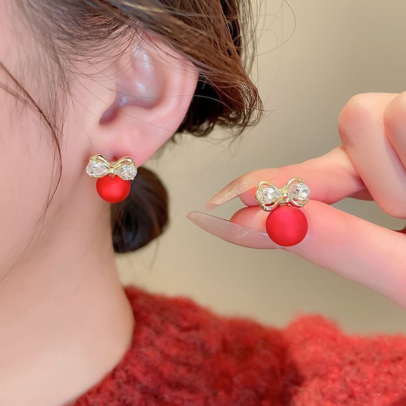 银针法式轻奢镶钻蝴蝶耳钉小众简约百搭通勤耳环气质高级感耳饰女