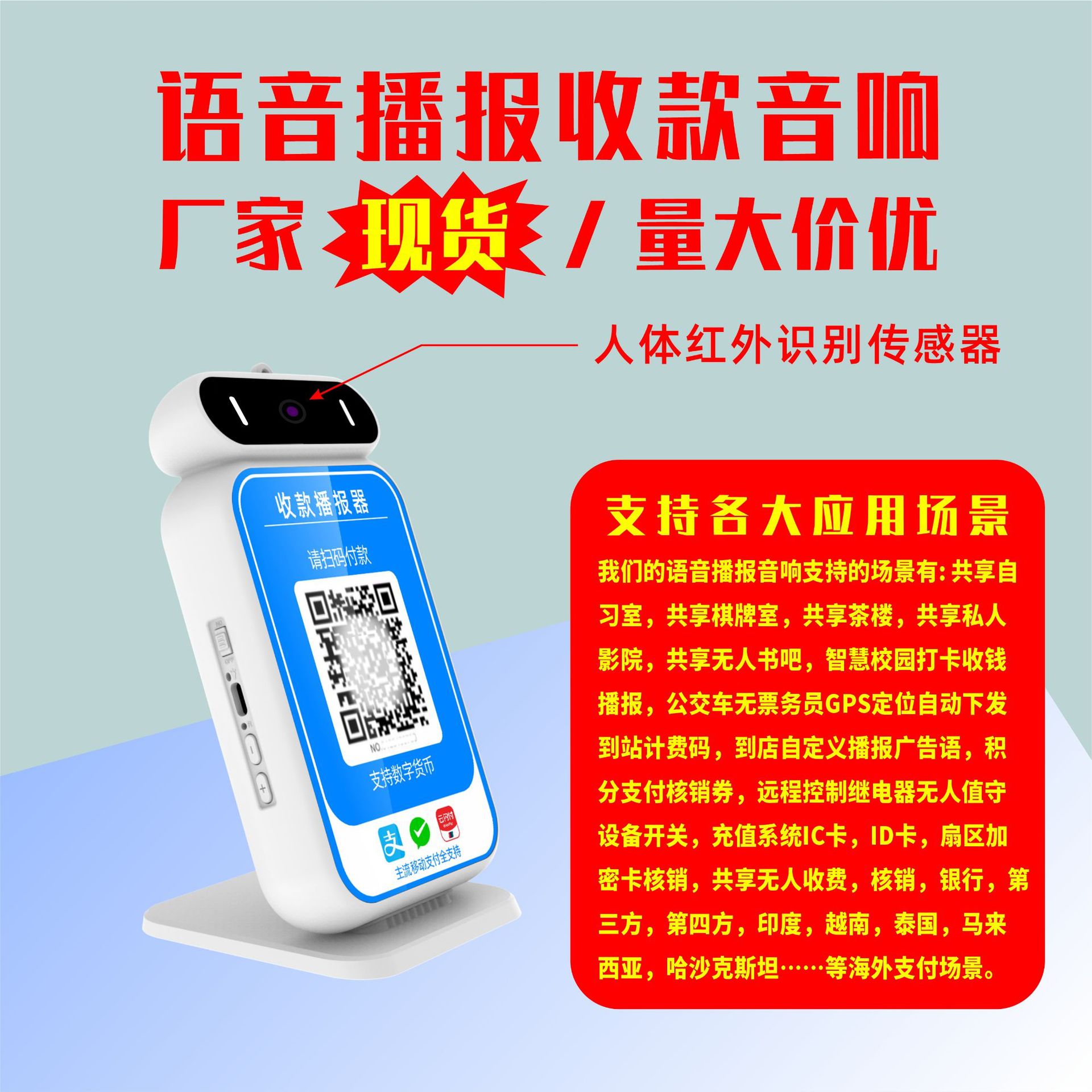 收钱语音播报器自定义MQTT服务器云喇叭二维码4g支付盒扫码云音响