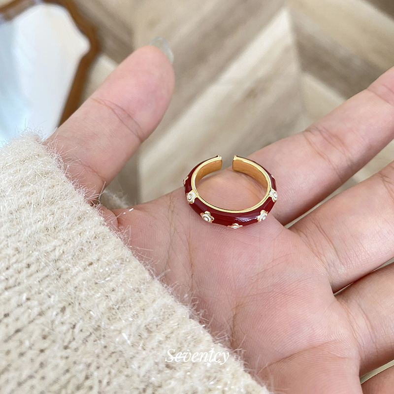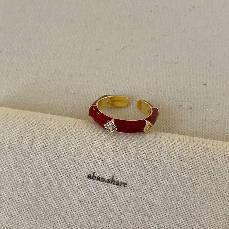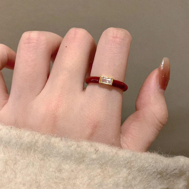 滴油长方形锆石开口戒指法式优雅精致食指戒轻奢高级感新款指环女
