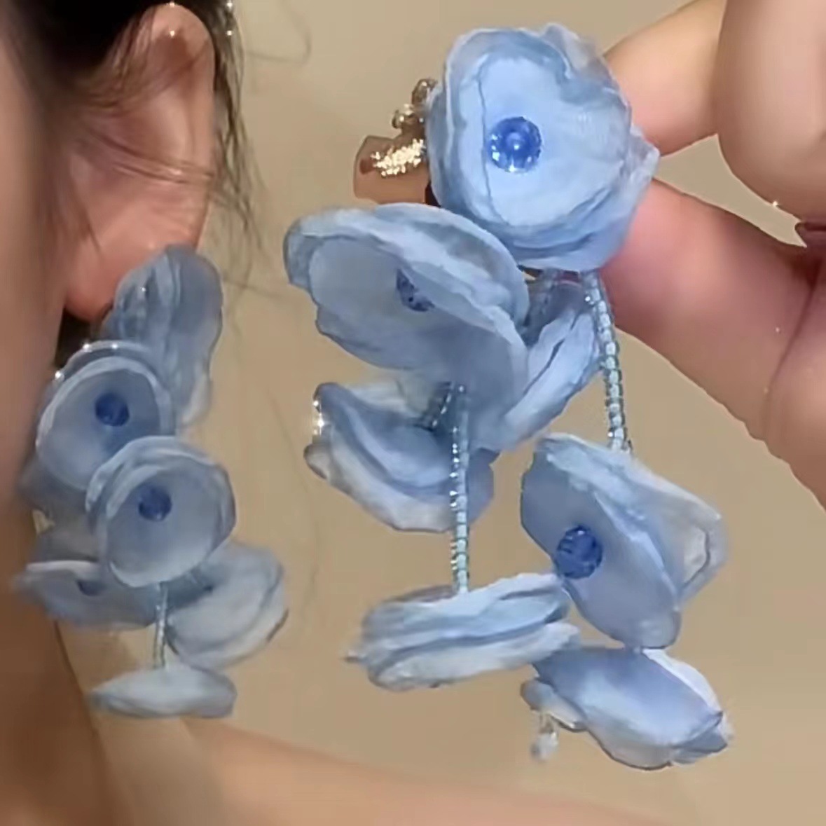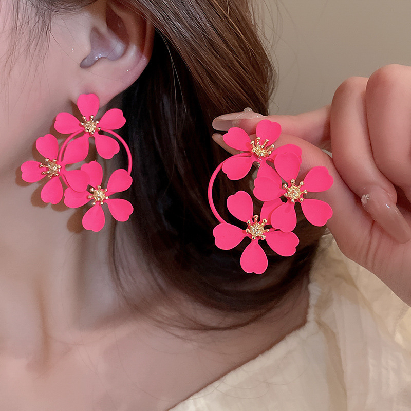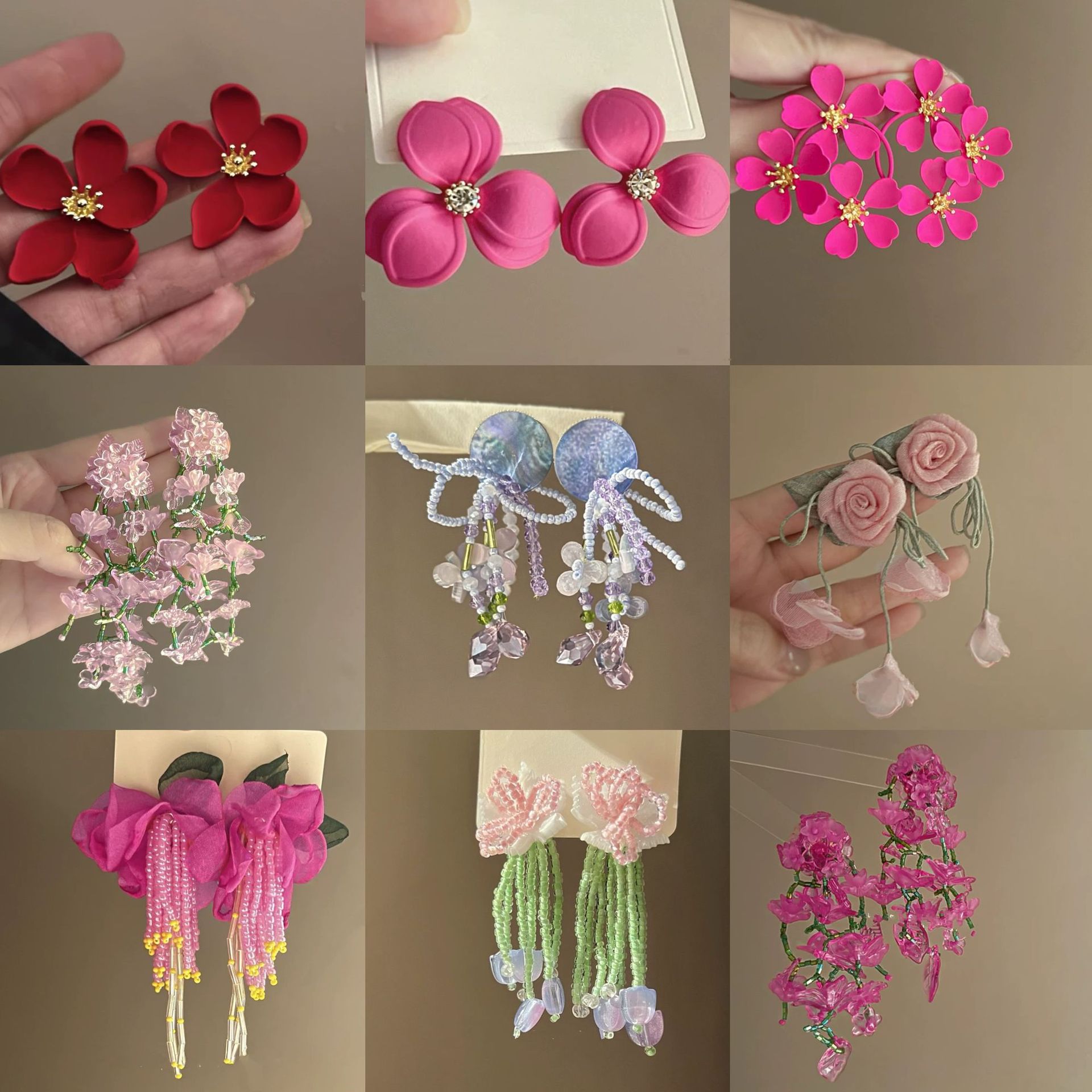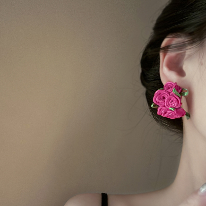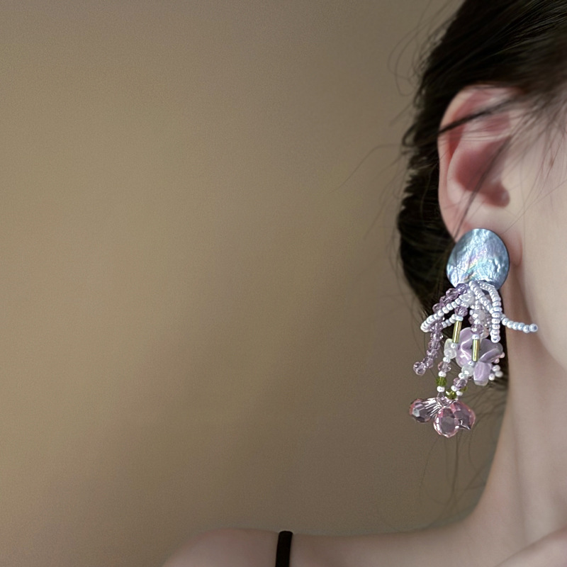 银针超仙氛围感网纱彩花珍珠耳环森系百搭耳坠少女心甜美清新耳饰