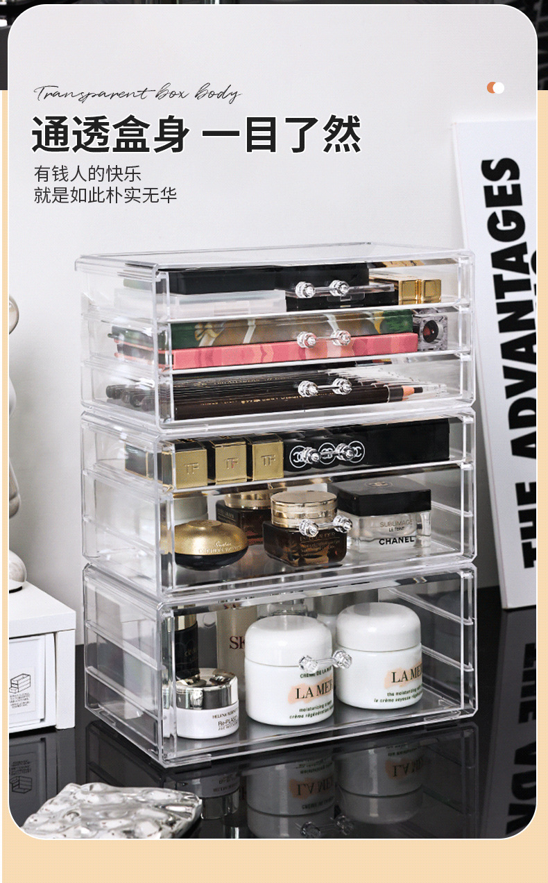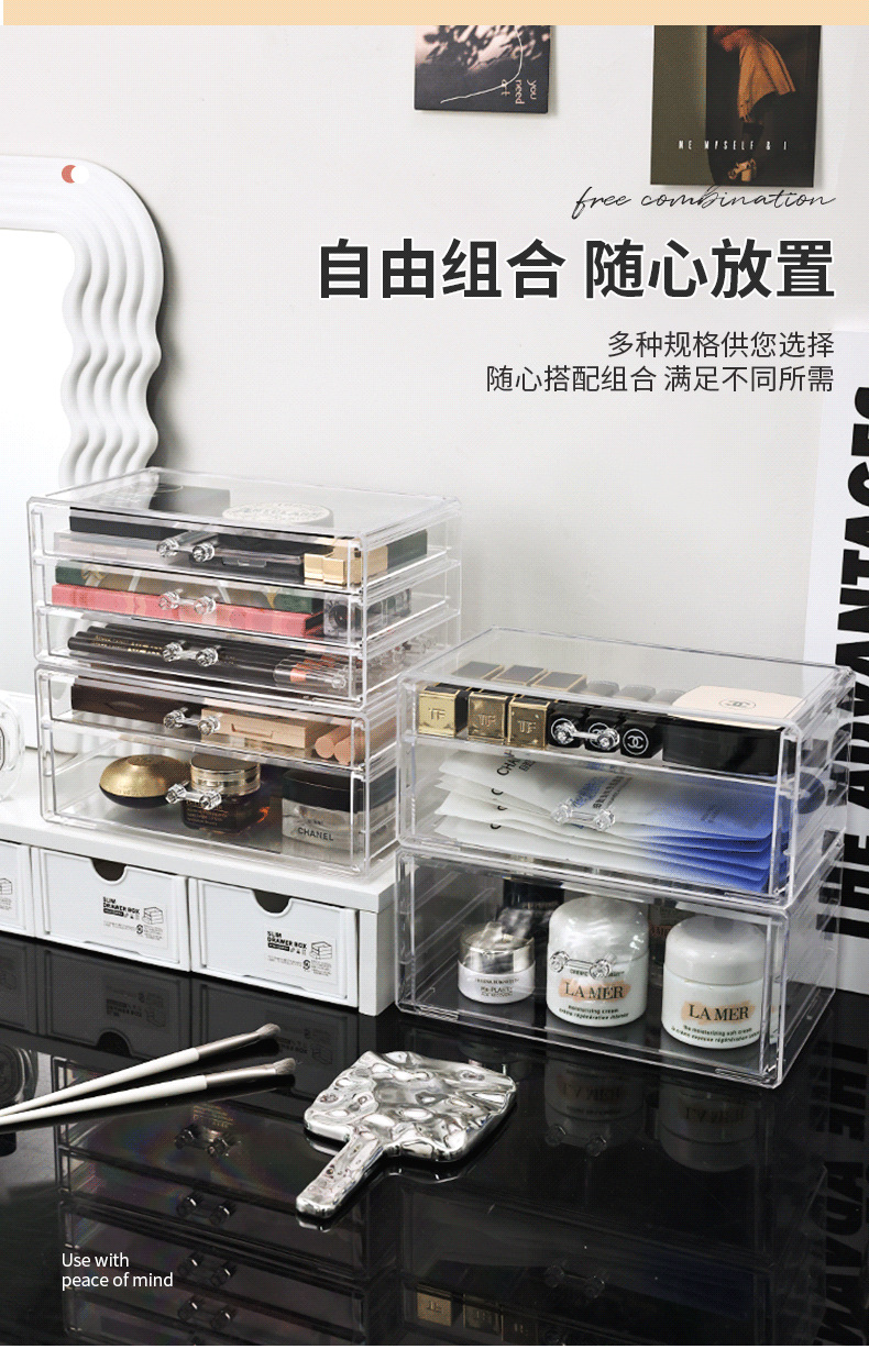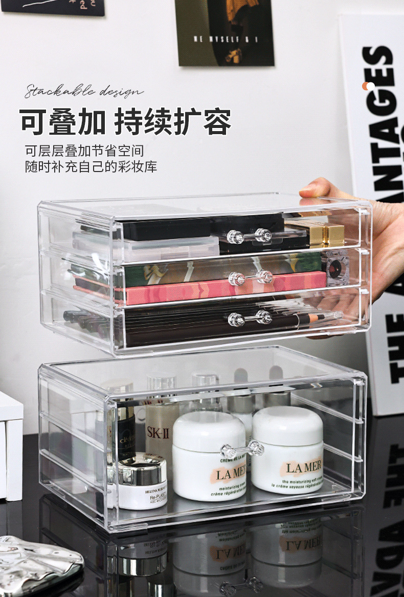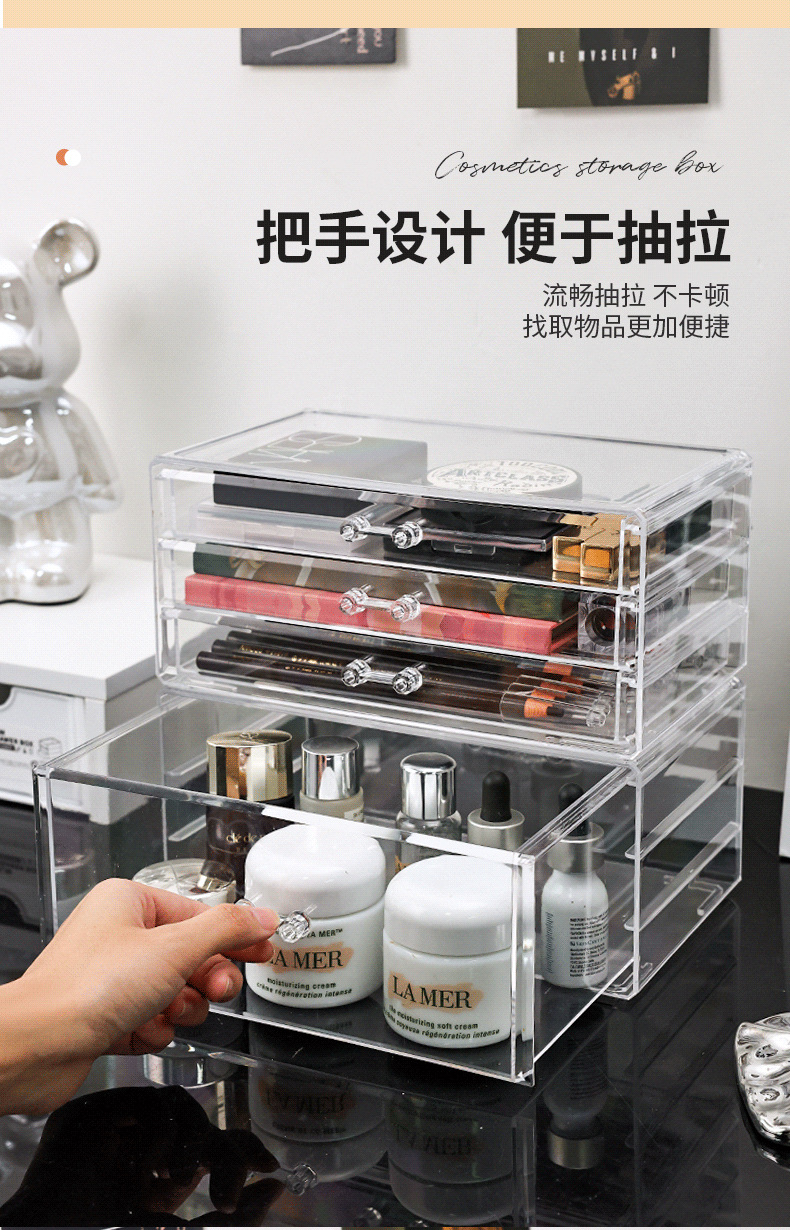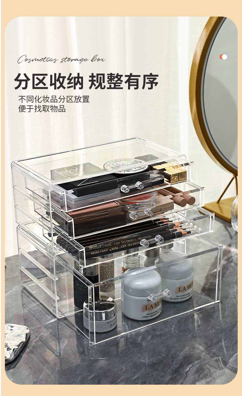 桌面透明防尘抽屉式护肤品收纳盒亚克力口红面膜化妆品首饰整理盒