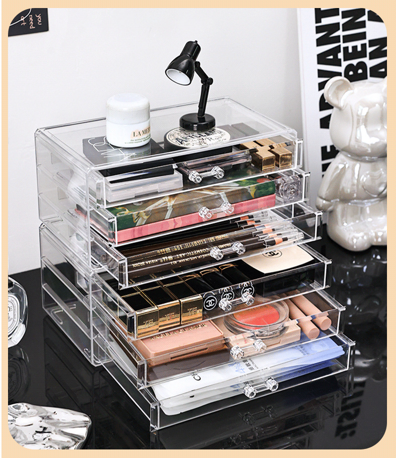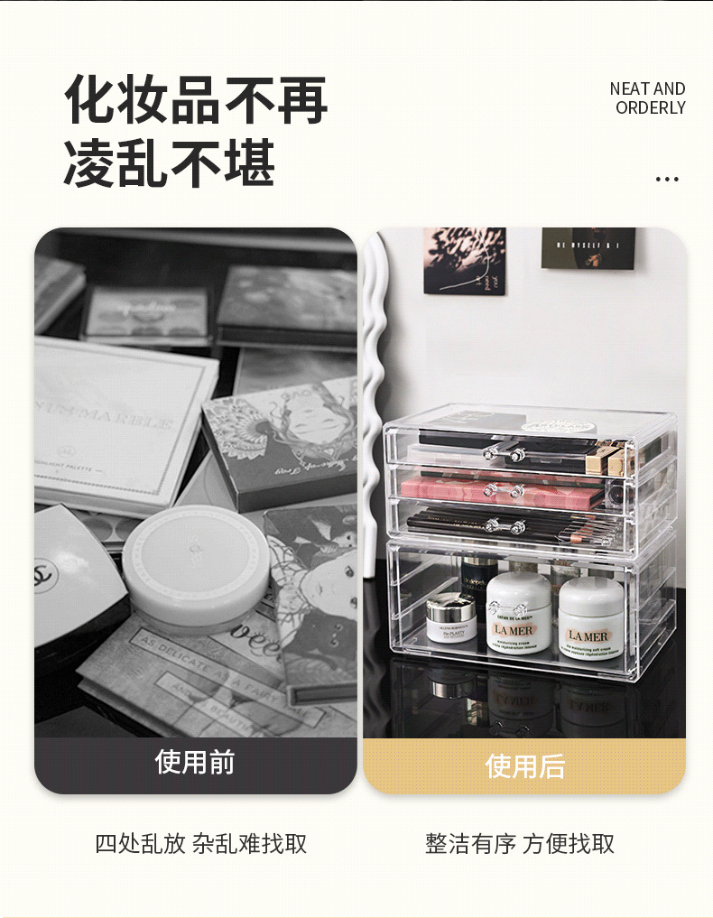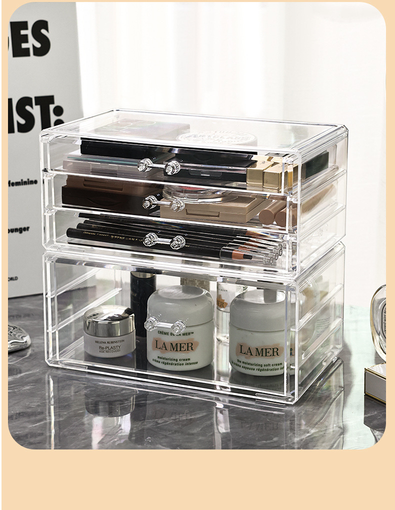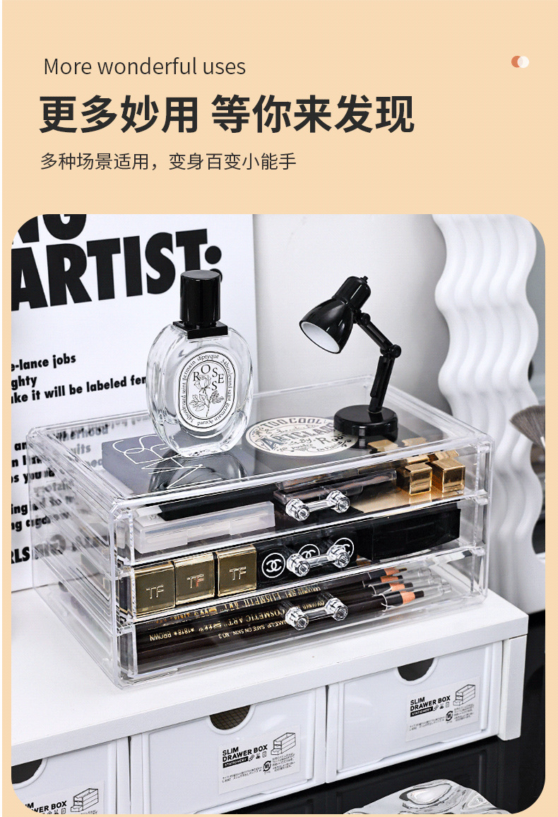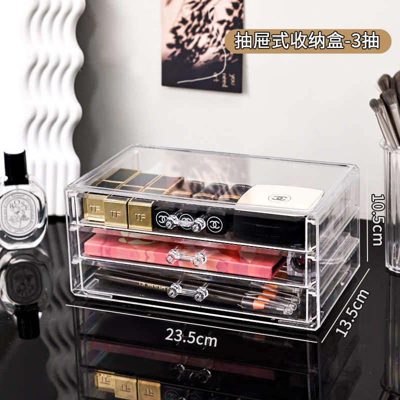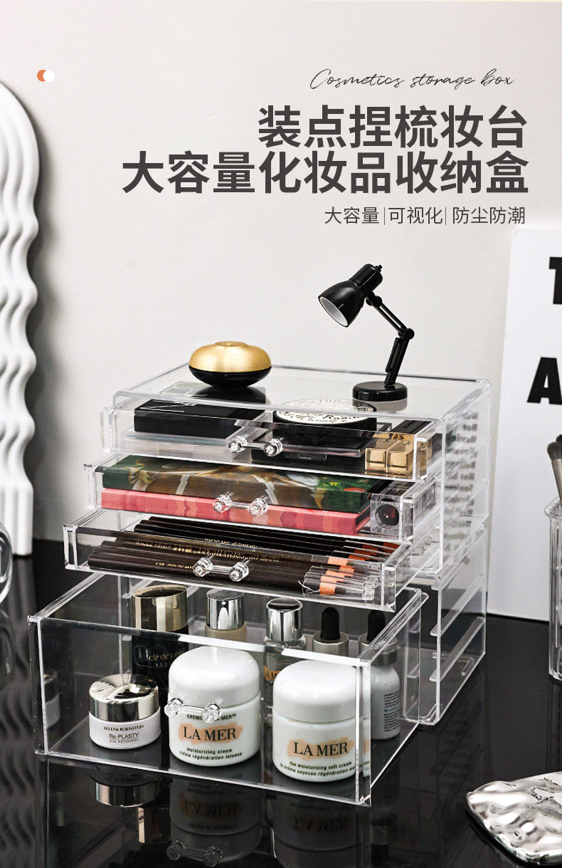 桌面透明防尘抽屉式护肤品收纳盒亚克力口红面膜化妆品首饰整理盒