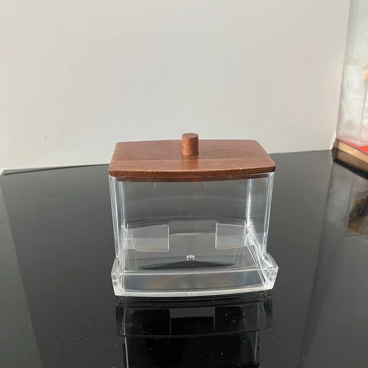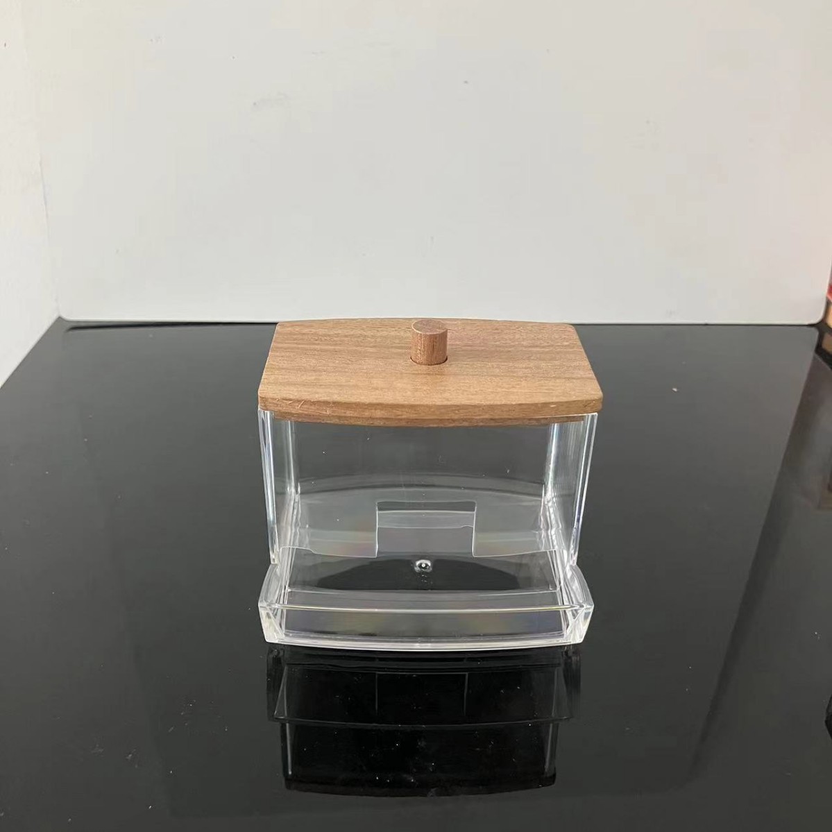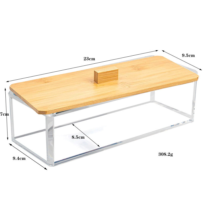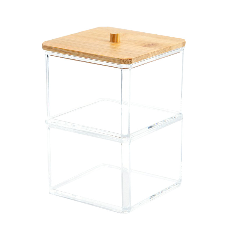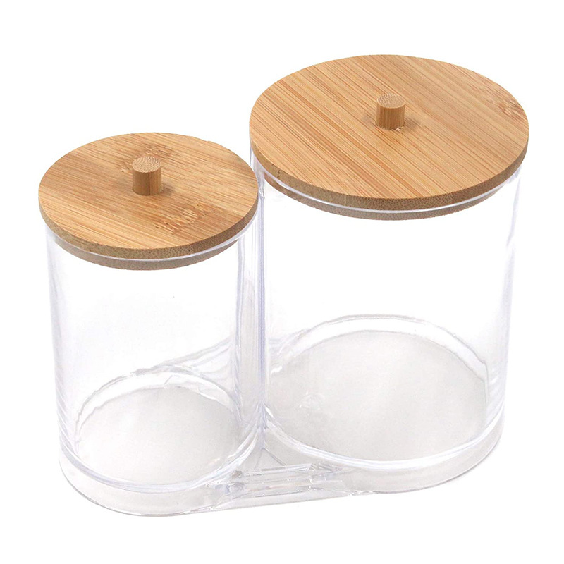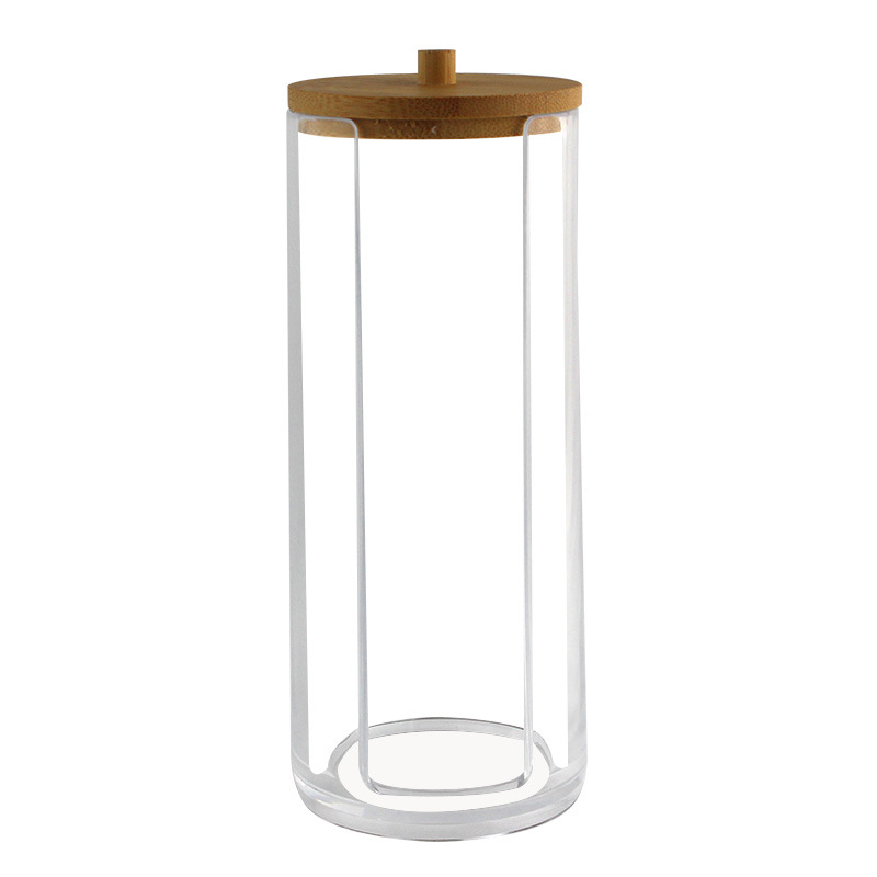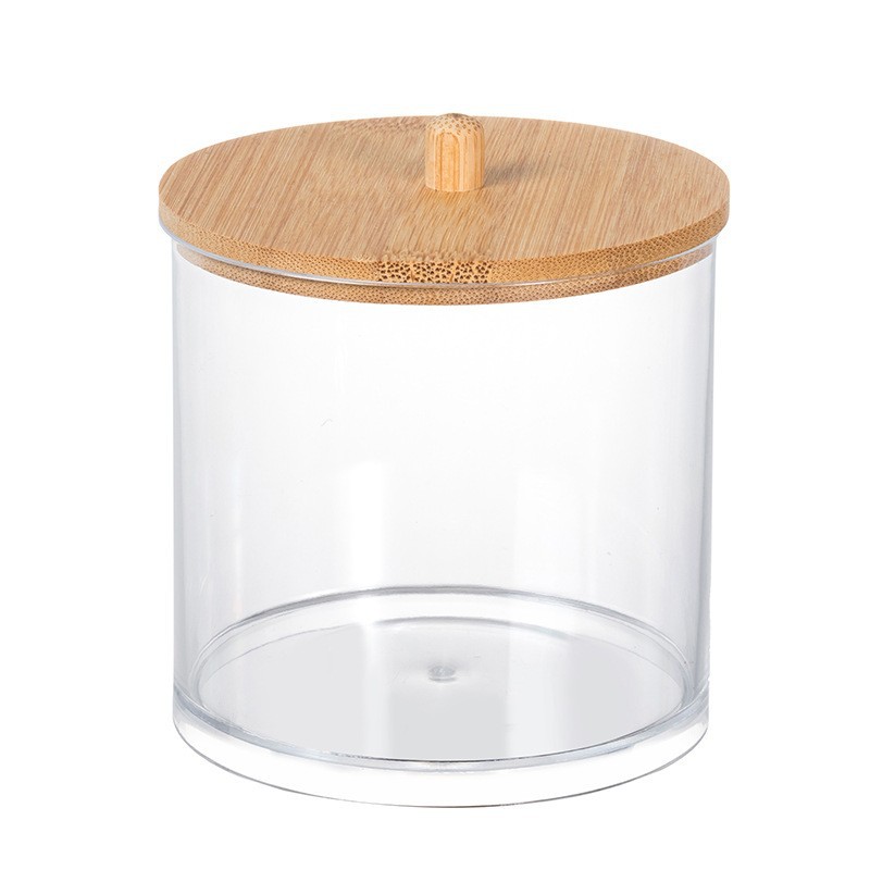透明亚克力化妆棉收纳盒女梳妆台简约防尘竹盖圆柱形卸妆棉收纳筒