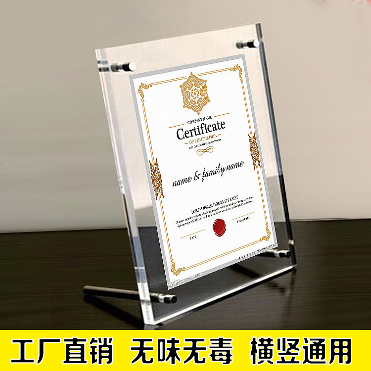 跨境亚克力相框A4授权证书 奖牌奖状框 水晶相框摆台A3营业执照框