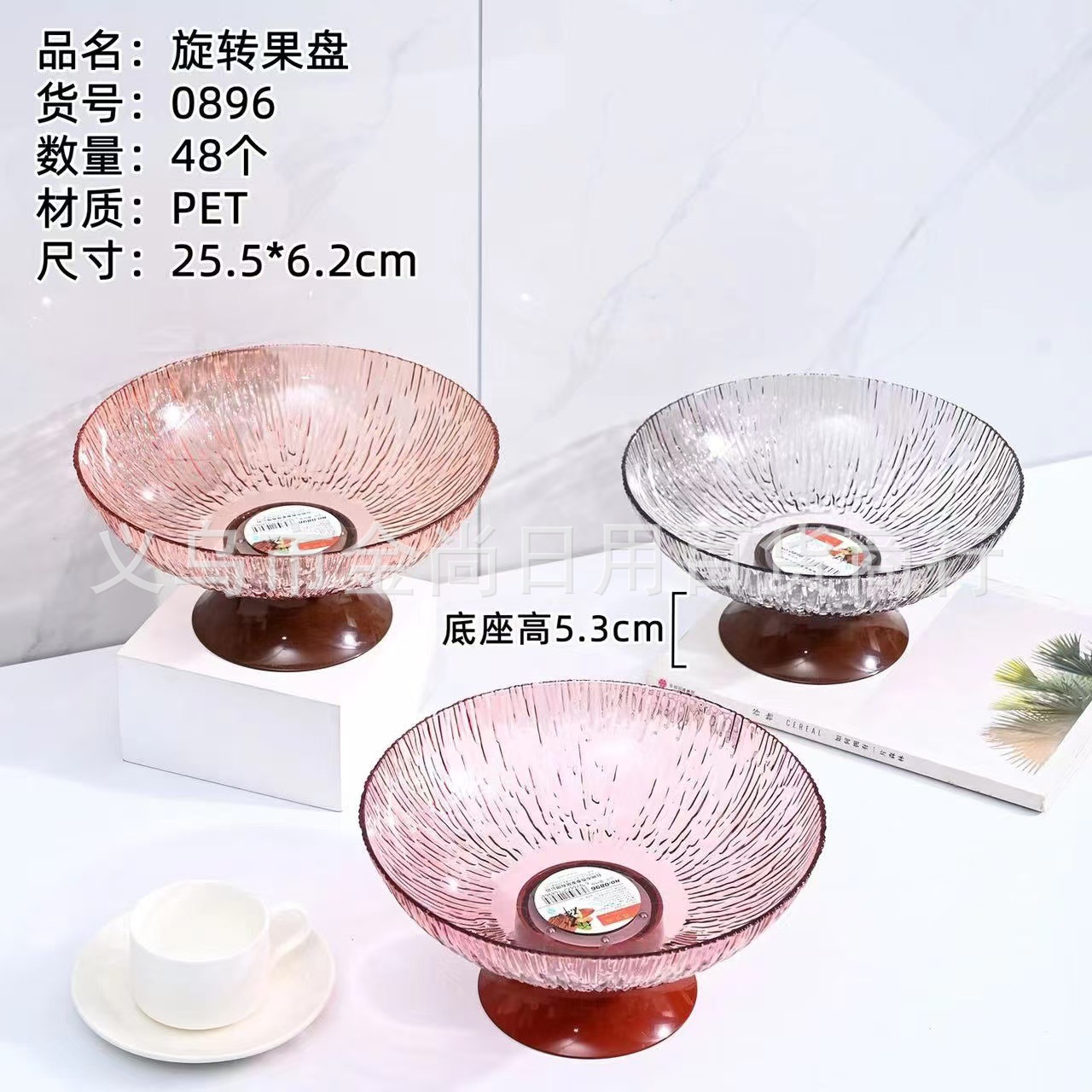 透明PET圆方形果盘轻奢金边提手水果盘客厅茶几零食盘子坚果盘 批