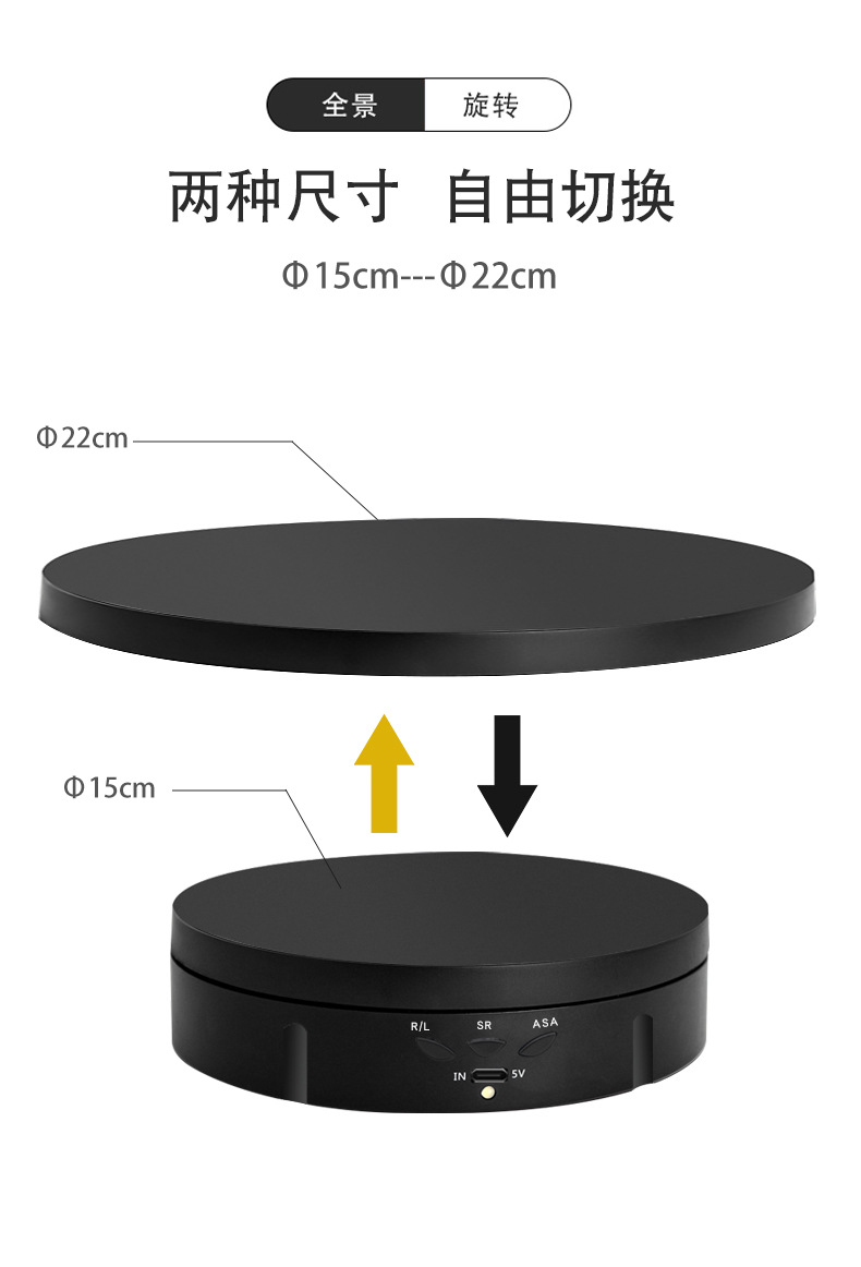 二合一旋转展示台视频拍摄小转盘 自动拍照台首饰直播架电动转盘