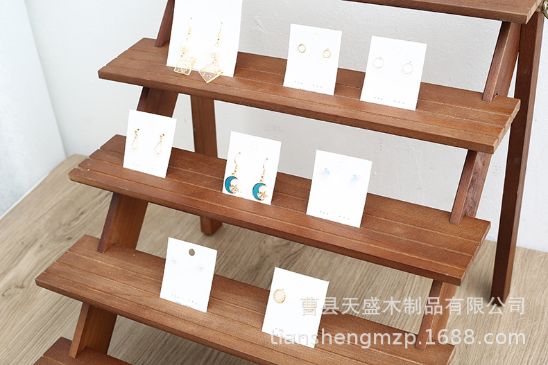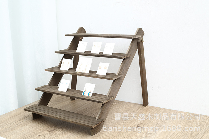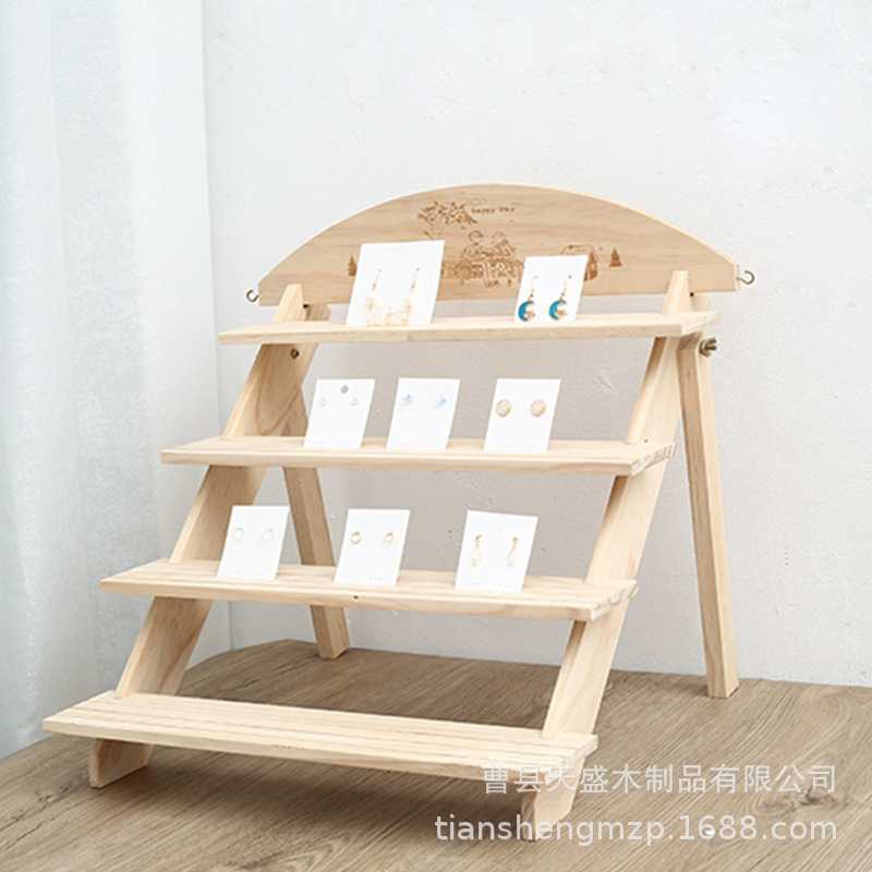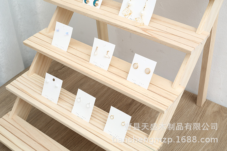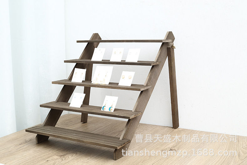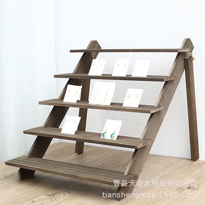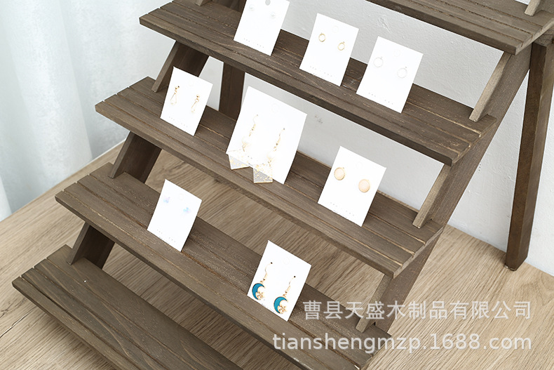 实木首饰展示架木质阶梯桌面多层储物收纳架耳环耳钉饰品架可拆摆