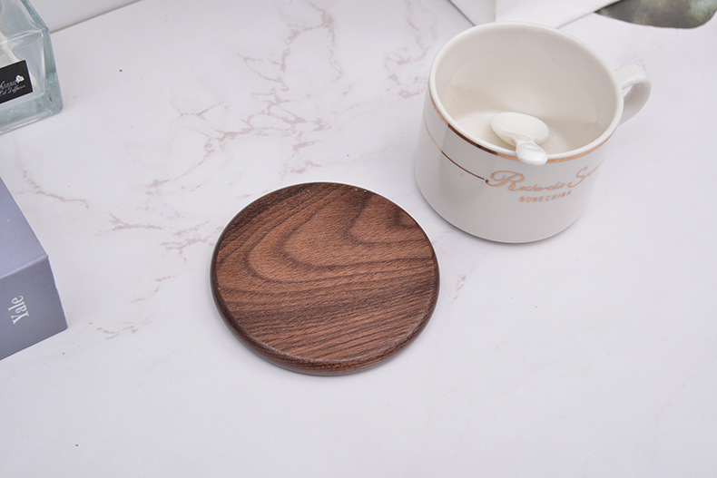 木质杯垫黑胡桃木圆杯垫咖啡杯垫简约木制桌面杯垫隔热垫