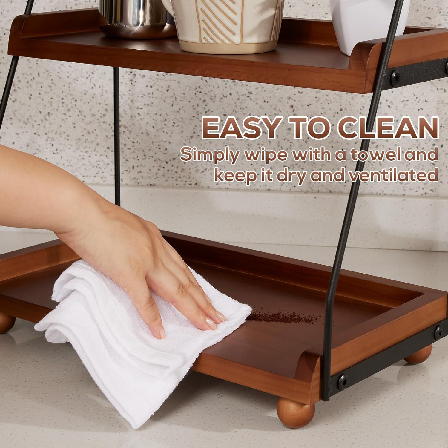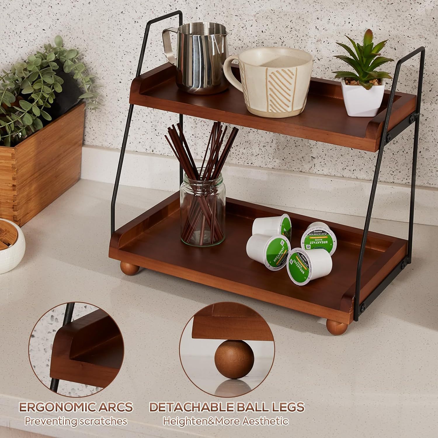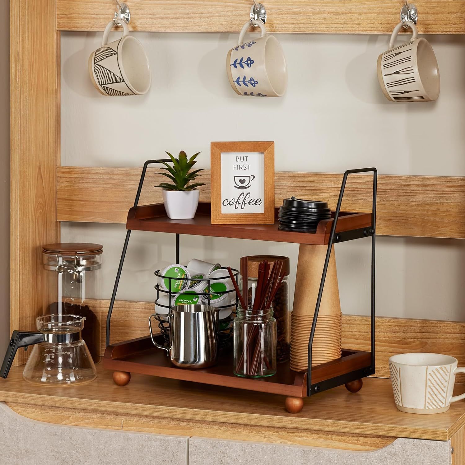铁木结合双层收纳架厨房调料整理架桌面咖啡糖浆罐杯架木质置物架