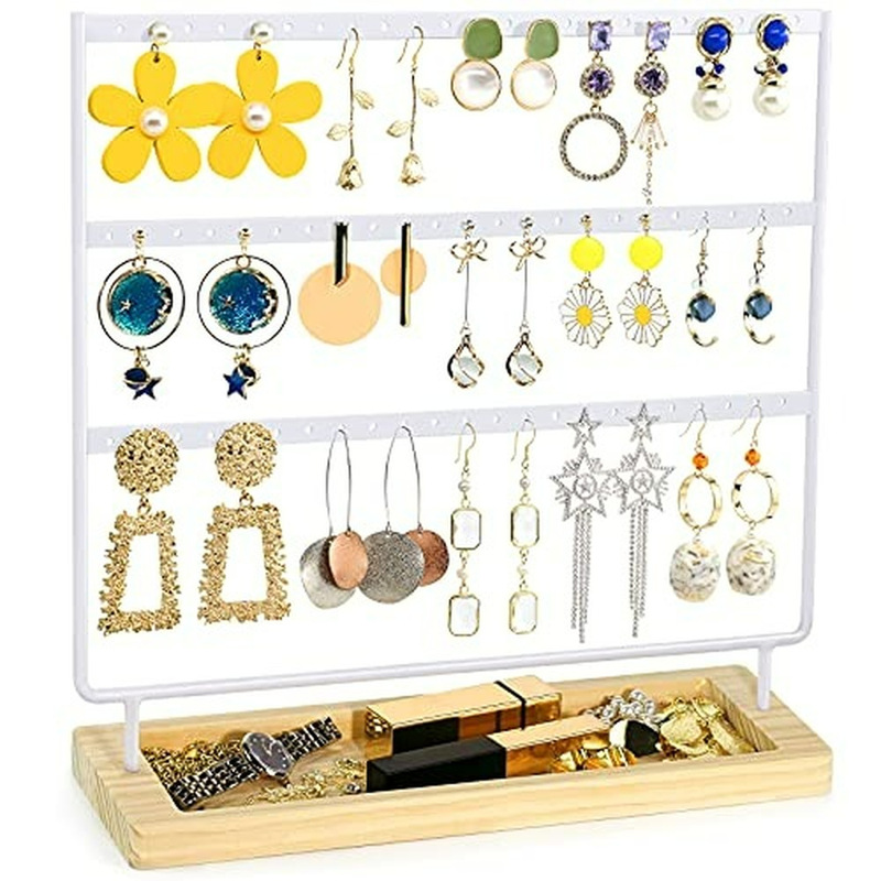 亚马逊热销可拆卸木底座耳钉展示架 144孔耳环收纳架桌面挂耳环架