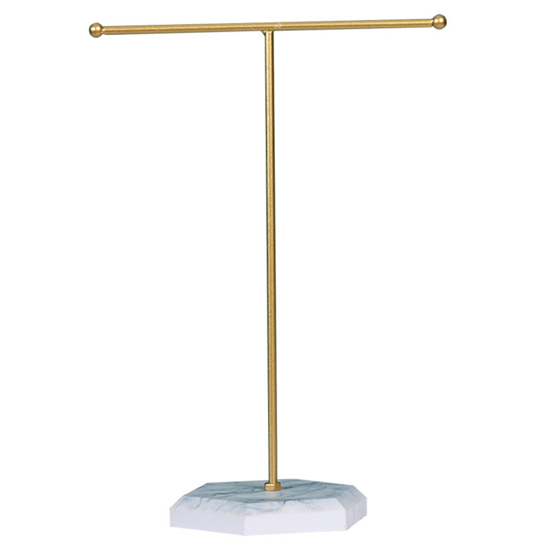 大理石纹T字形首饰架柜台挂项链架子木底座饰品架耳环展示收纳架