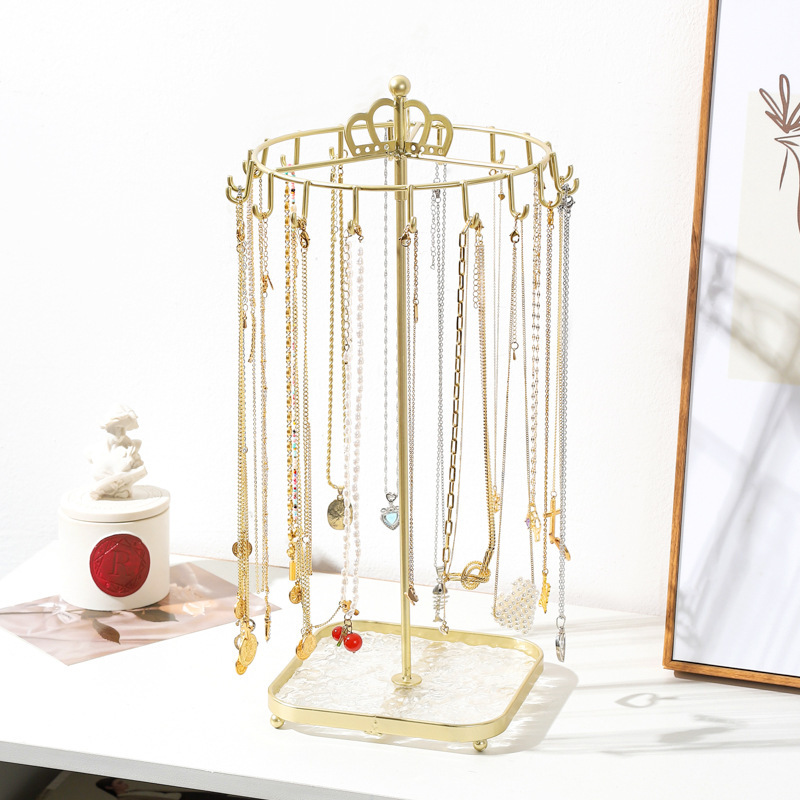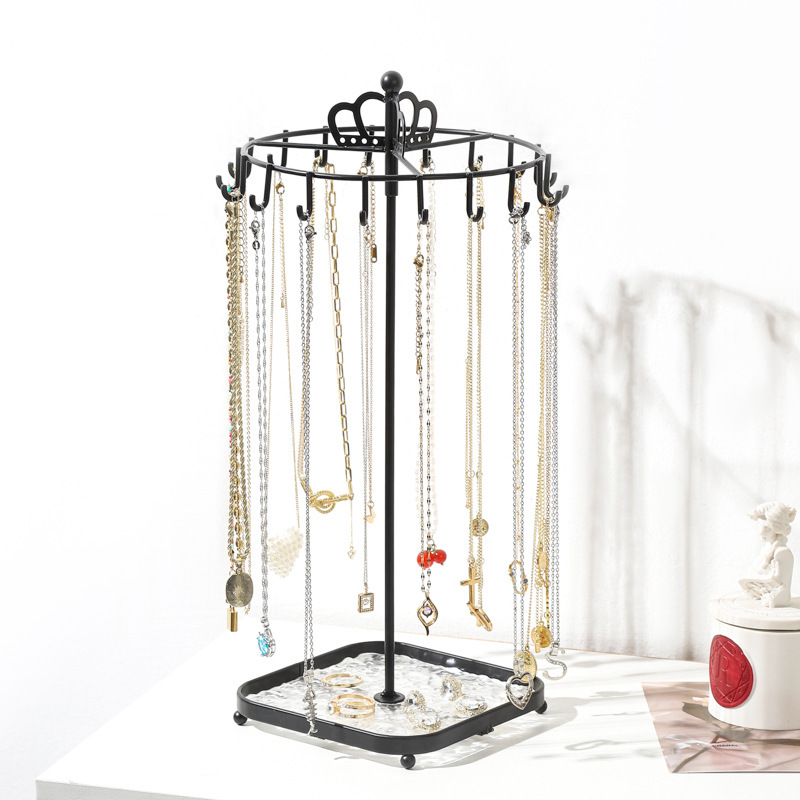 金属饰品架旋转项链展示架子18钩铁艺饰品展示架托盘底桌面首饰架