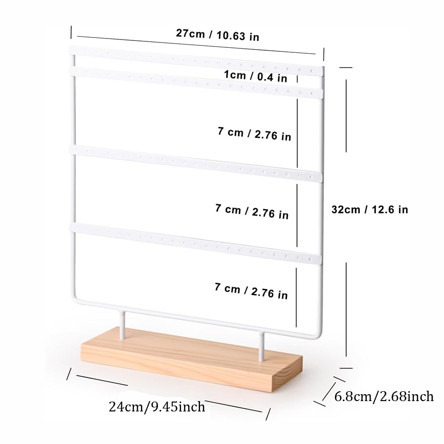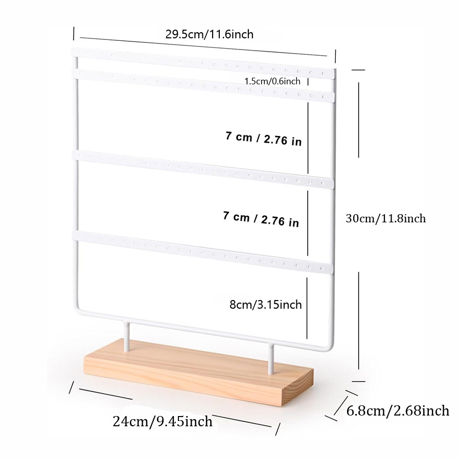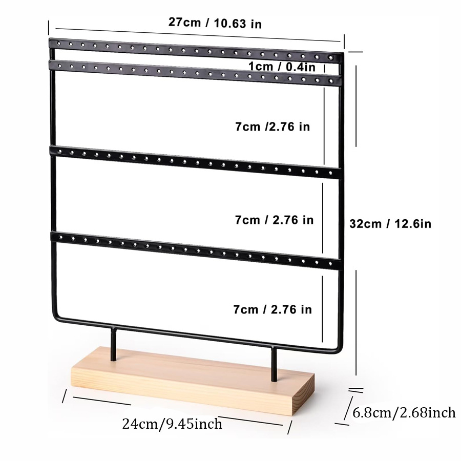 跨境四层木底座耳环展示架可拆卸首饰收纳架铁艺挂耳环耳钉架子