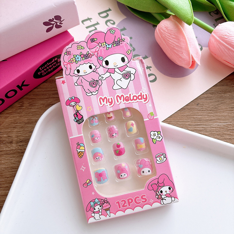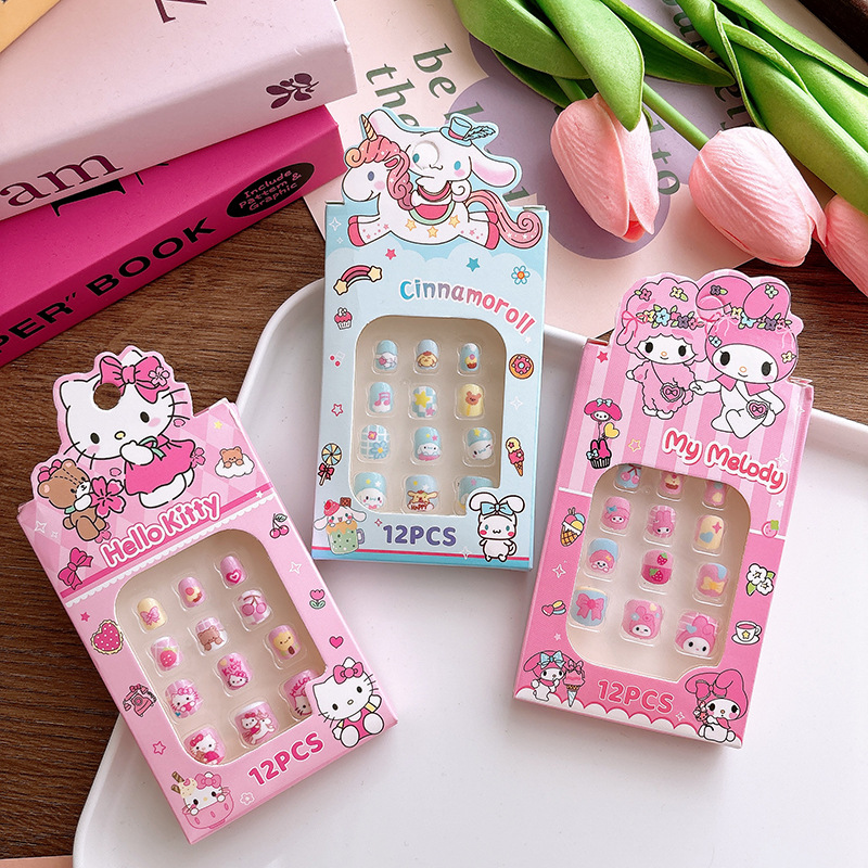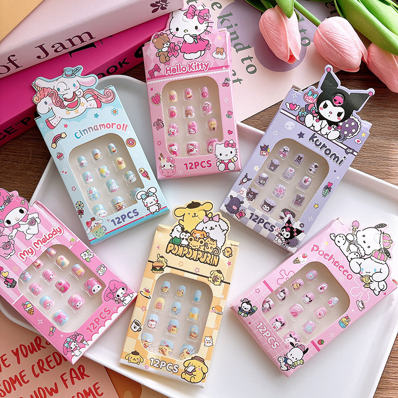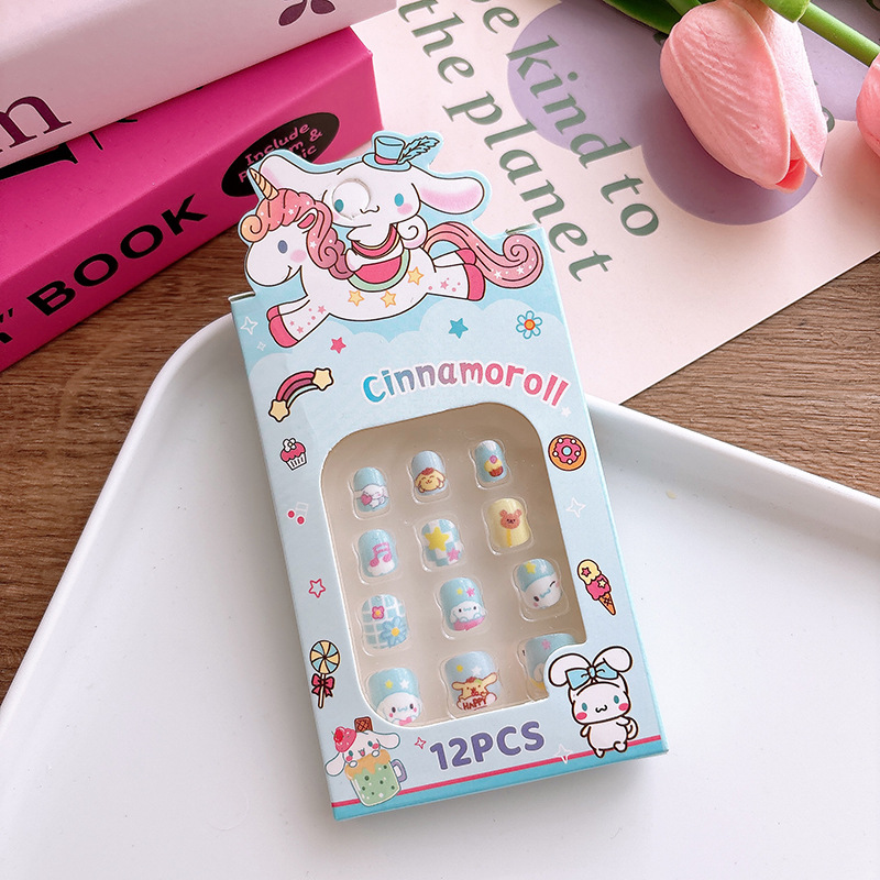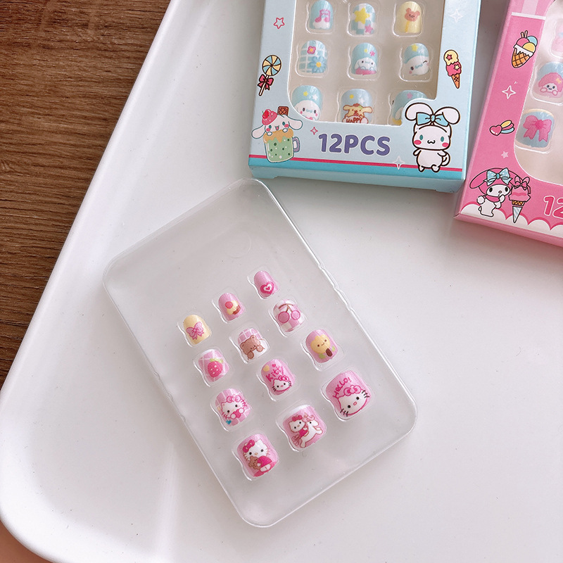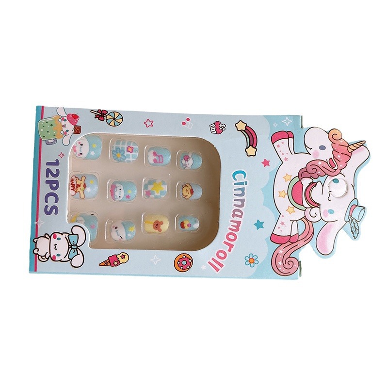12片可爱印花儿童指甲贴超萌儿童三丽鸥美甲贴女孩装扮甲穿戴甲
