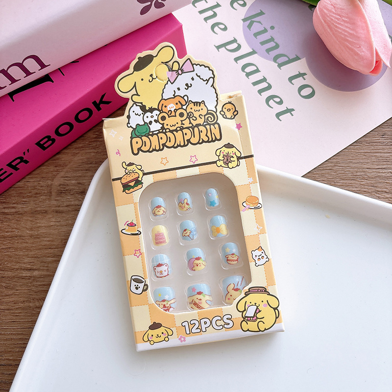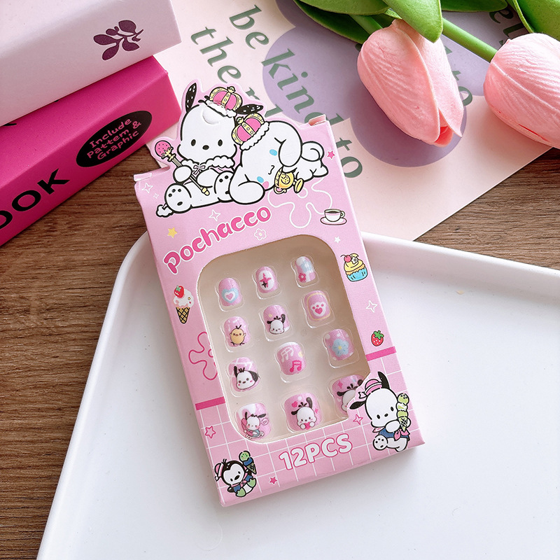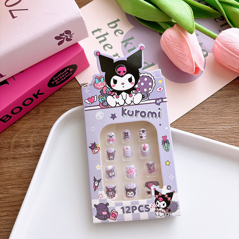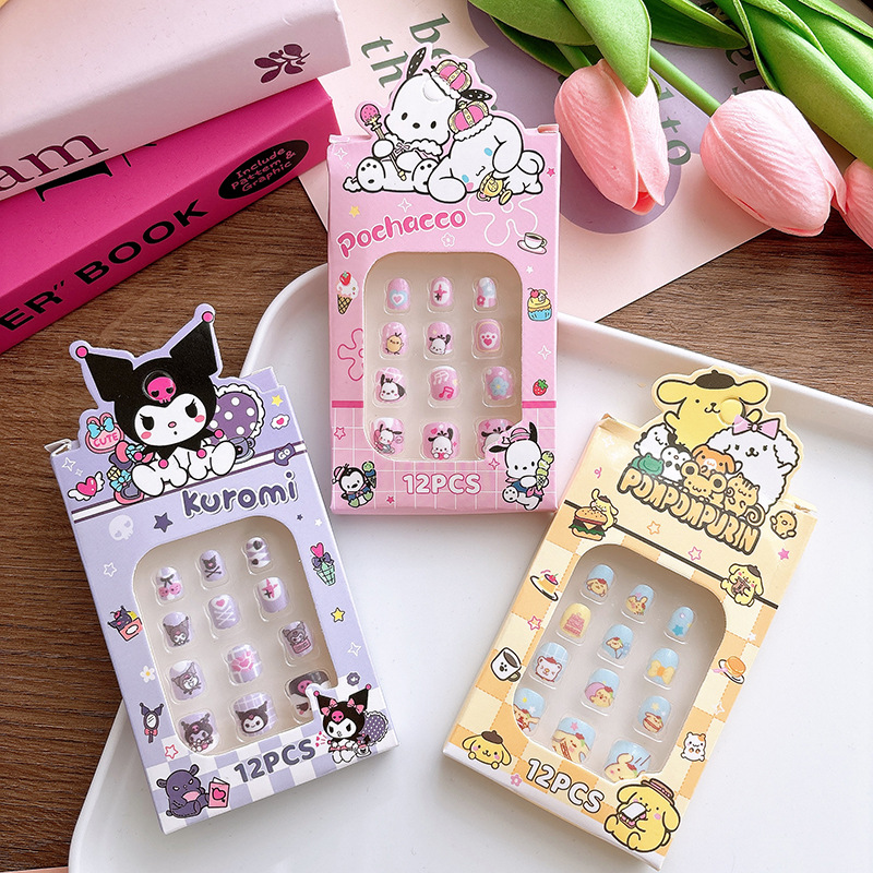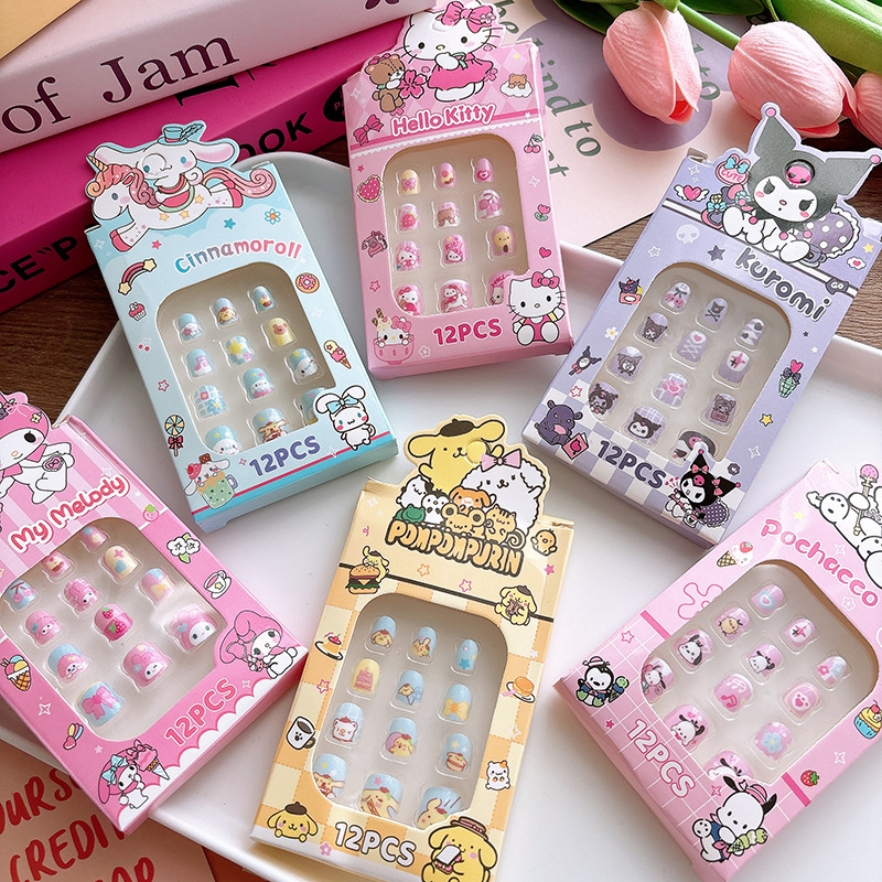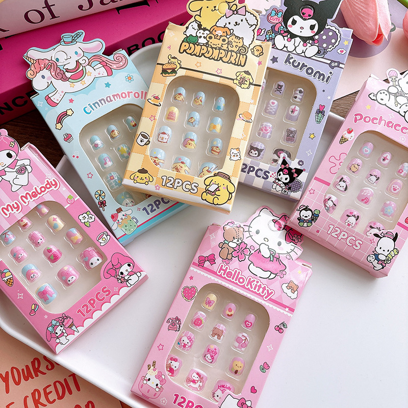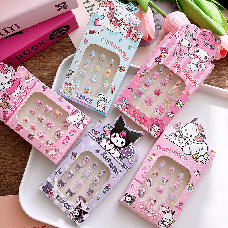 12片可爱印花儿童指甲贴超萌儿童三丽鸥美甲贴女孩装扮甲穿戴甲