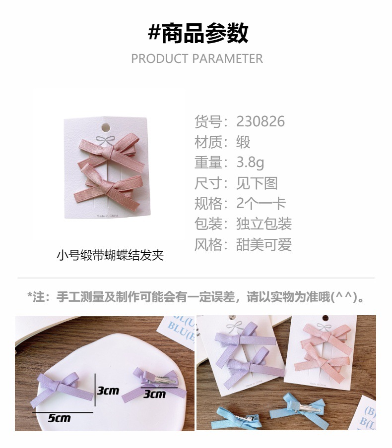 2个 温柔芭蕾风甜美小号缎带蝴蝶结发夹手作对夹女生公主头发饰
