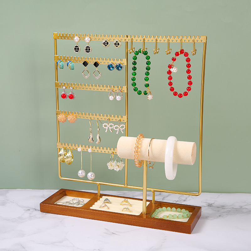 厂家直销多功能耳环展示架项链戒指饰品手镯架可拆卸木质底首饰架