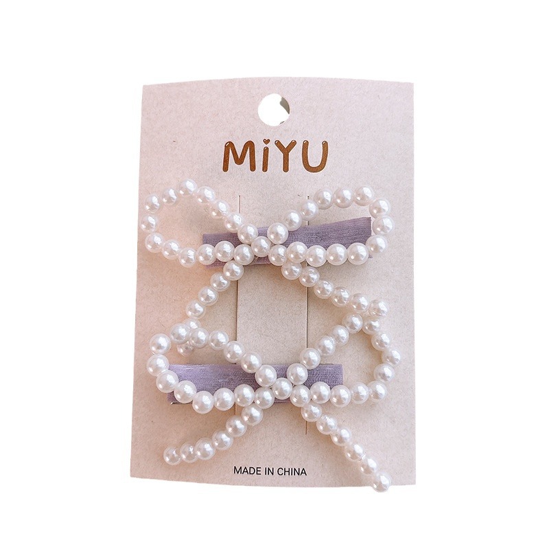韩版甜美大号珍珠蝴蝶结少女边夹百搭串珠刘海发夹女孩清新发饰