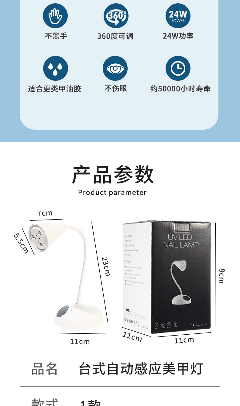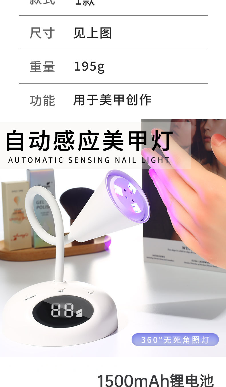 新款台式美甲感应光疗灯蓄电圆形底座台式美甲灯速干贴甲片专用