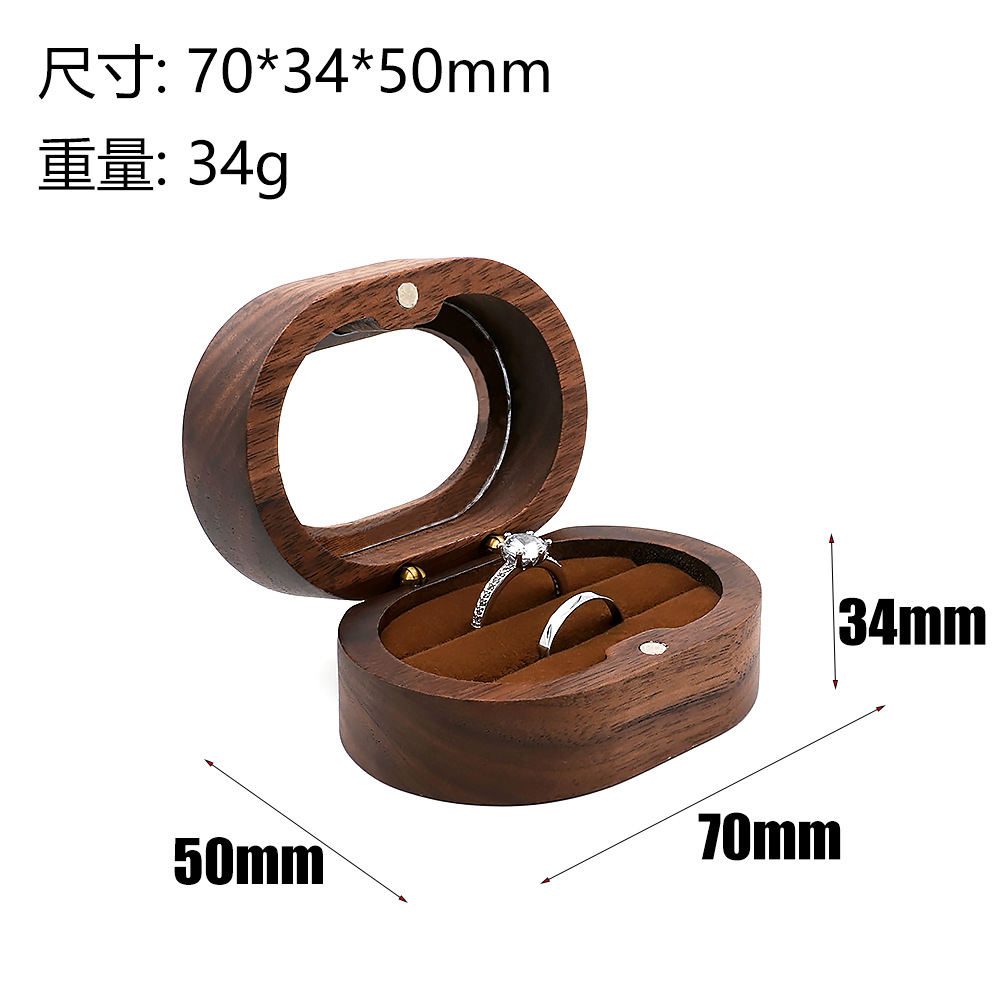 黑胡桃饰品盒戒指项链耳环收纳盒木质收纳椭圆木求订婚求婚道具