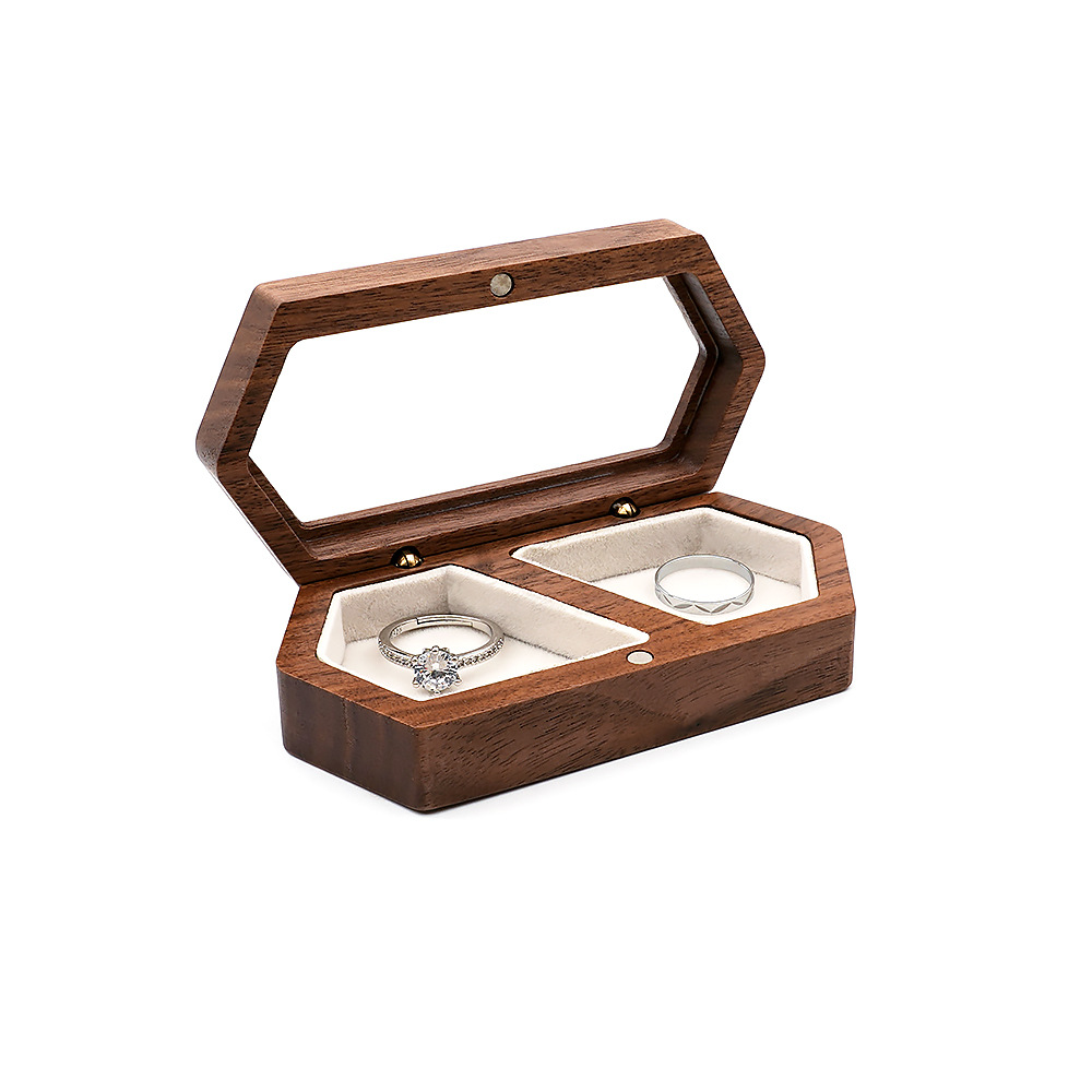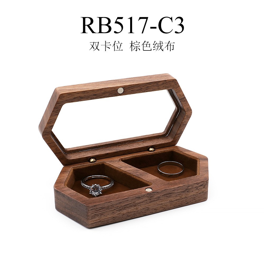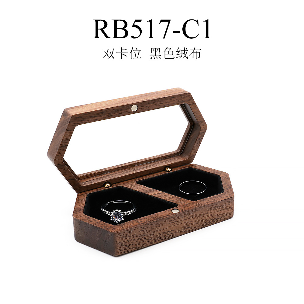 黑胡桃木质戒指盒珠宝钻对戒结求婚仪式钻戒盒送礼桌面耳饰收纳盒