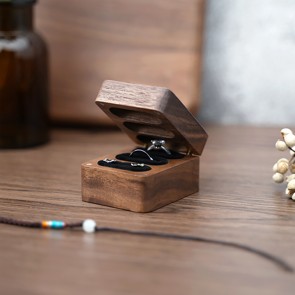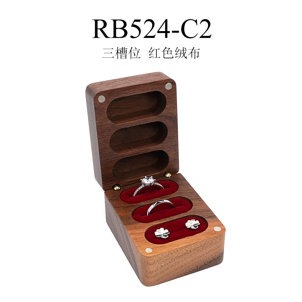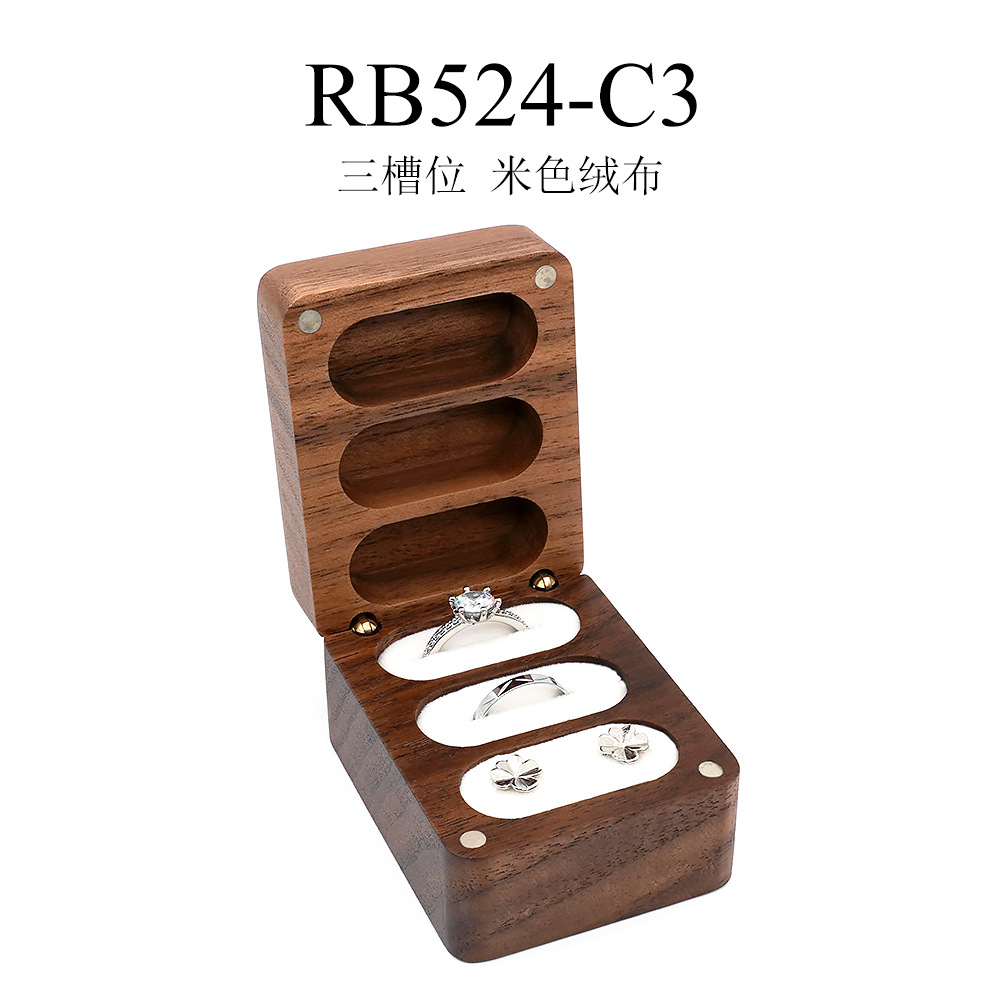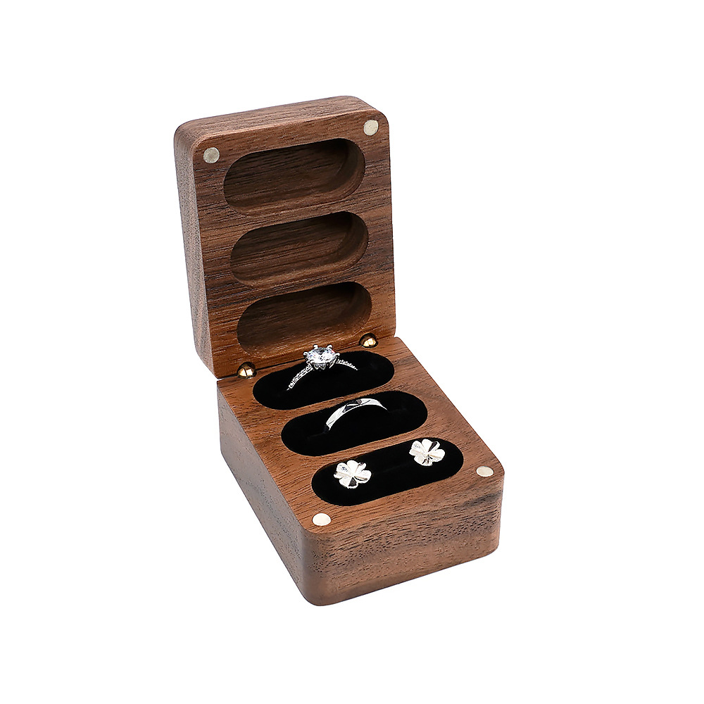 黑胡桃木婚礼戒指首饰盒高档小精致收纳盒项链耳钉盒交换礼物三槽