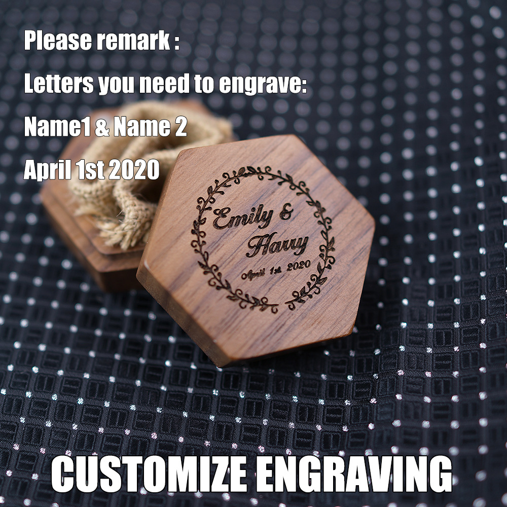 定制印刻字LOGO实木戒指盒子黑胡桃实木手工制首饰盒饰品戒指盒子
