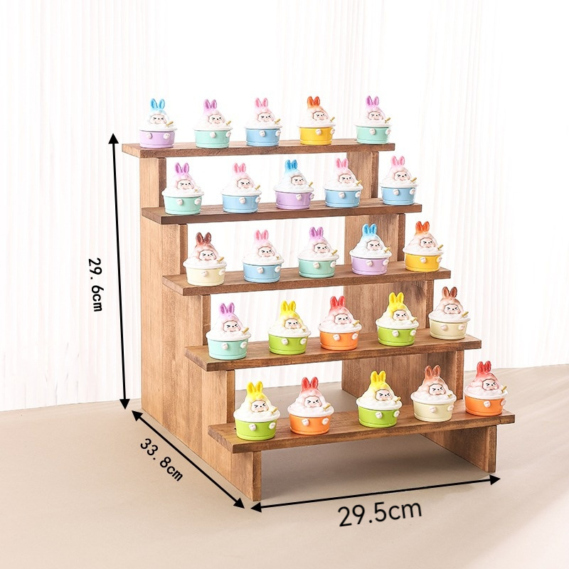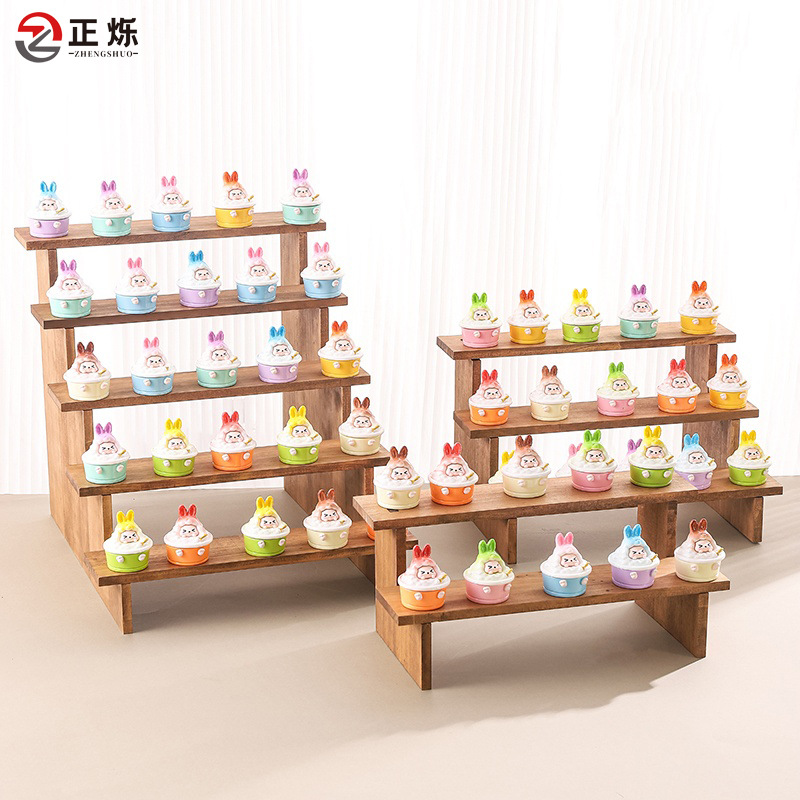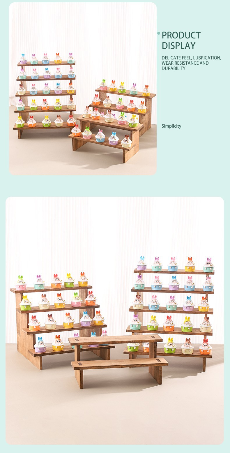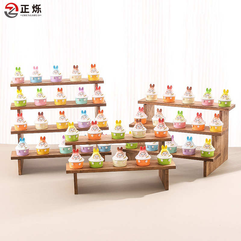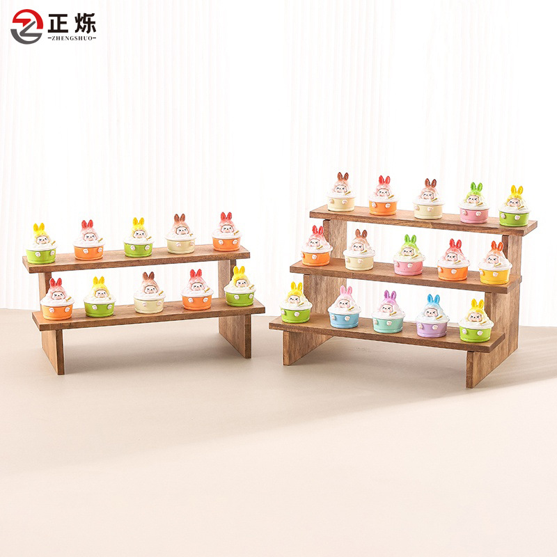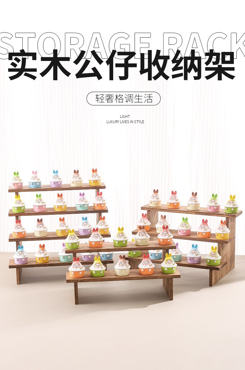 胡桃色萌粒盲盒展示架泡泡马特手办陈列置物架潮玩摆件台阶阶梯架
