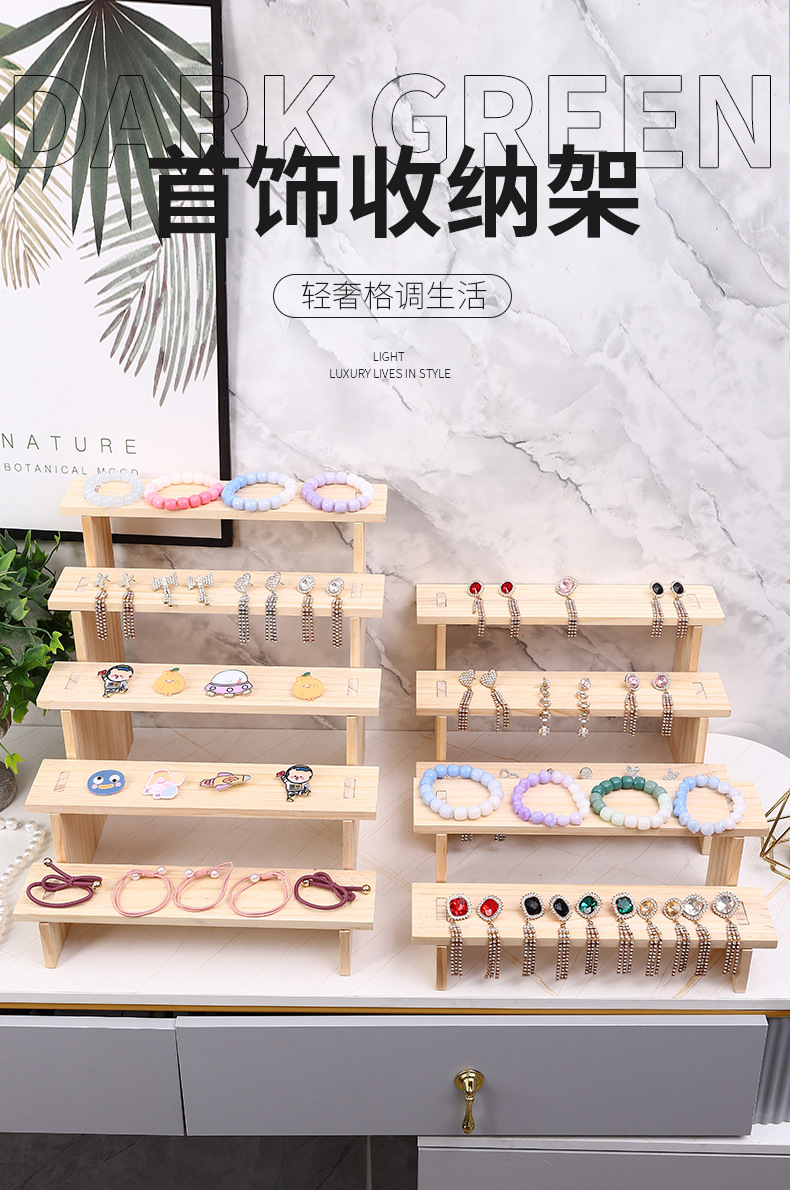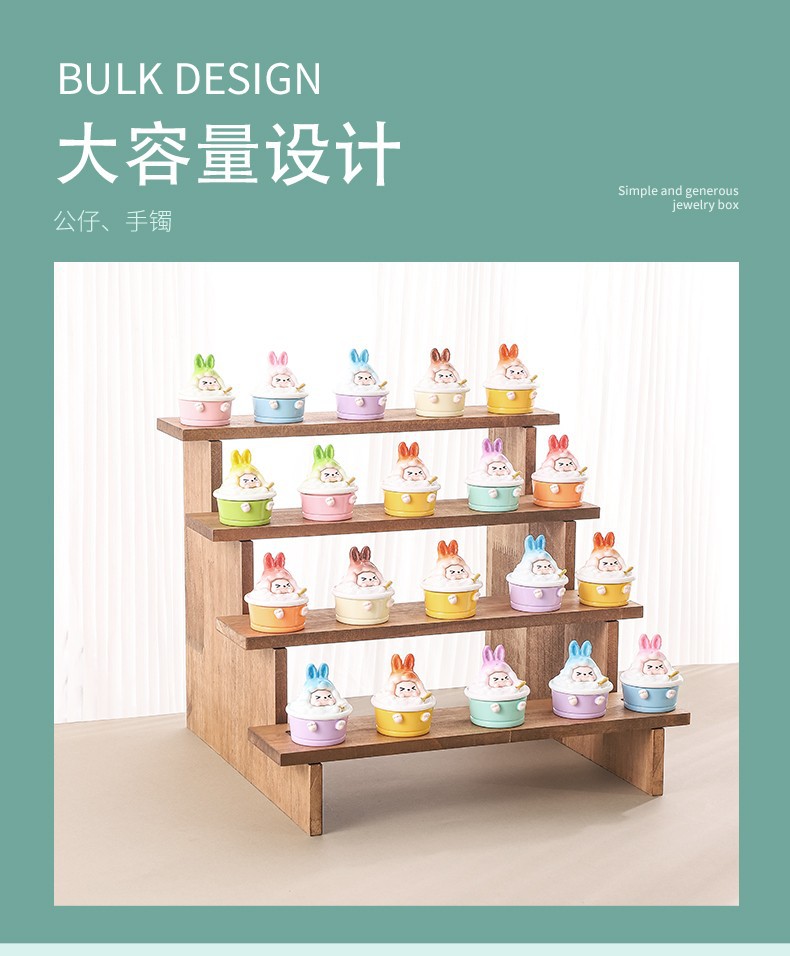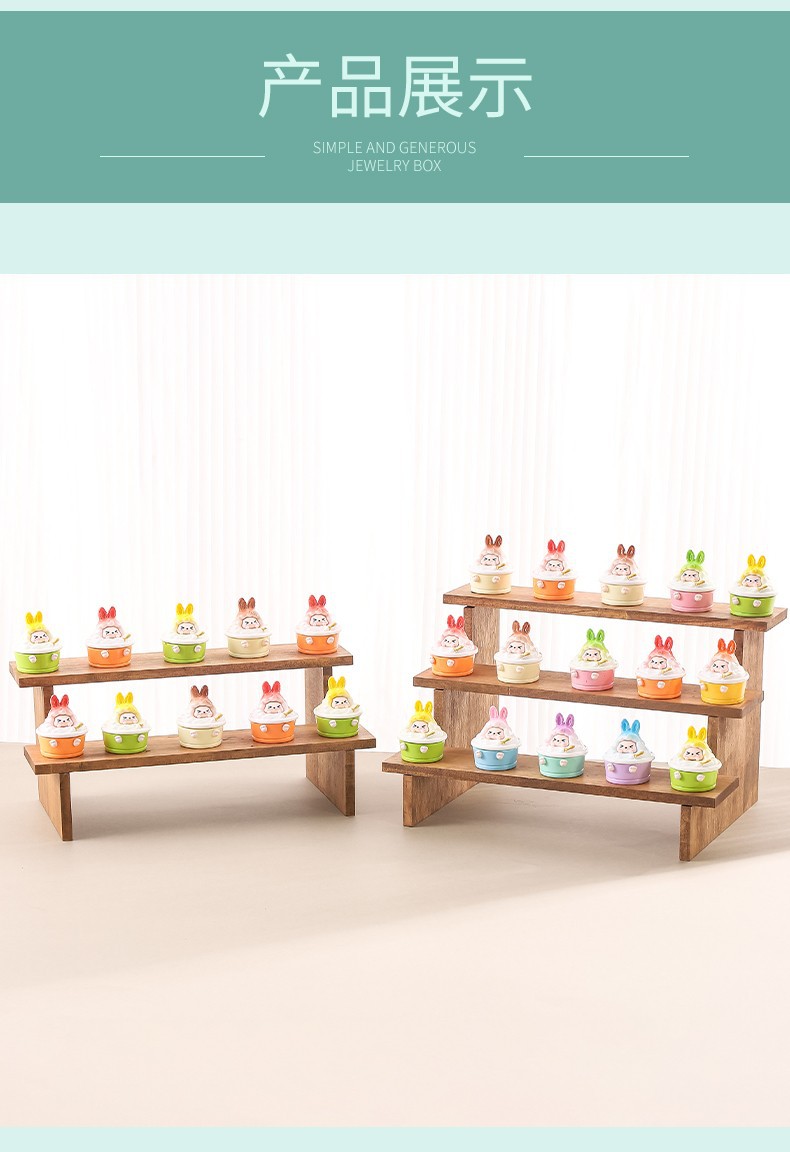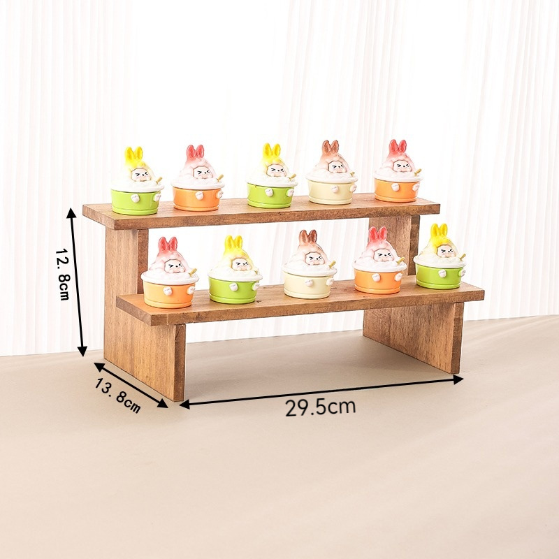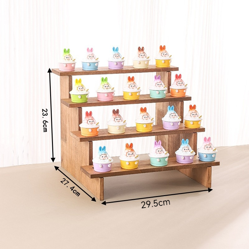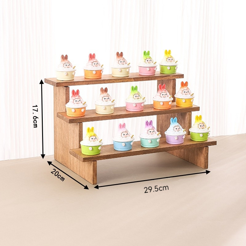 胡桃色萌粒盲盒展示架泡泡马特手办陈列置物架潮玩摆件台阶阶梯架