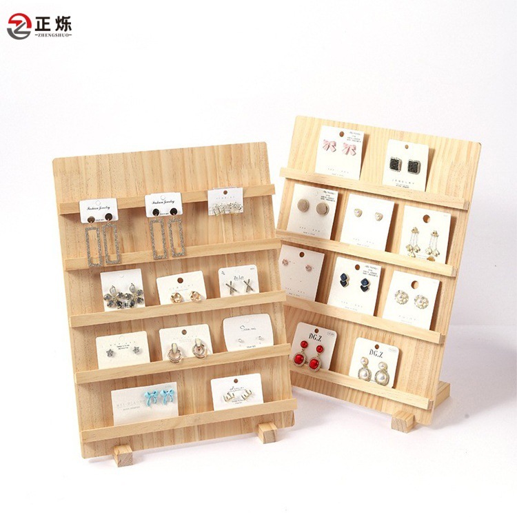 现货原木立式耳环卡纸展示架耳环耳钉展示板直播摆摊耳饰陈列道具