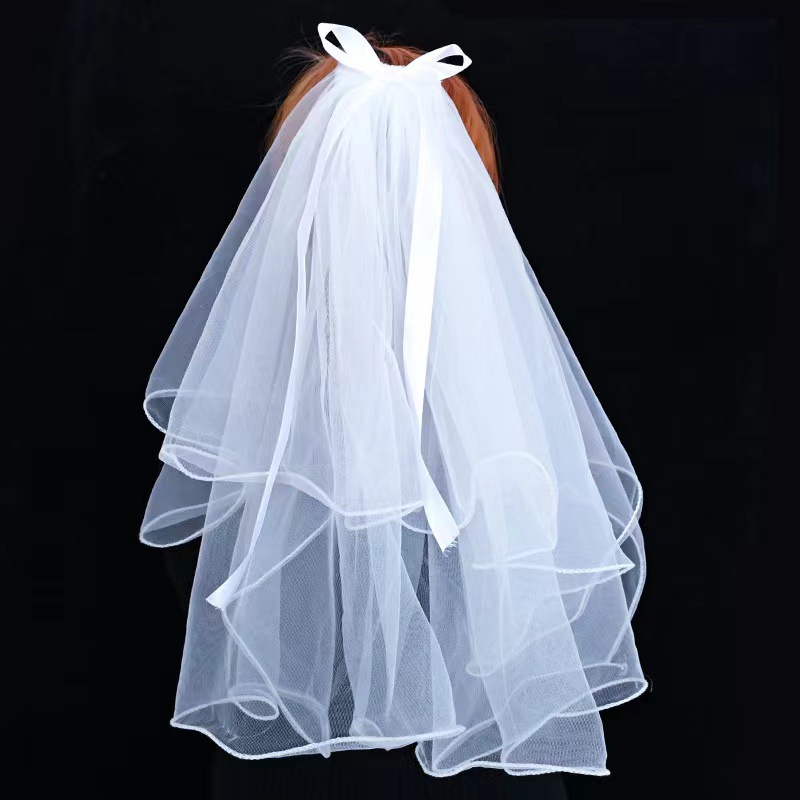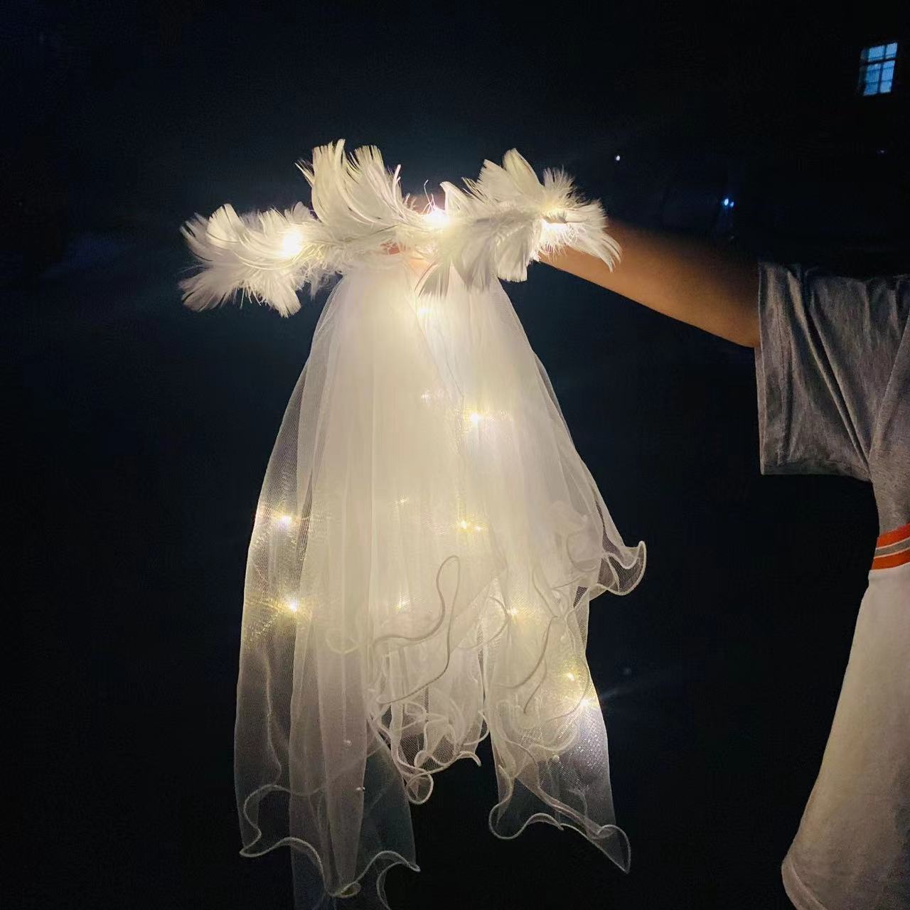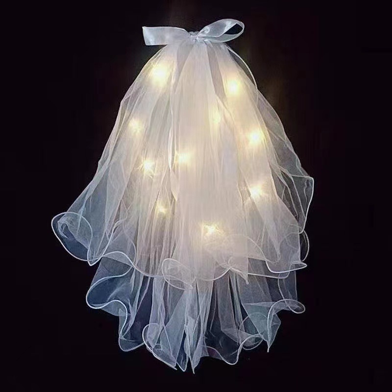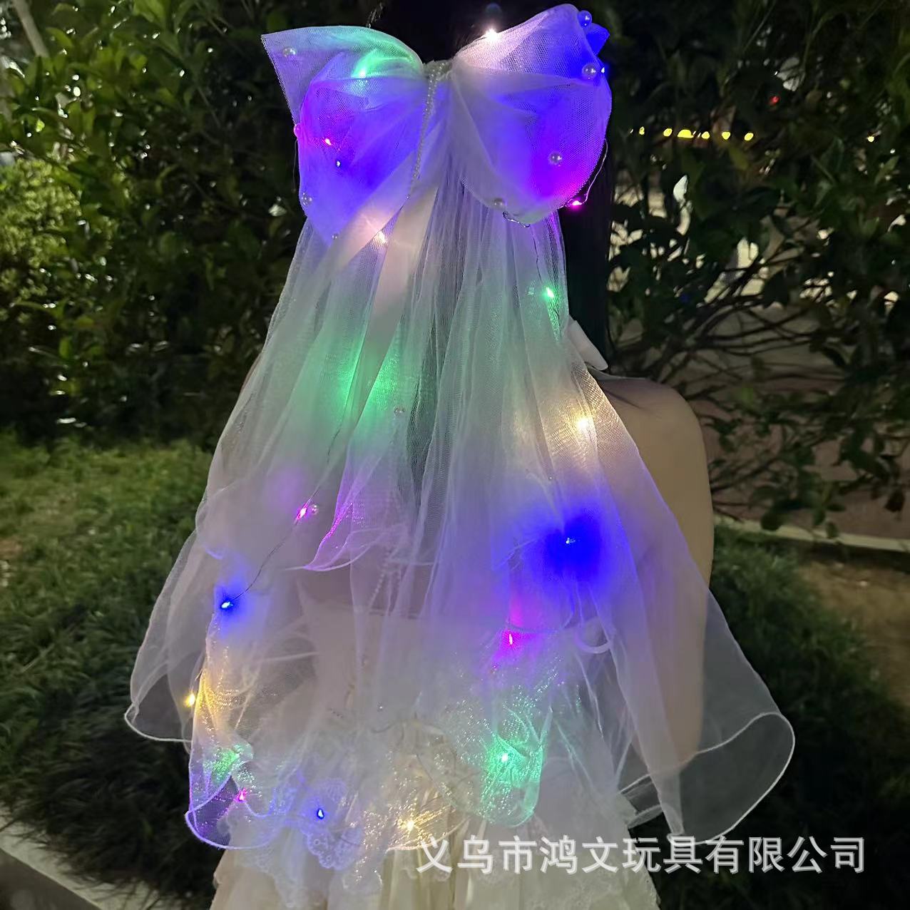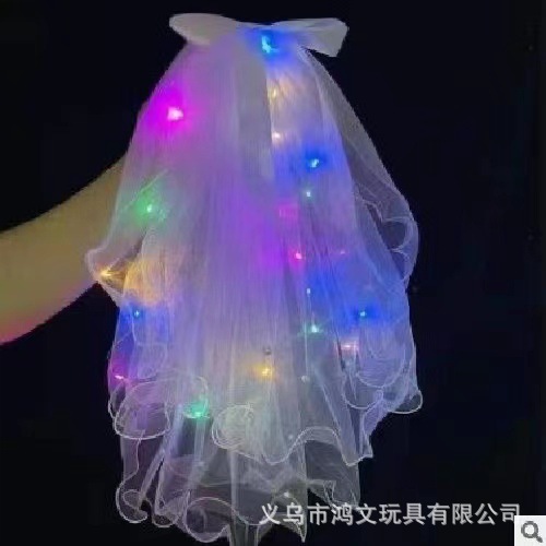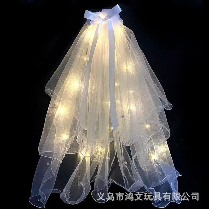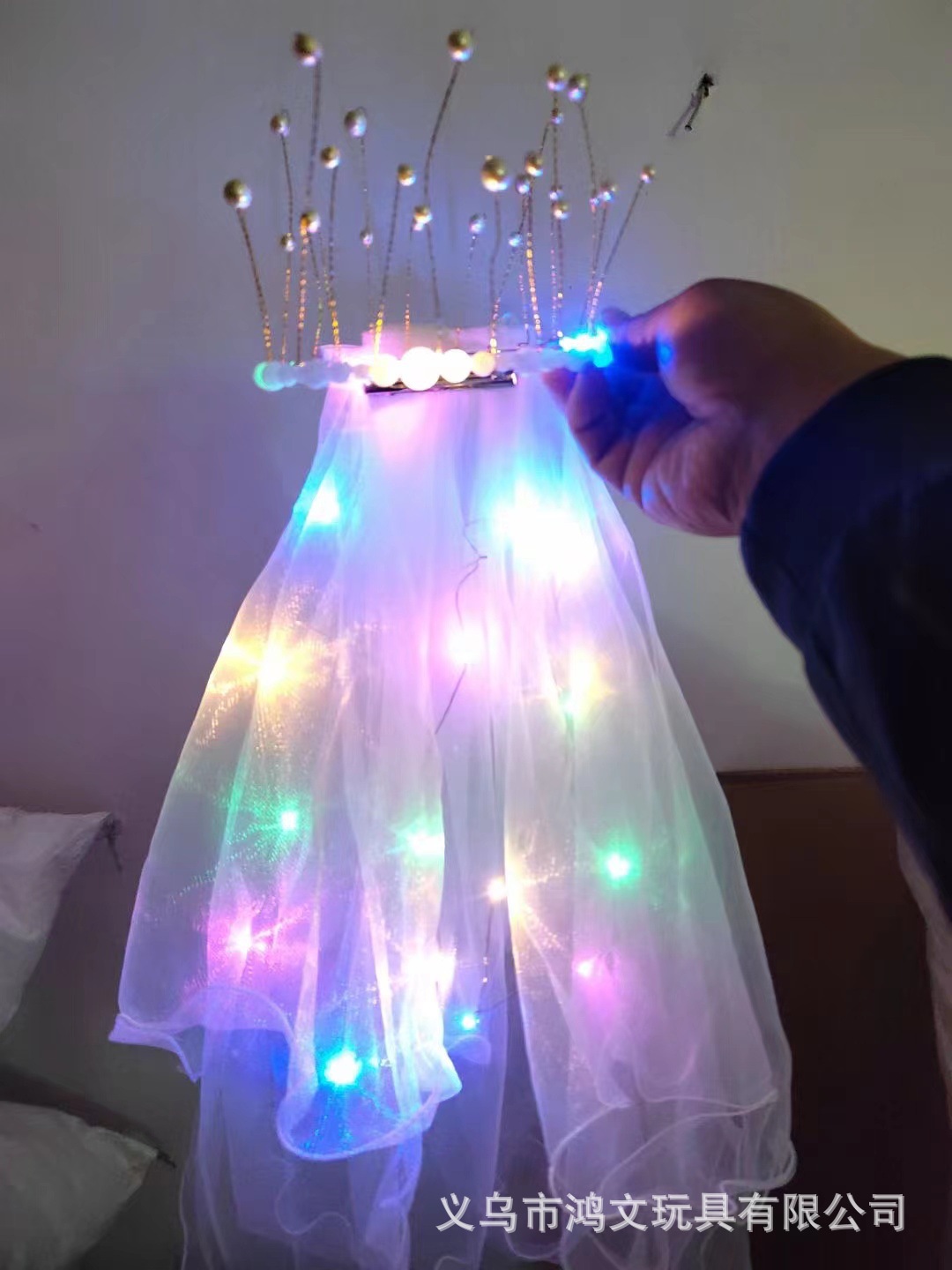 网红发光头纱珍珠皇冠头纱拍照领证生日装扮儿童头纱夜市地摊批发