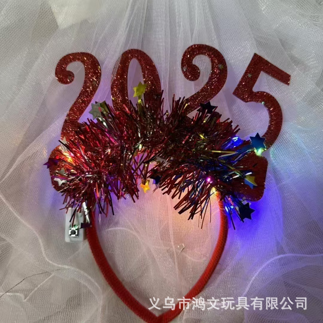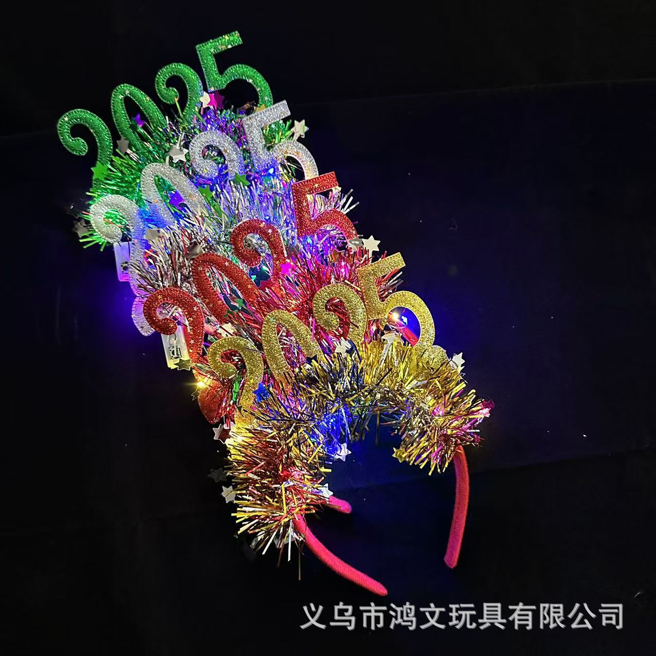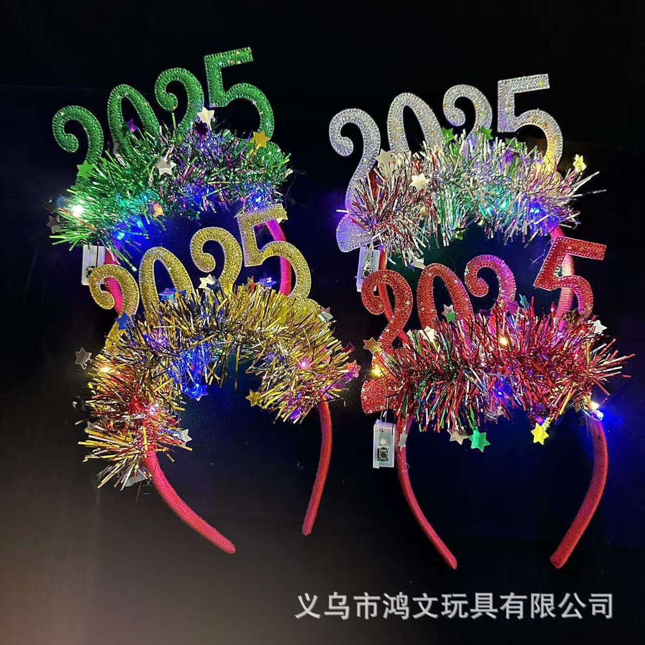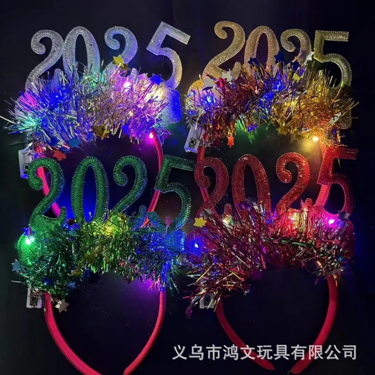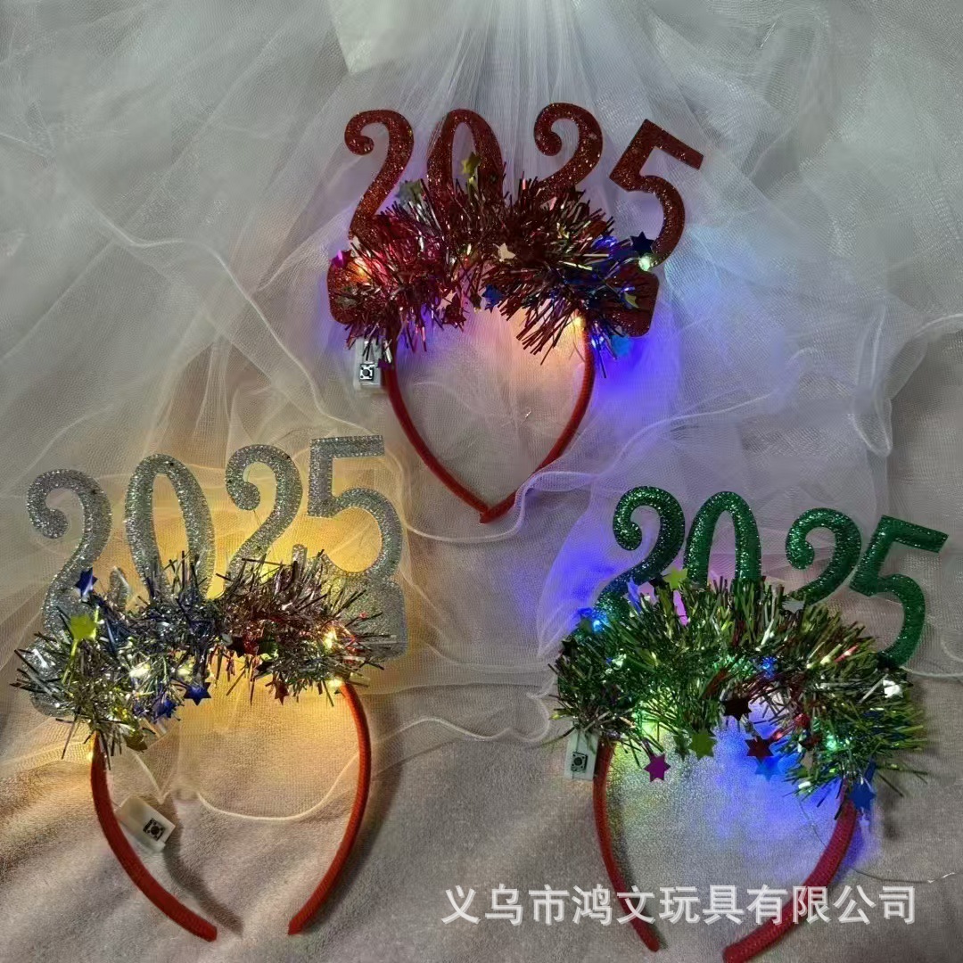 新款2025圣诞发光发箍 新年派对聚会发光头饰 酒吧跨年活动装饰