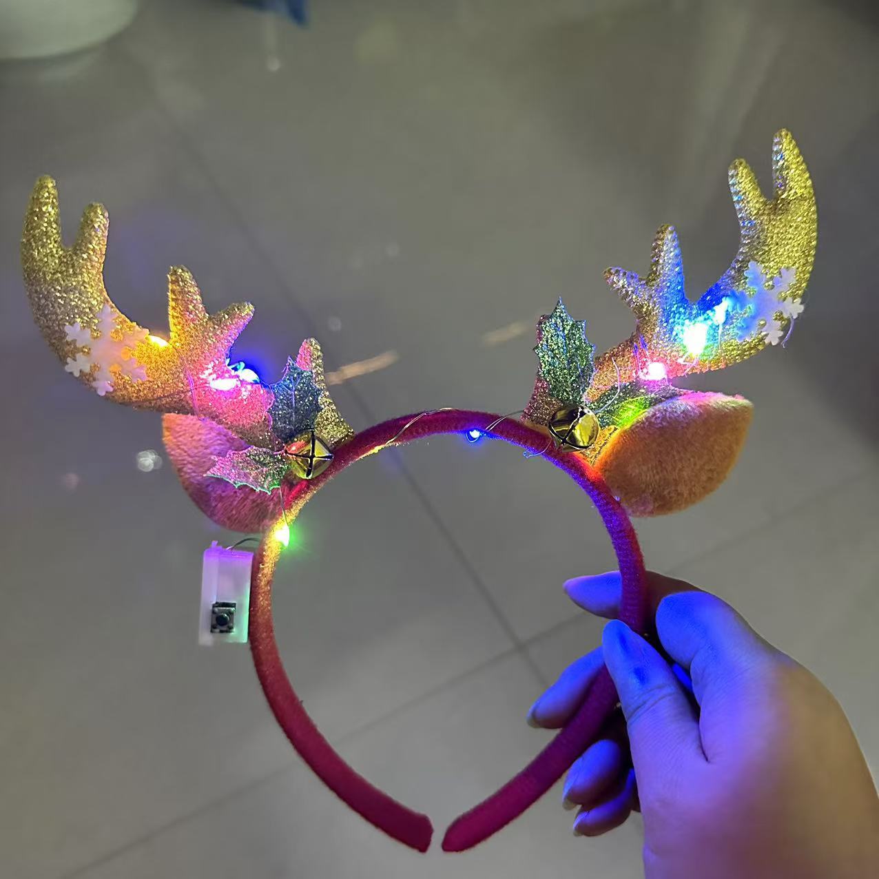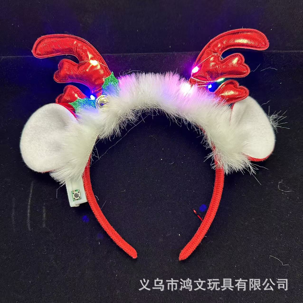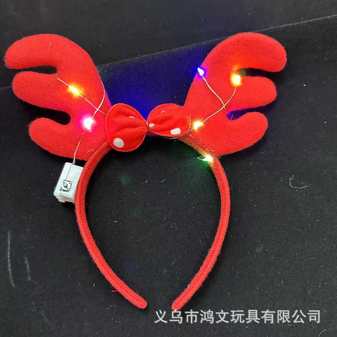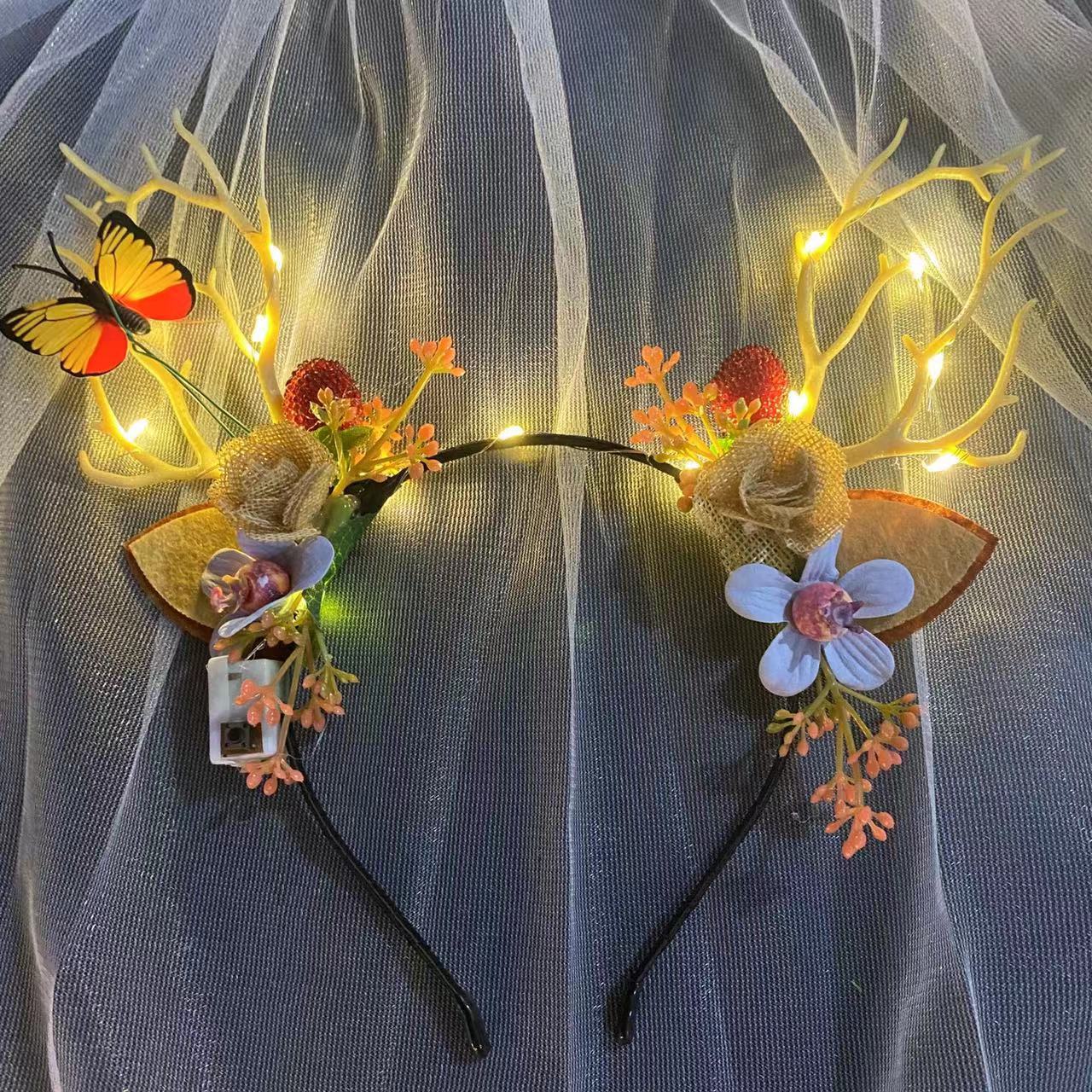 跨境批发新款森系头箍圣诞节蝴蝶大鹿角头饰夜市发光发箍地摊玩具