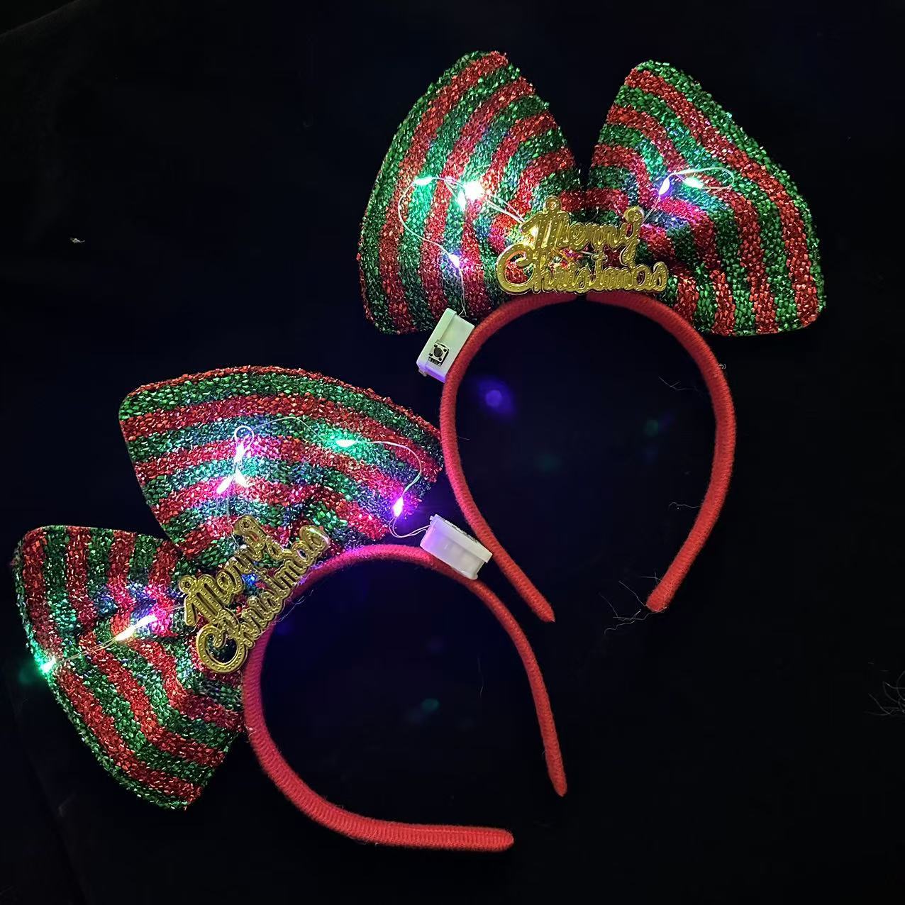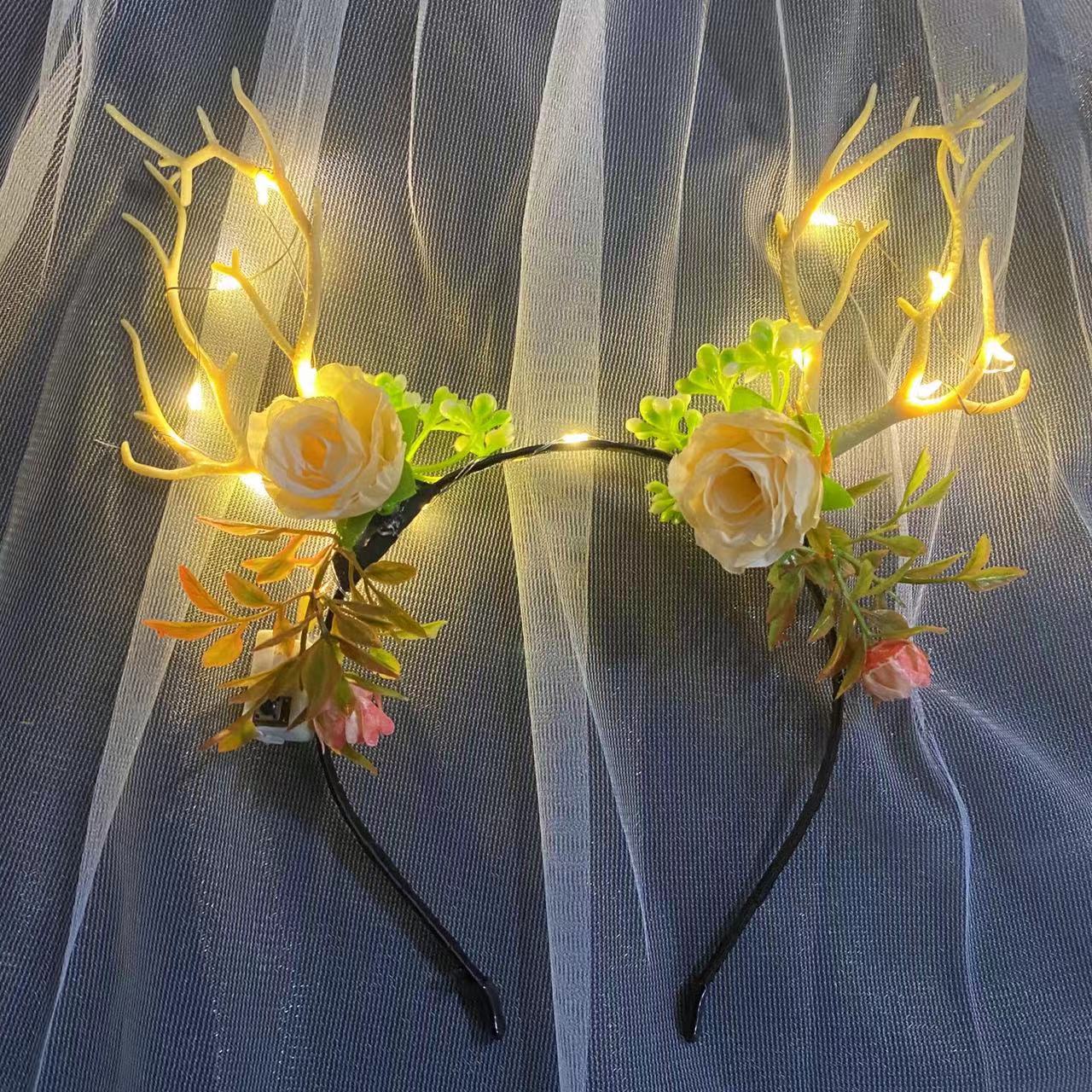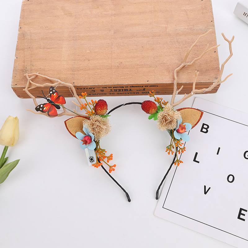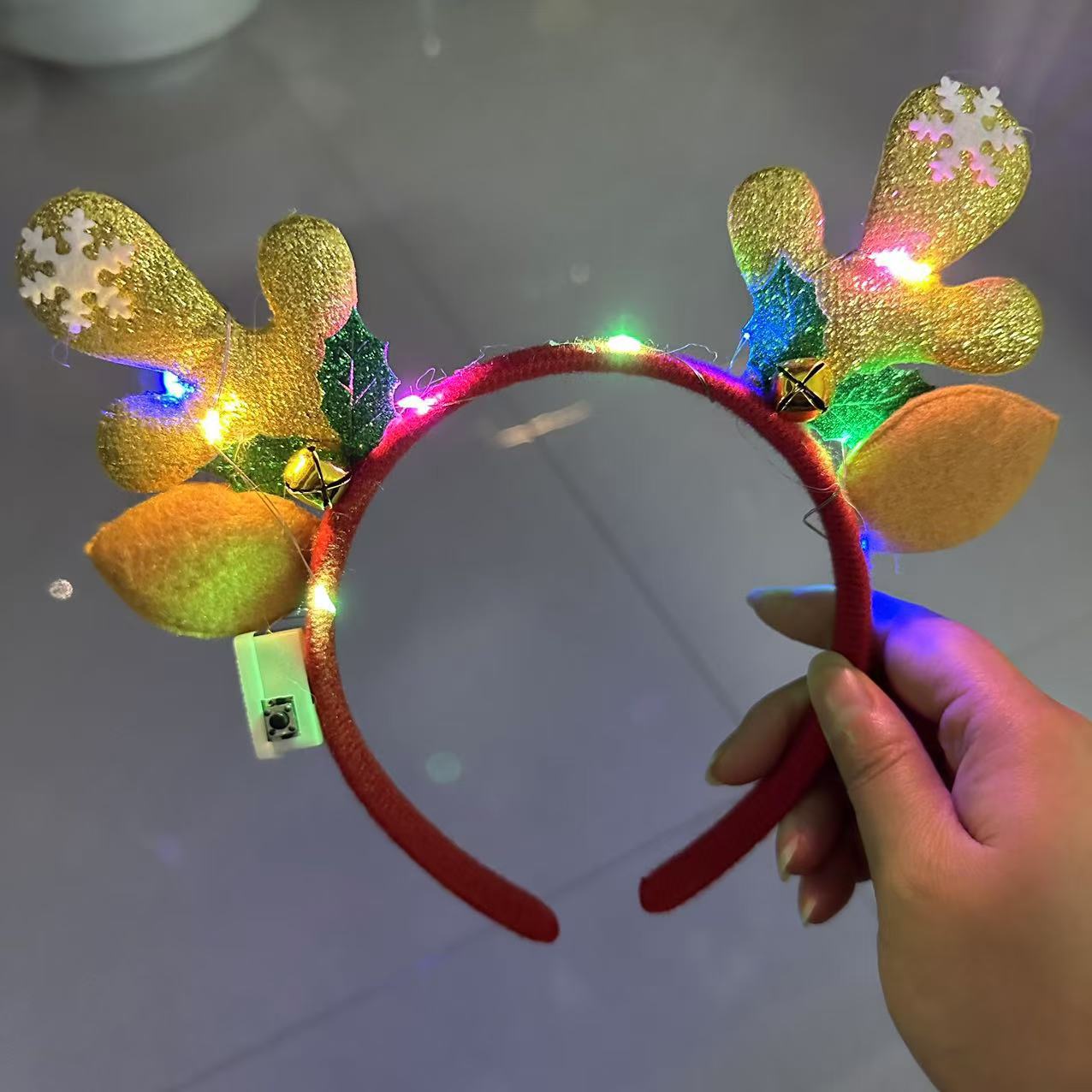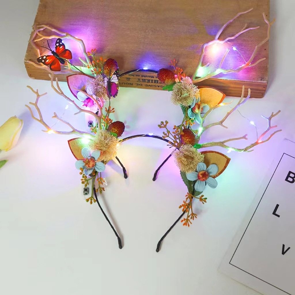 跨境批发新款森系头箍圣诞节蝴蝶大鹿角头饰夜市发光发箍地摊玩具