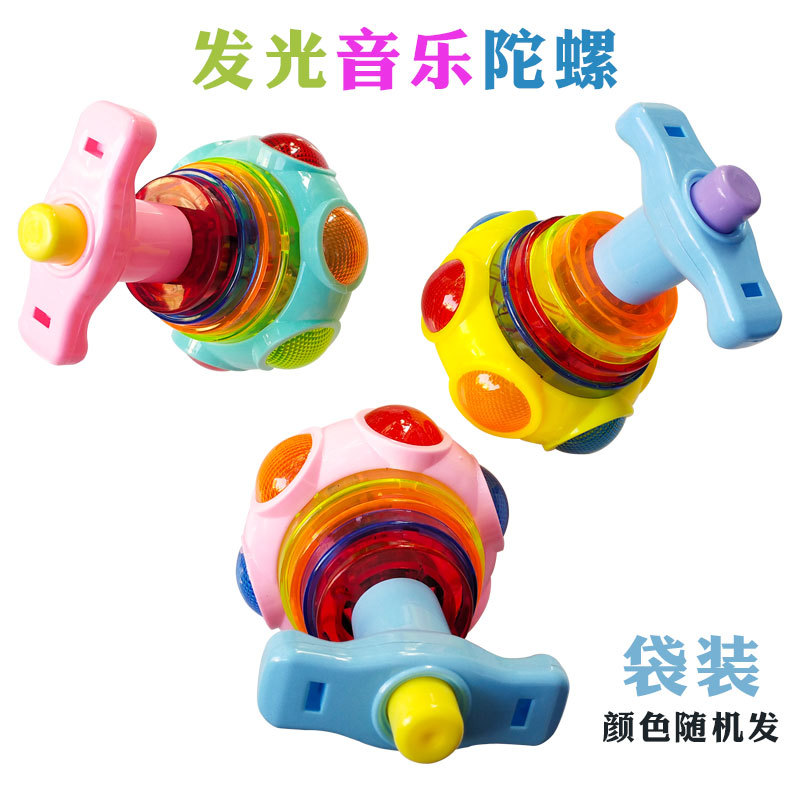 网红爆款音乐发光仿木陀螺地摊热卖抖音同款玩具七彩闪光弹射陀螺