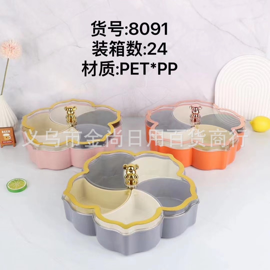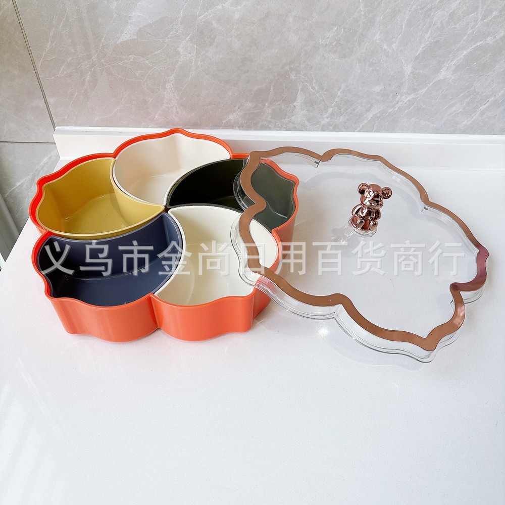 家用塑料果盒客厅瓜子果盒零食盒分层果盘分格带盖奶油简约糖果盒