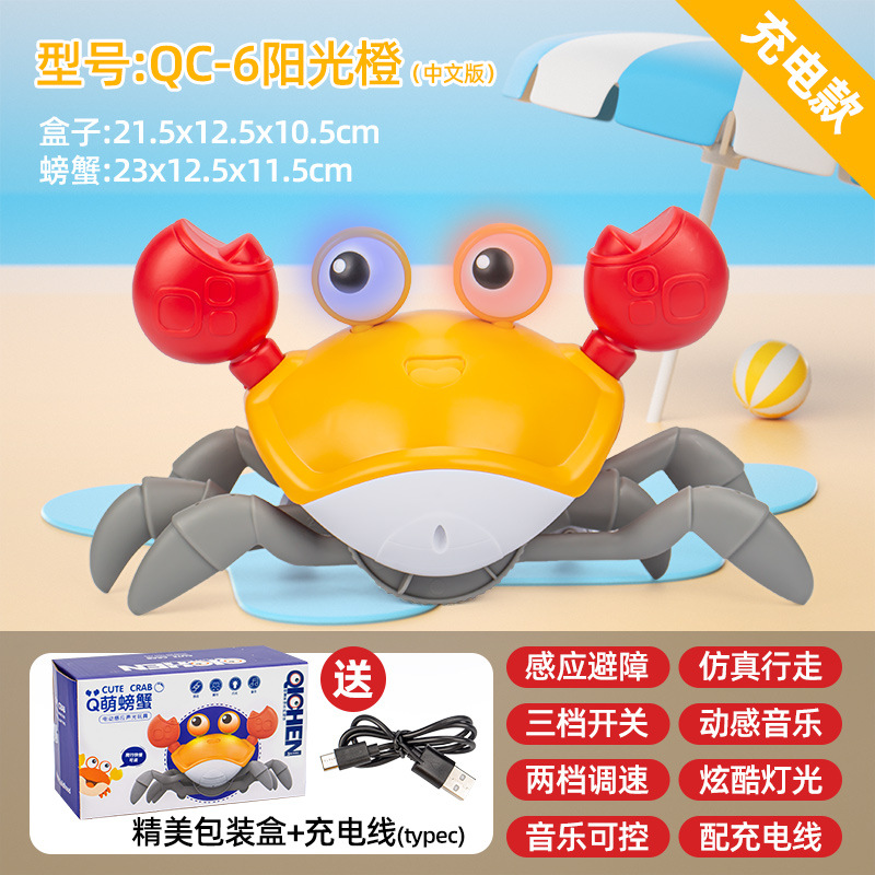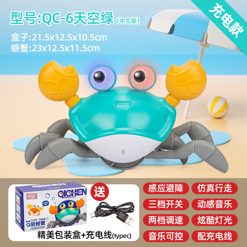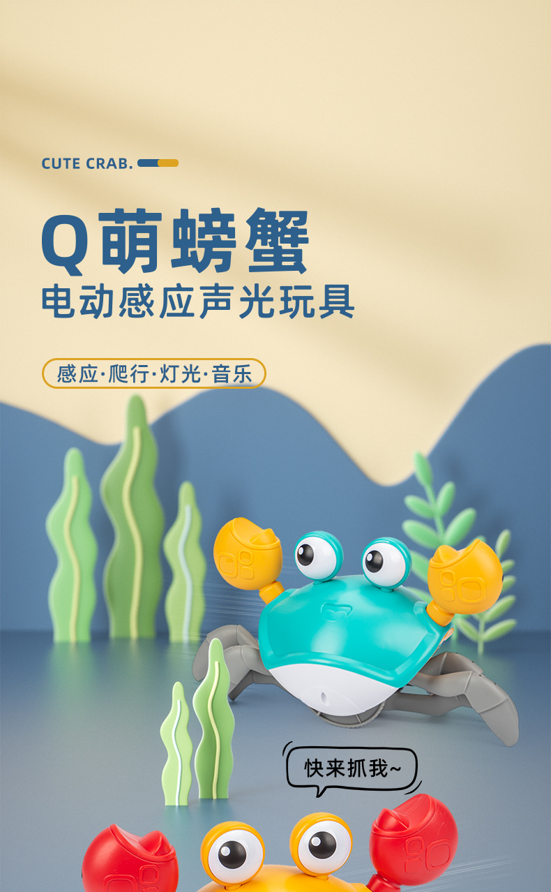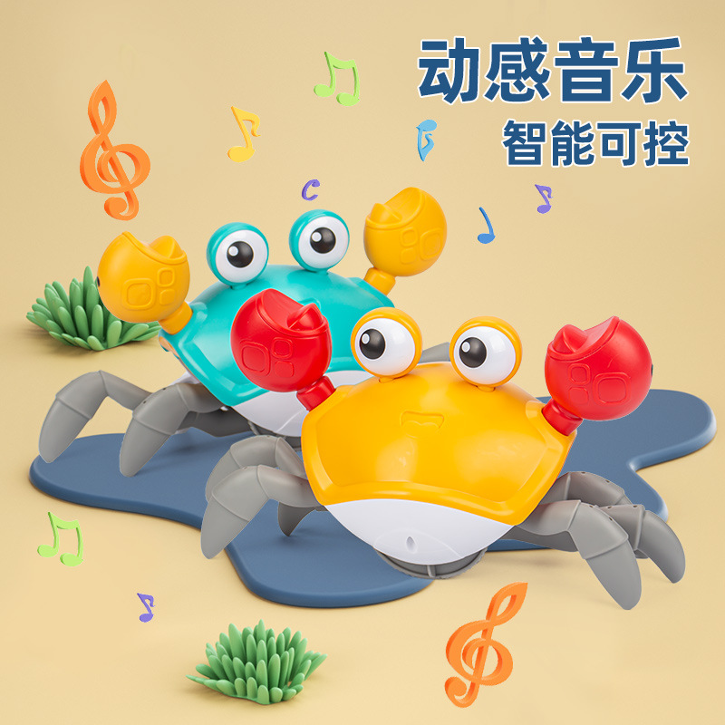 跨境儿童电动感应螃蟹玩具宝宝会爬走路躲避障碍爬行玩具地摊批发