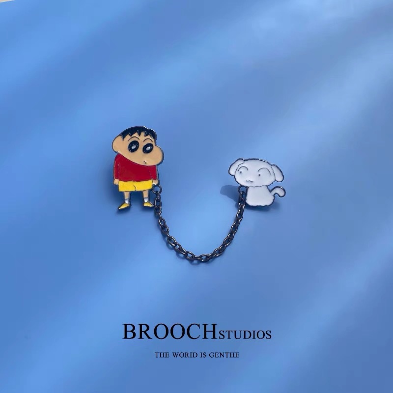 可爱日系蜡笔小新遛狗胸针动漫卡通鲨鱼恐龙徽章男女包包衣服配饰