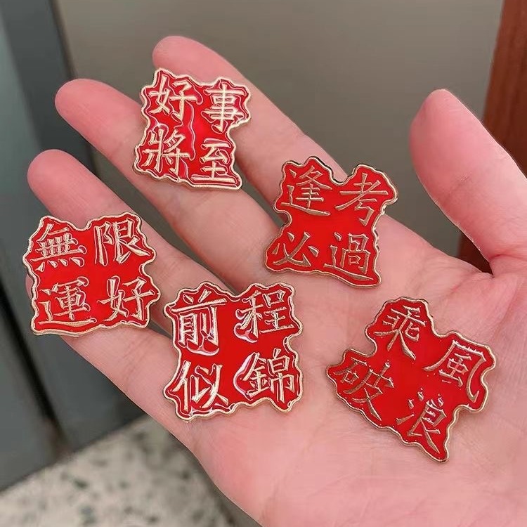 中考高考学生励志祝福语逢考必过金榜题名胸针中国风徽章别针批发