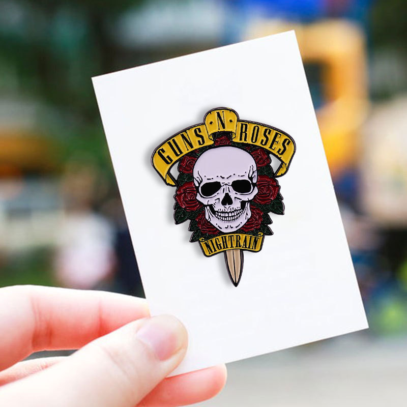 枪炮与玫瑰乐队Nightrain胸针头骨徽章摇滚乐队标志