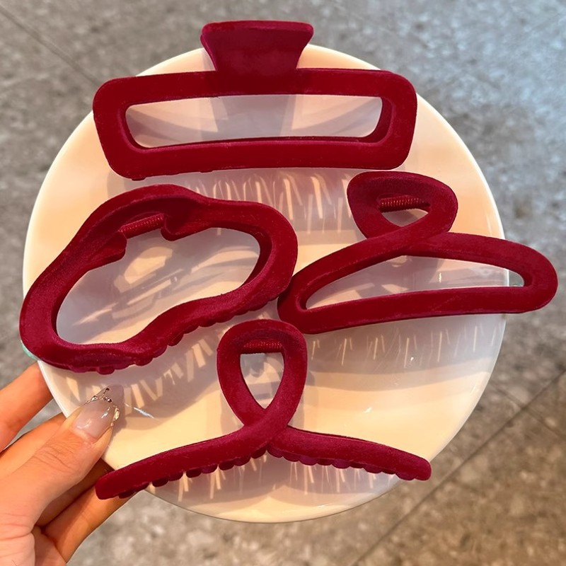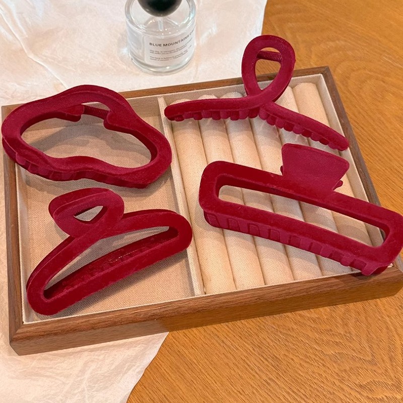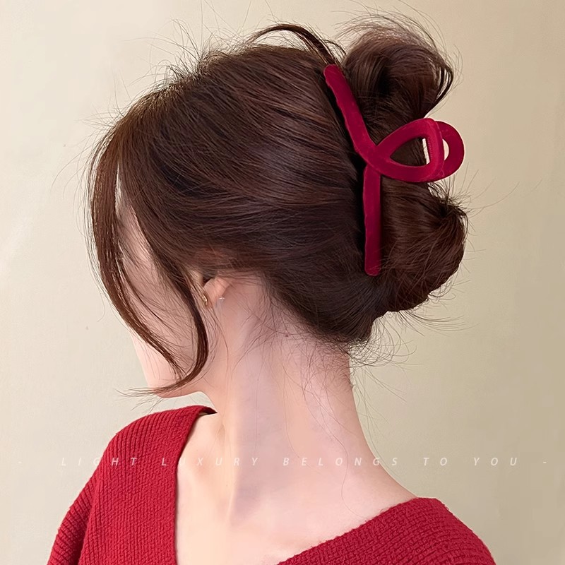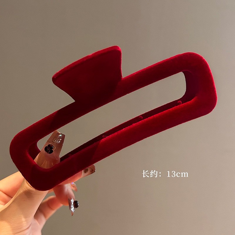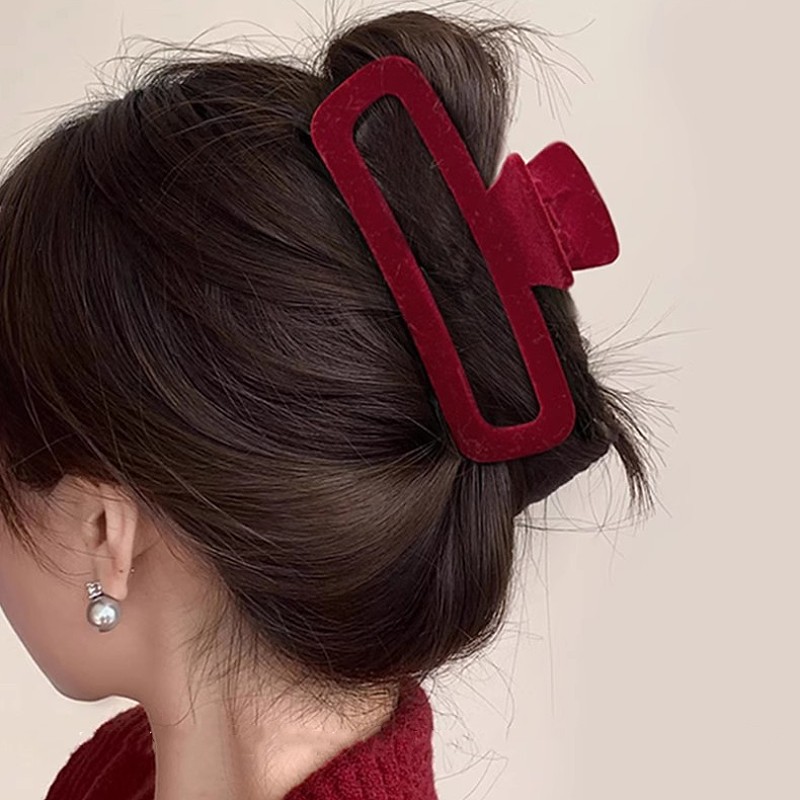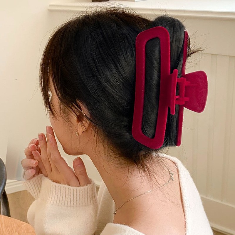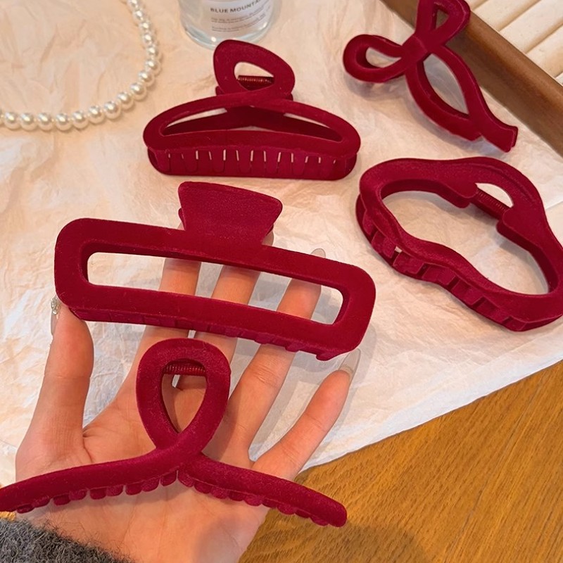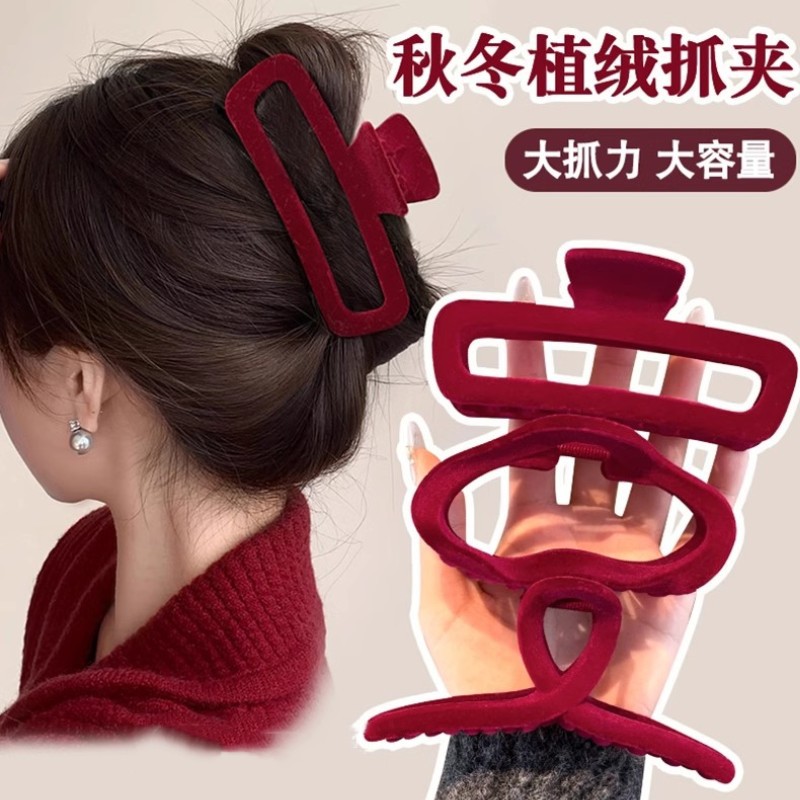 红色植绒抓夹秋冬新款抓夹大号鲨鱼夹简约轻奢风高级感后脑勺夹子