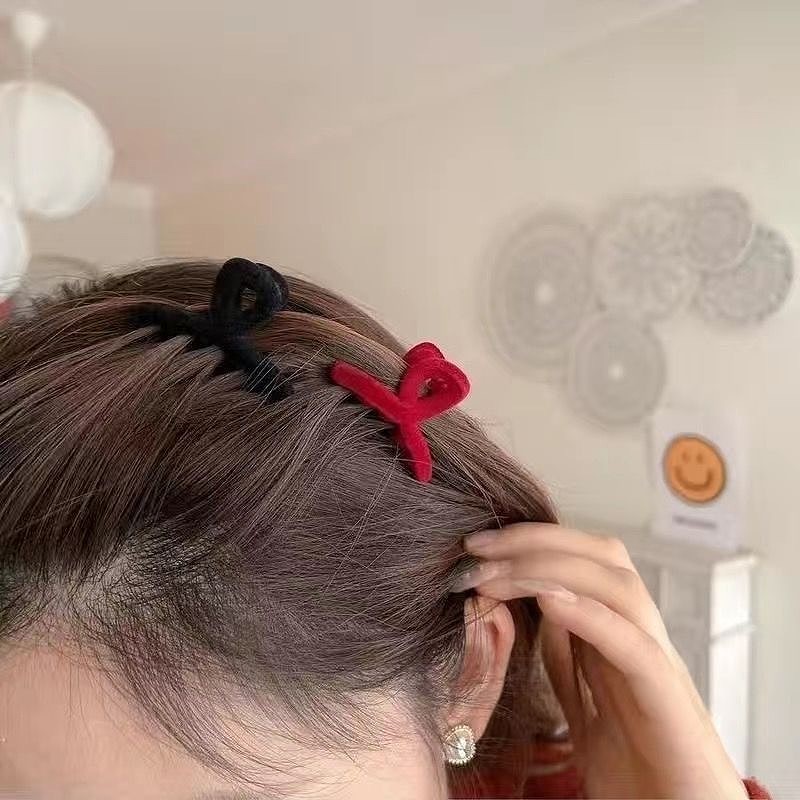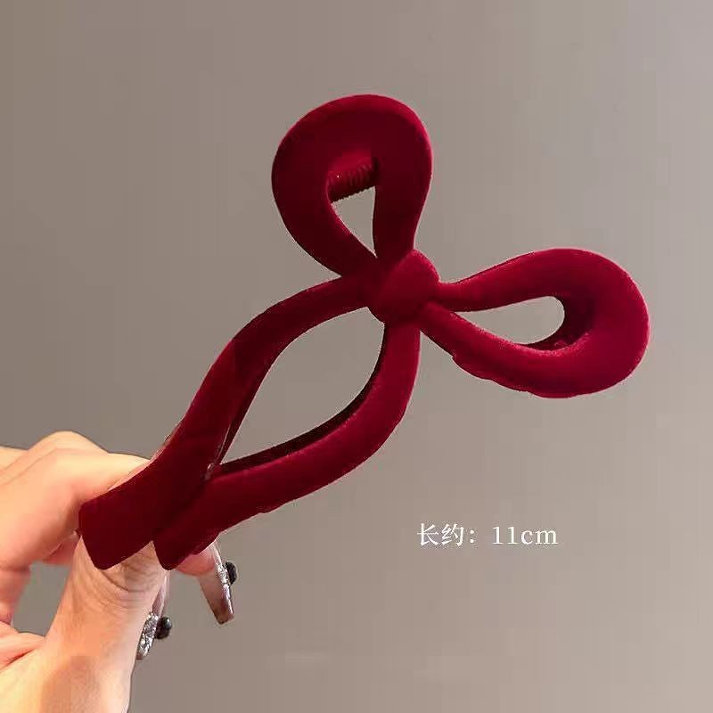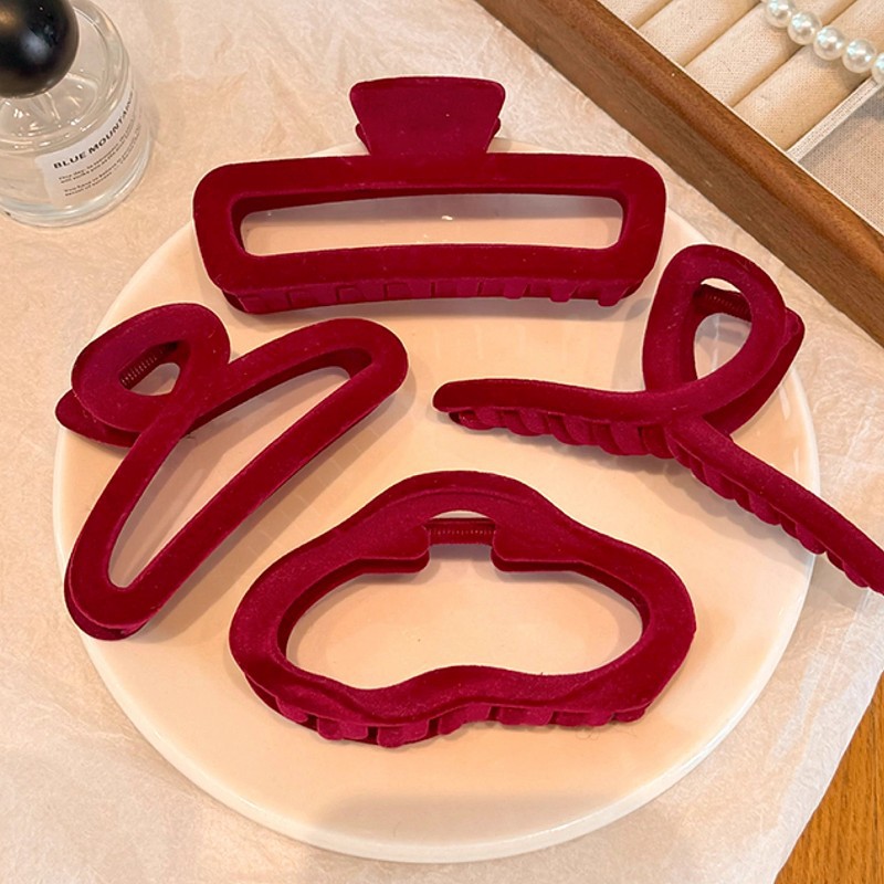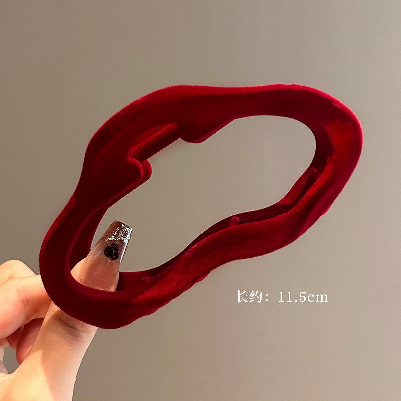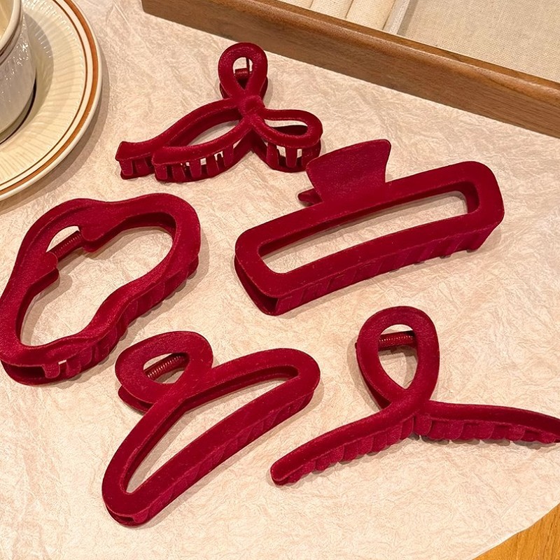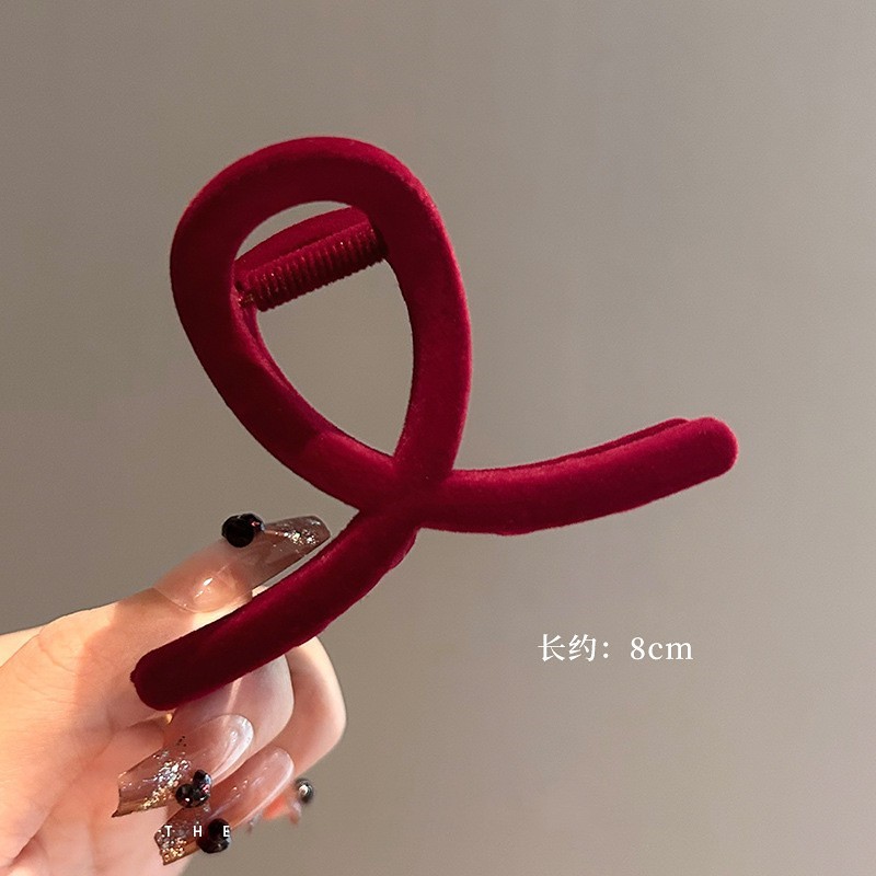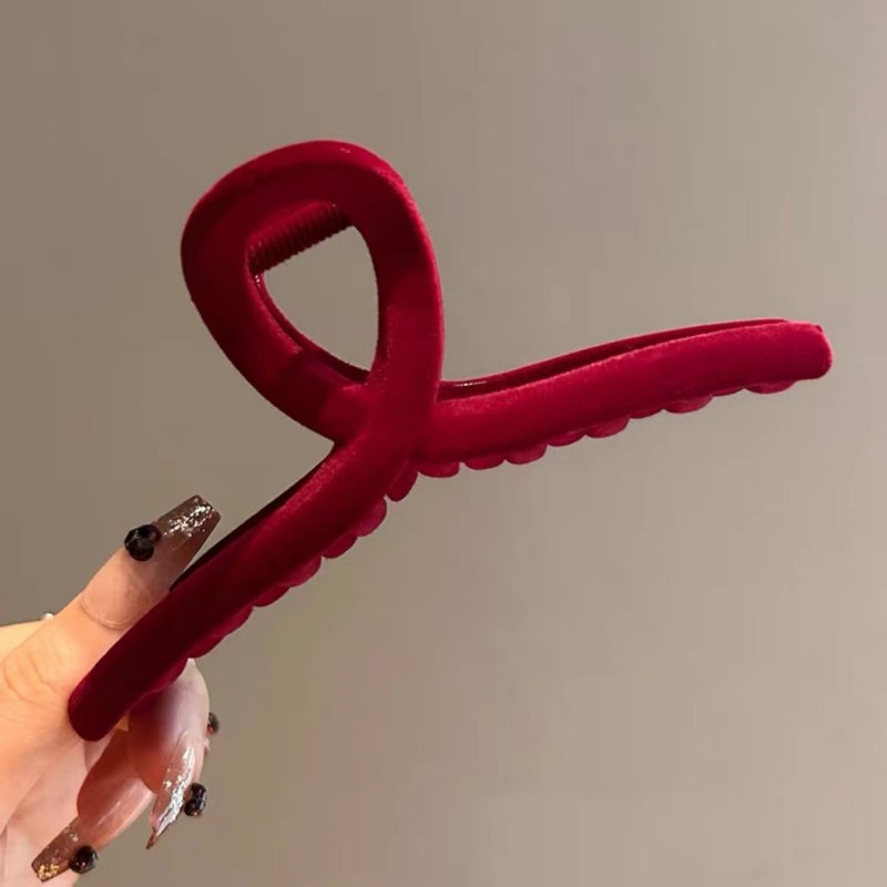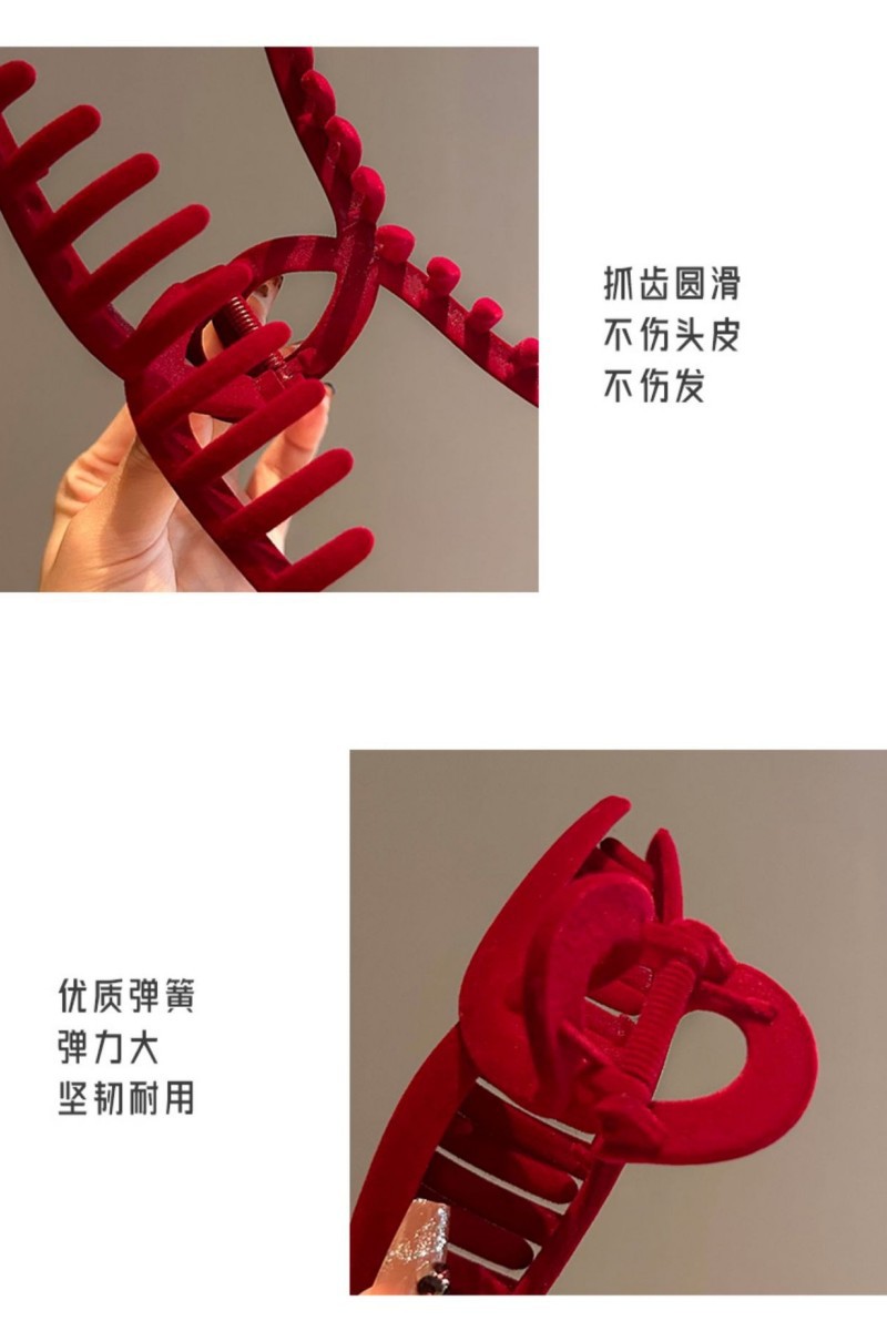 红色植绒抓夹秋冬新款抓夹大号鲨鱼夹简约轻奢风高级感后脑勺夹子