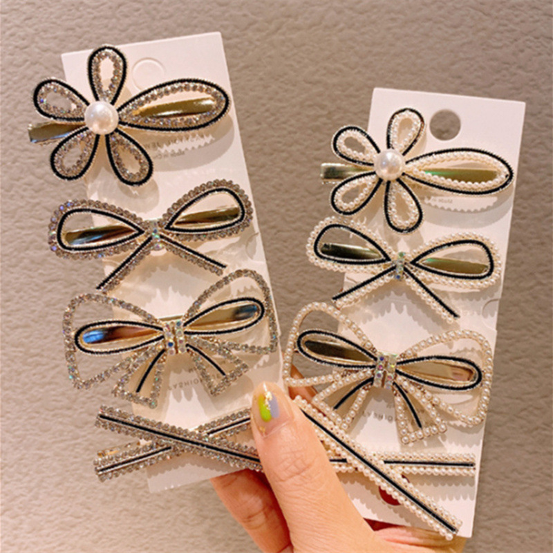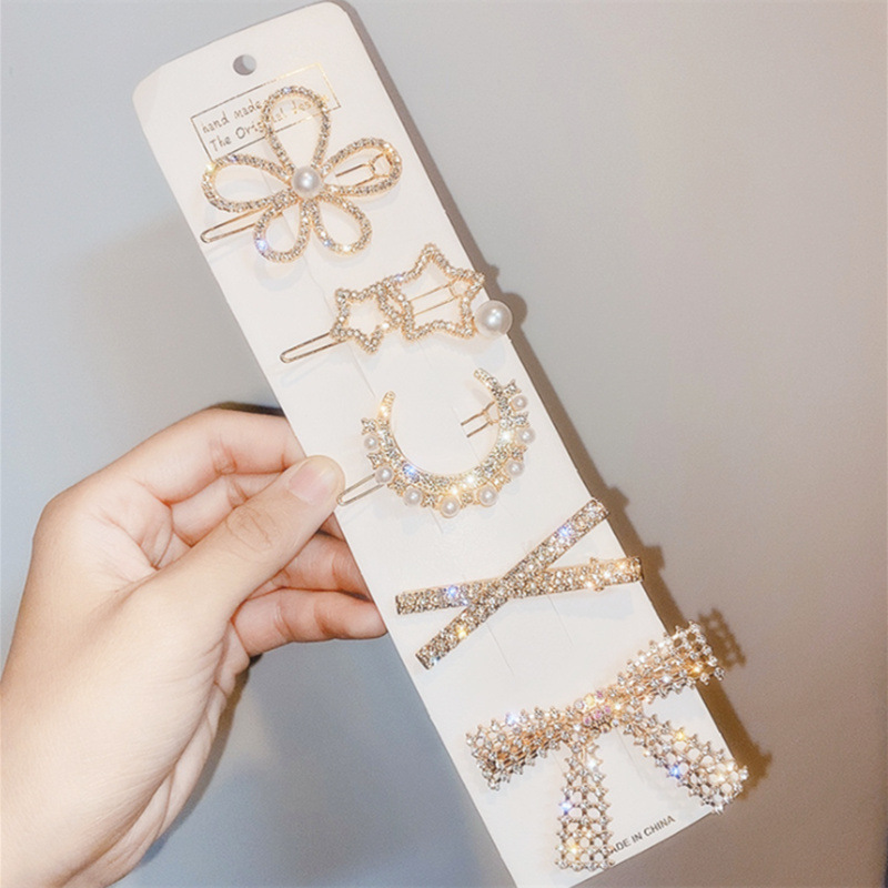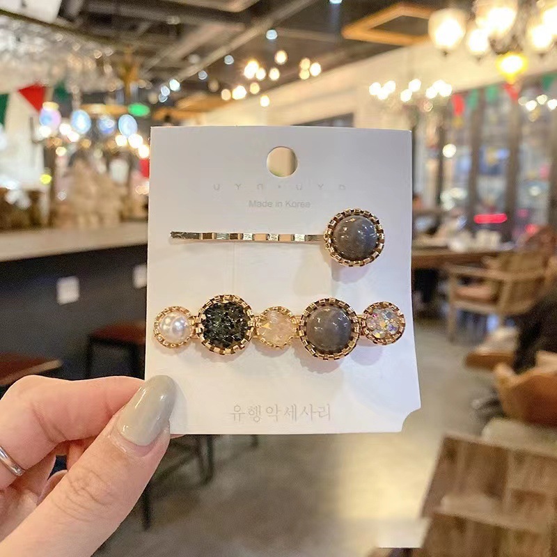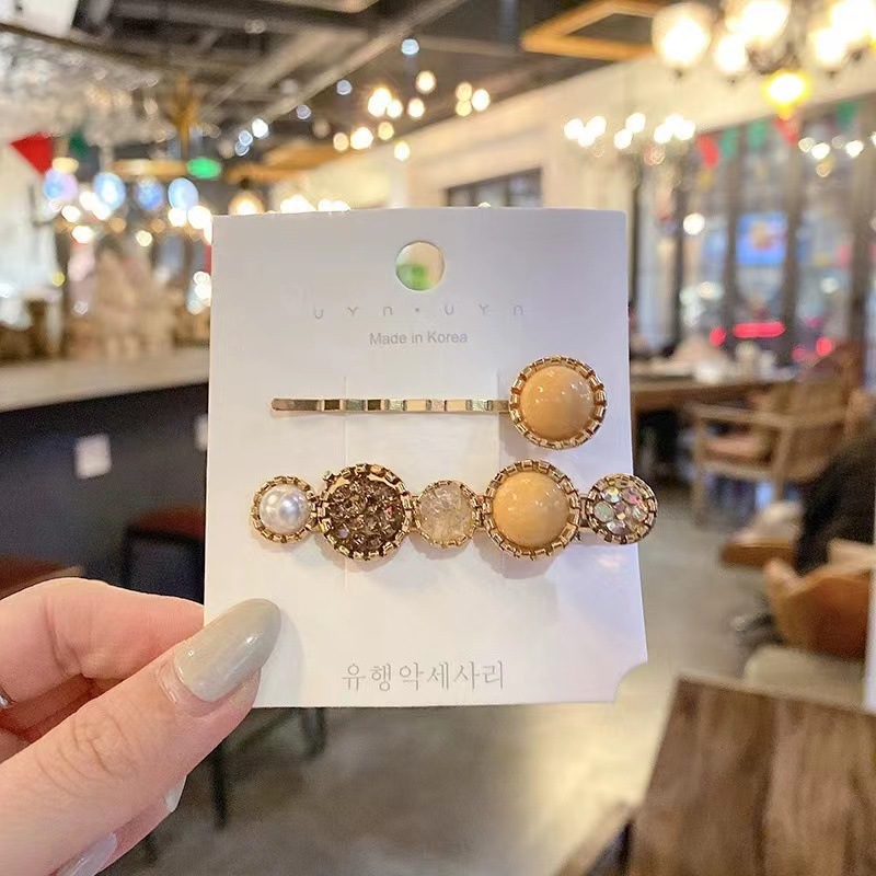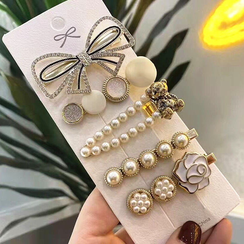 2021刺绣后脑勺边夹几何型女式发夹简约珍珠发卡边夹鸭嘴夹套装