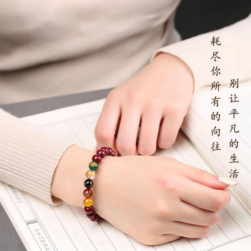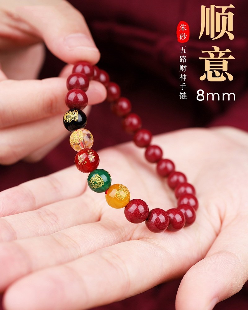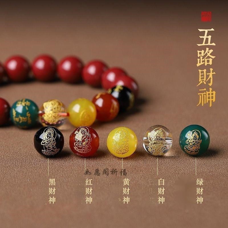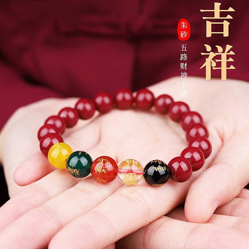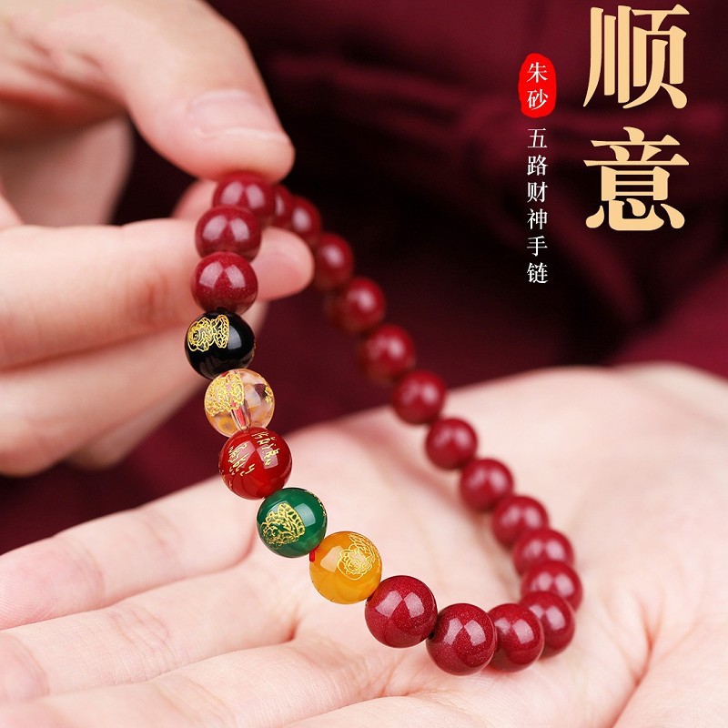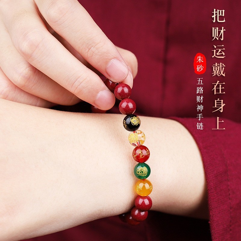五路财神手链仿朱砂男女款本命年金木水火土五色玛瑙手链直播批发