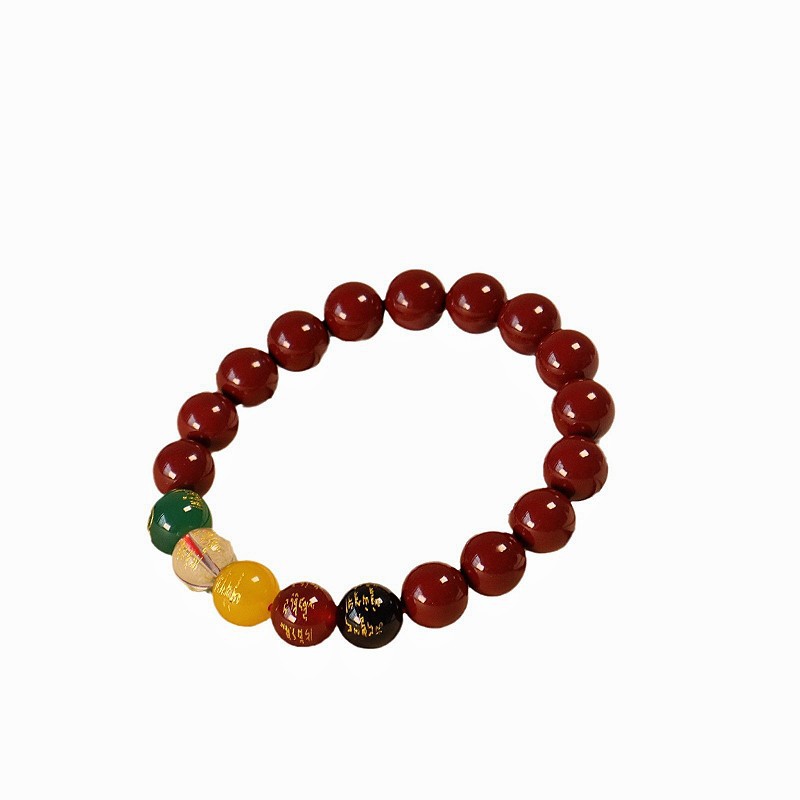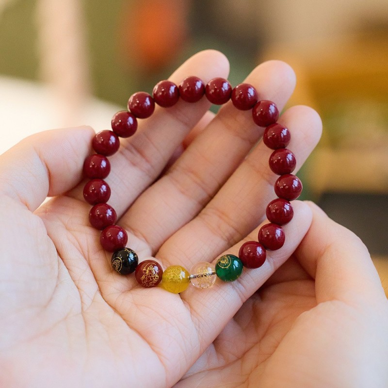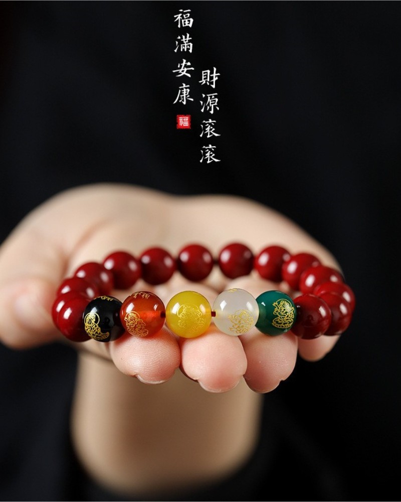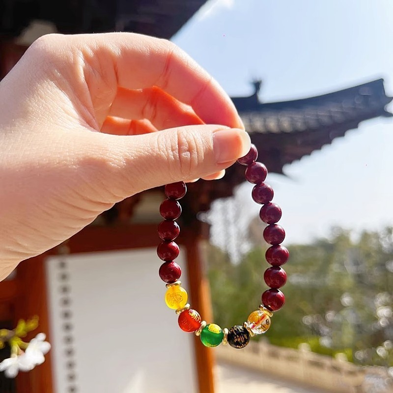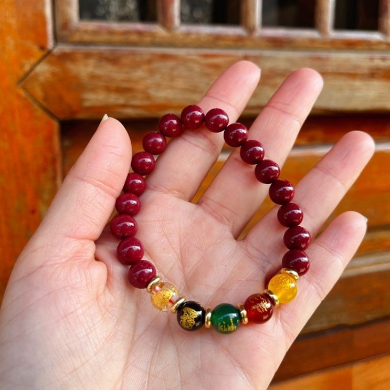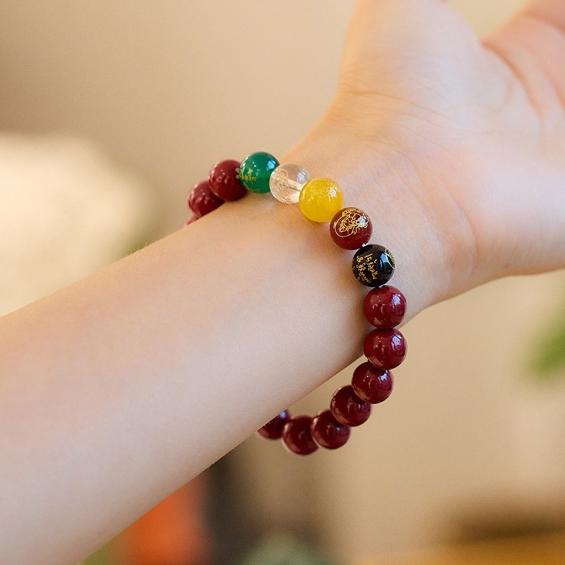 五路财神手链仿朱砂男女款本命年金木水火土五色玛瑙手链直播批发