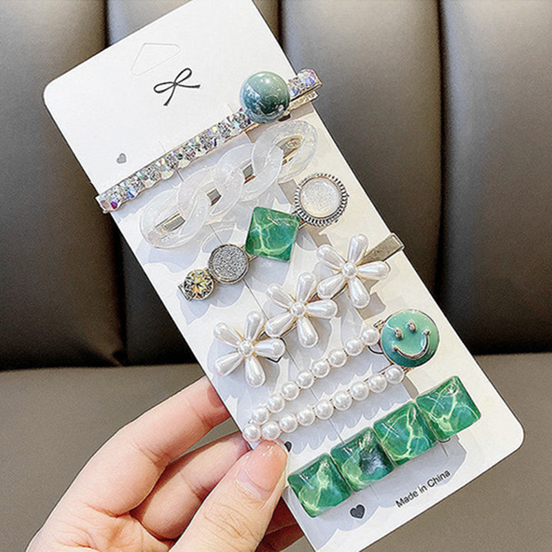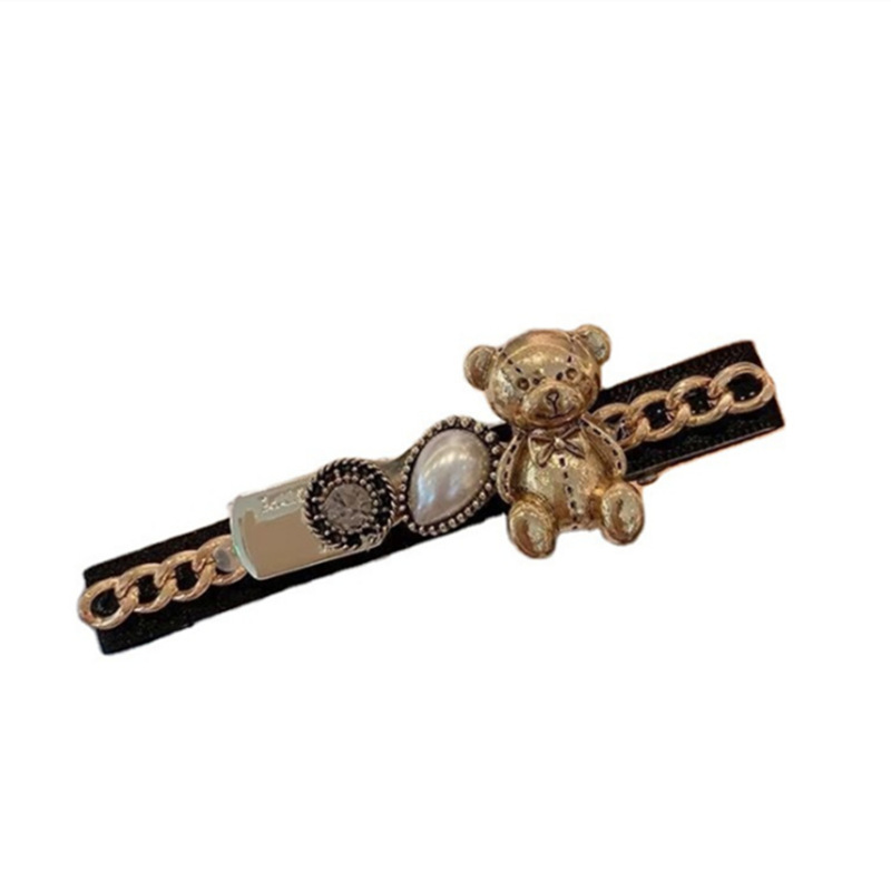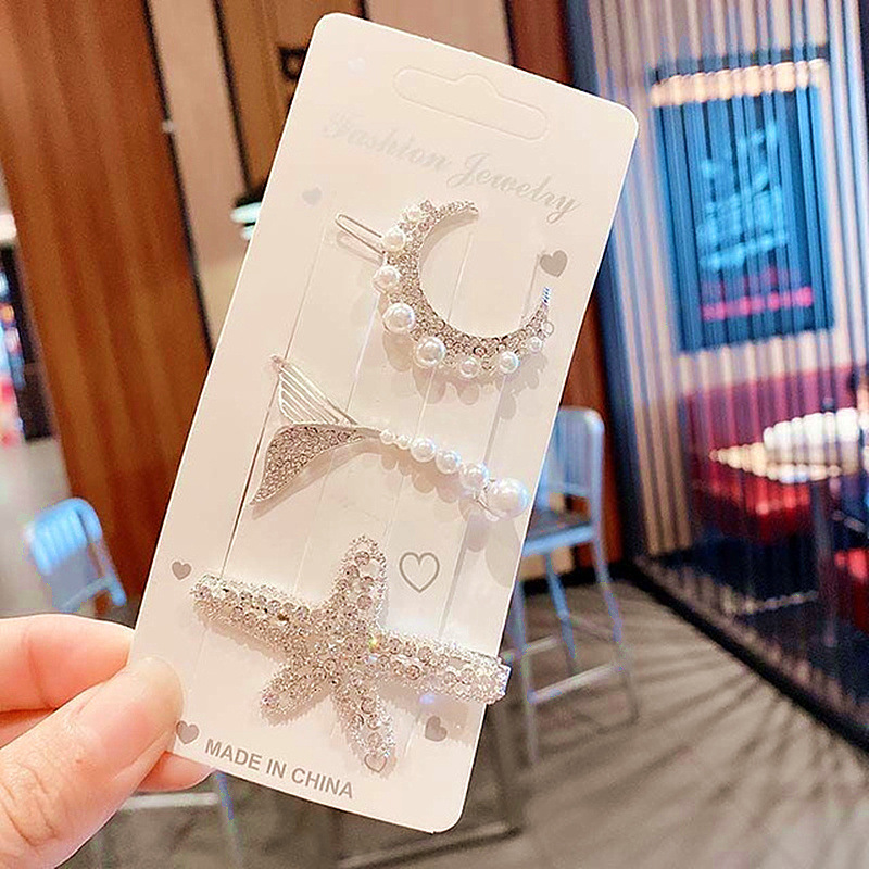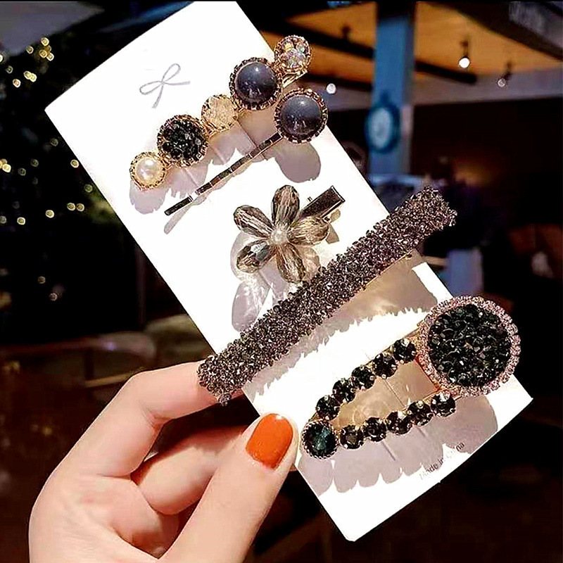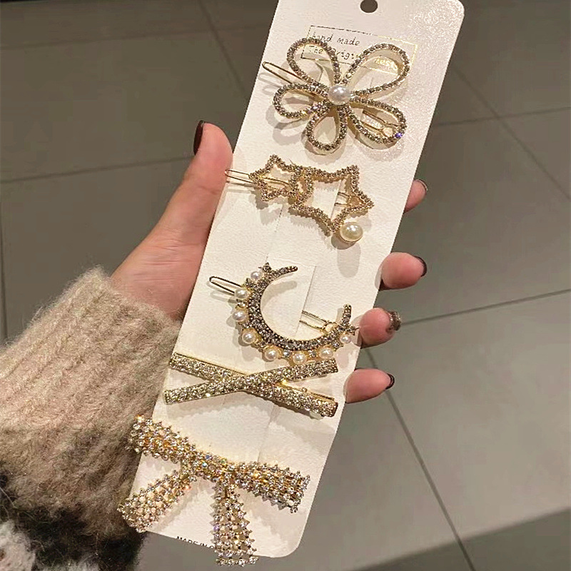 小香风飘带鸭嘴夹小花朵水钻女式几何型羽毛金色独立套装发夹夹子
